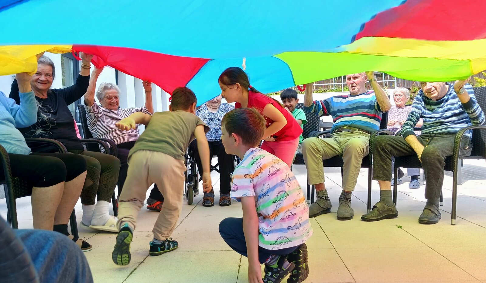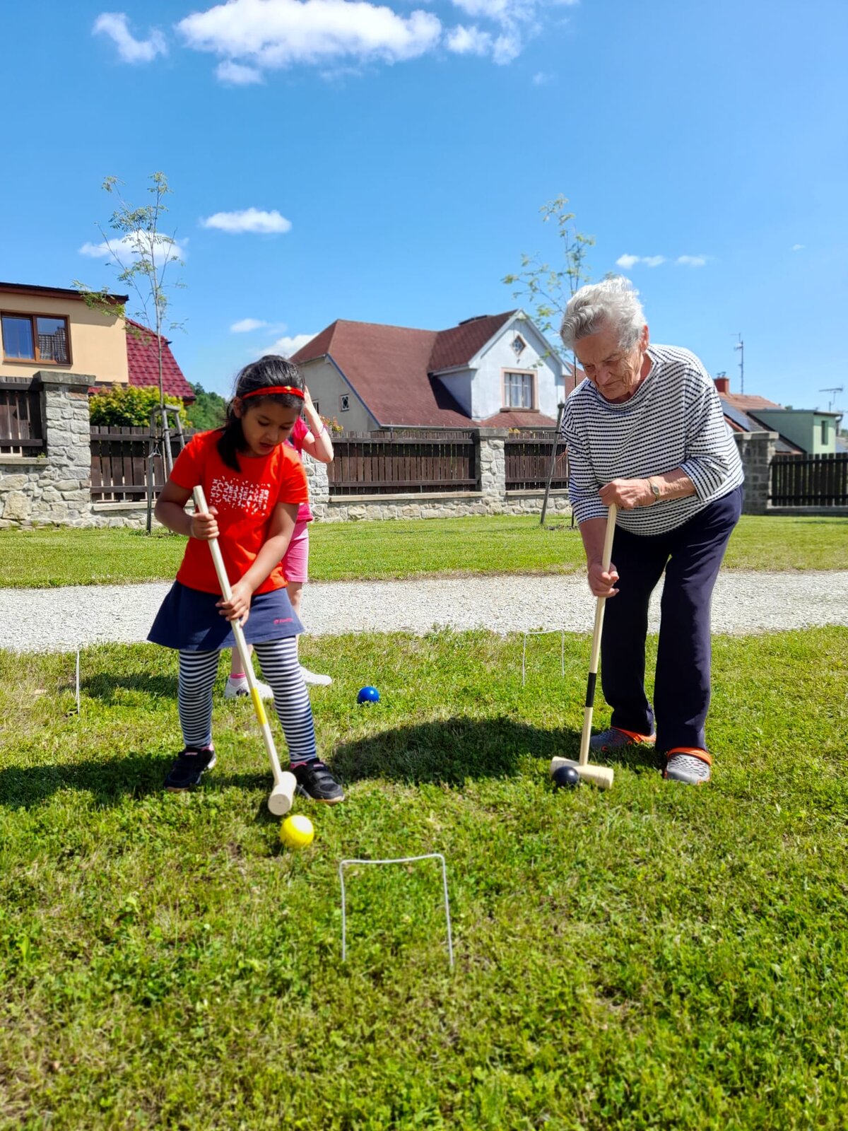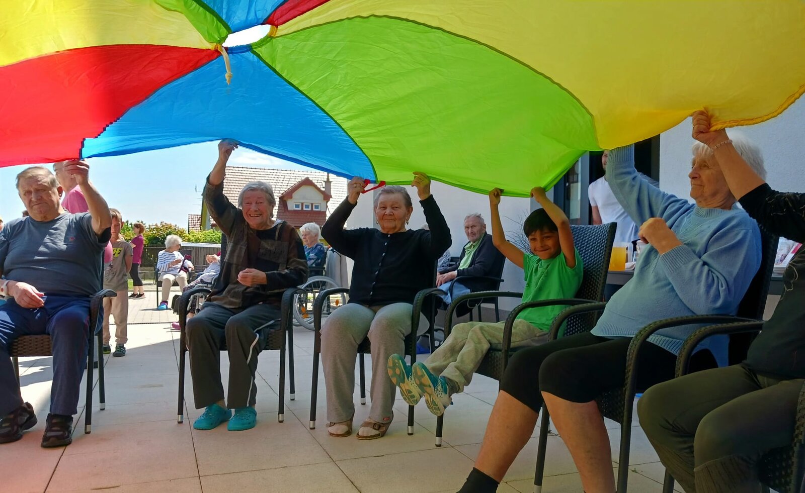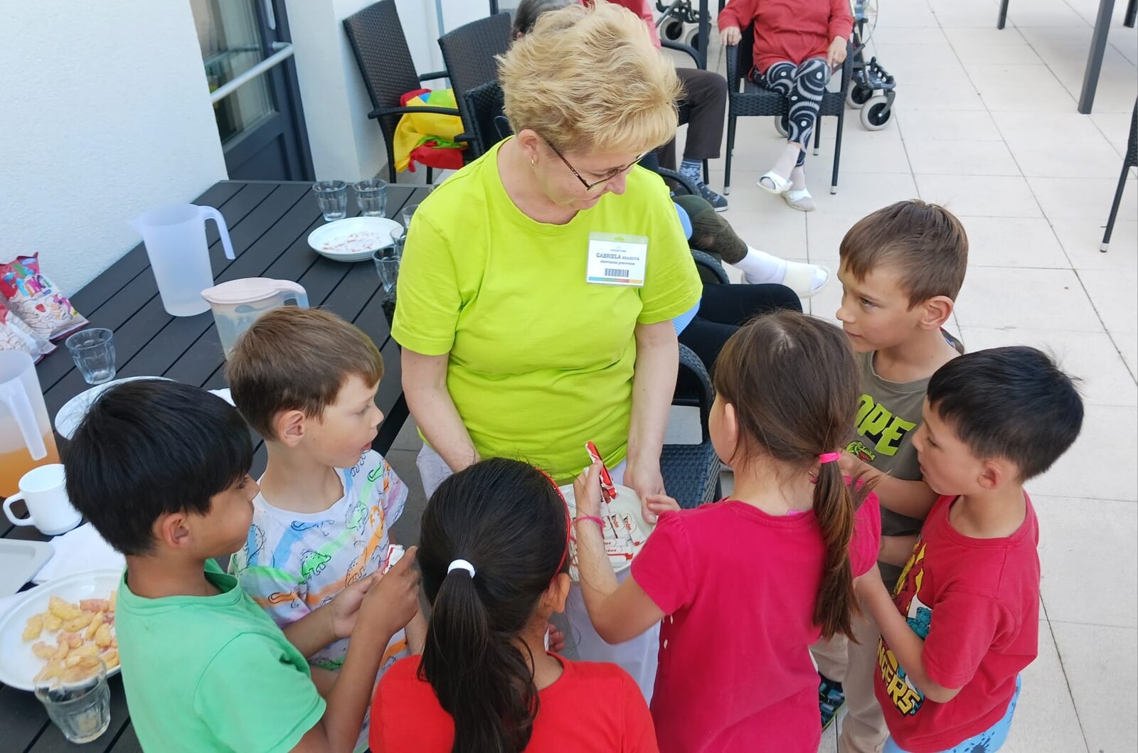 👫 Na zahradě jsme si zahráli jednoduché pohybové hry, povídali si a nechyběla ani výtvarná aktivita, do které se s nadšením zapojili malí i velcí.