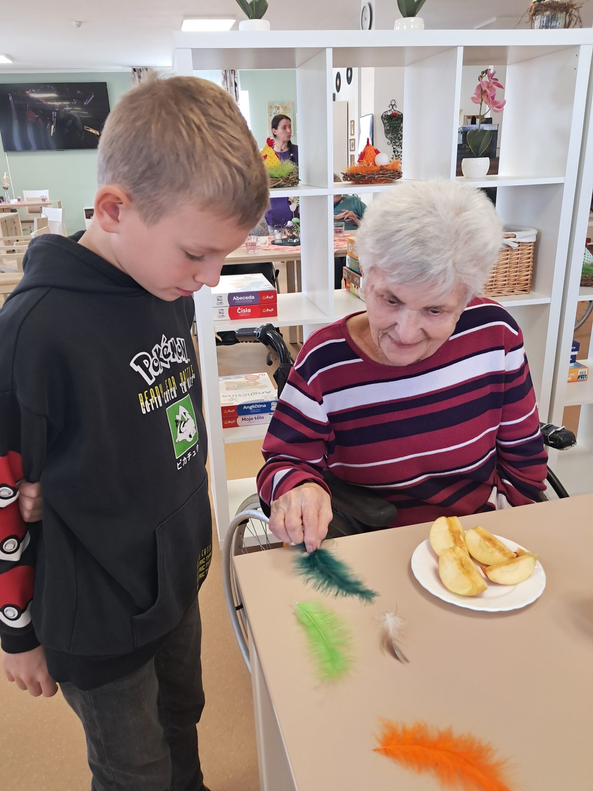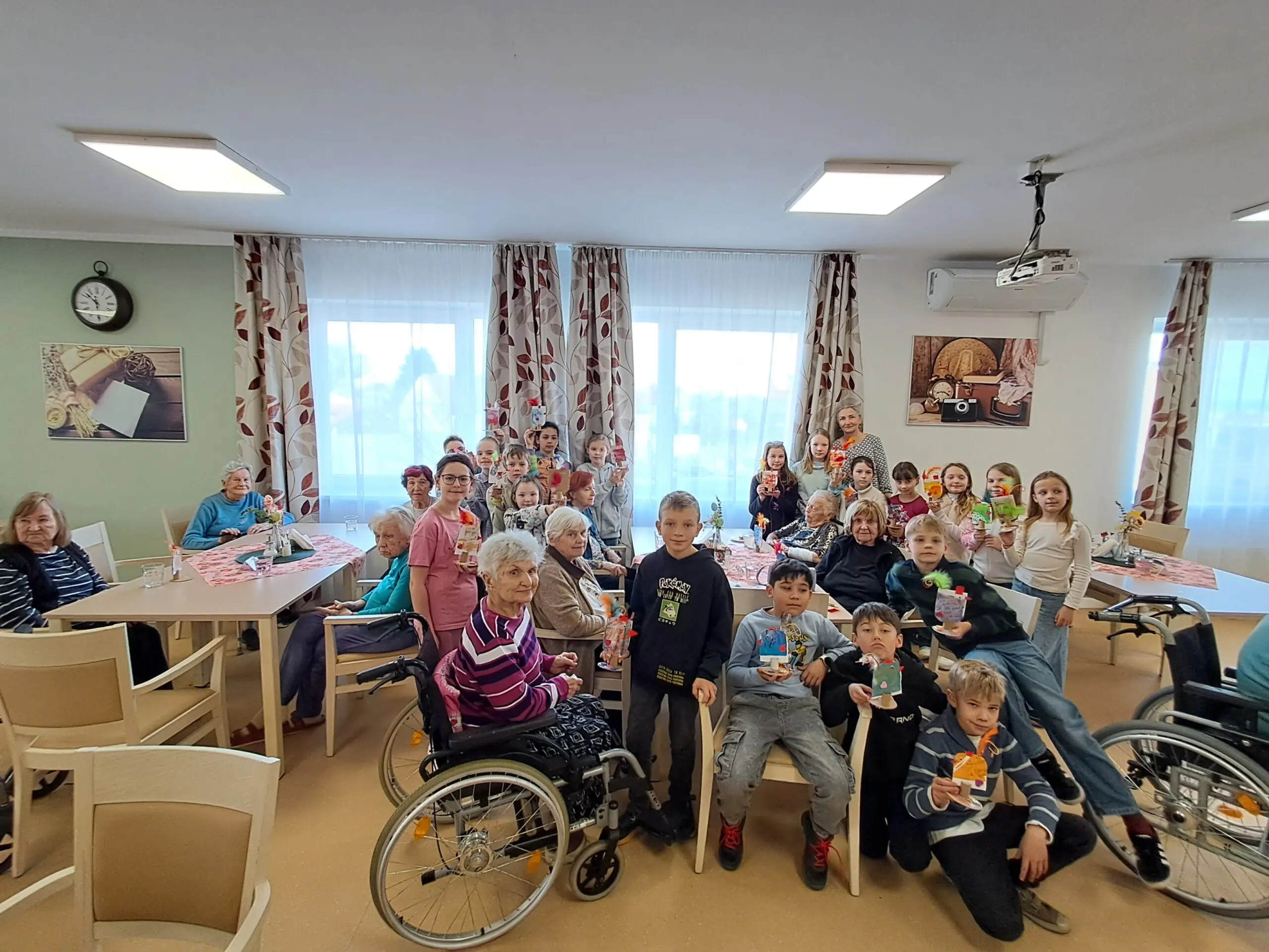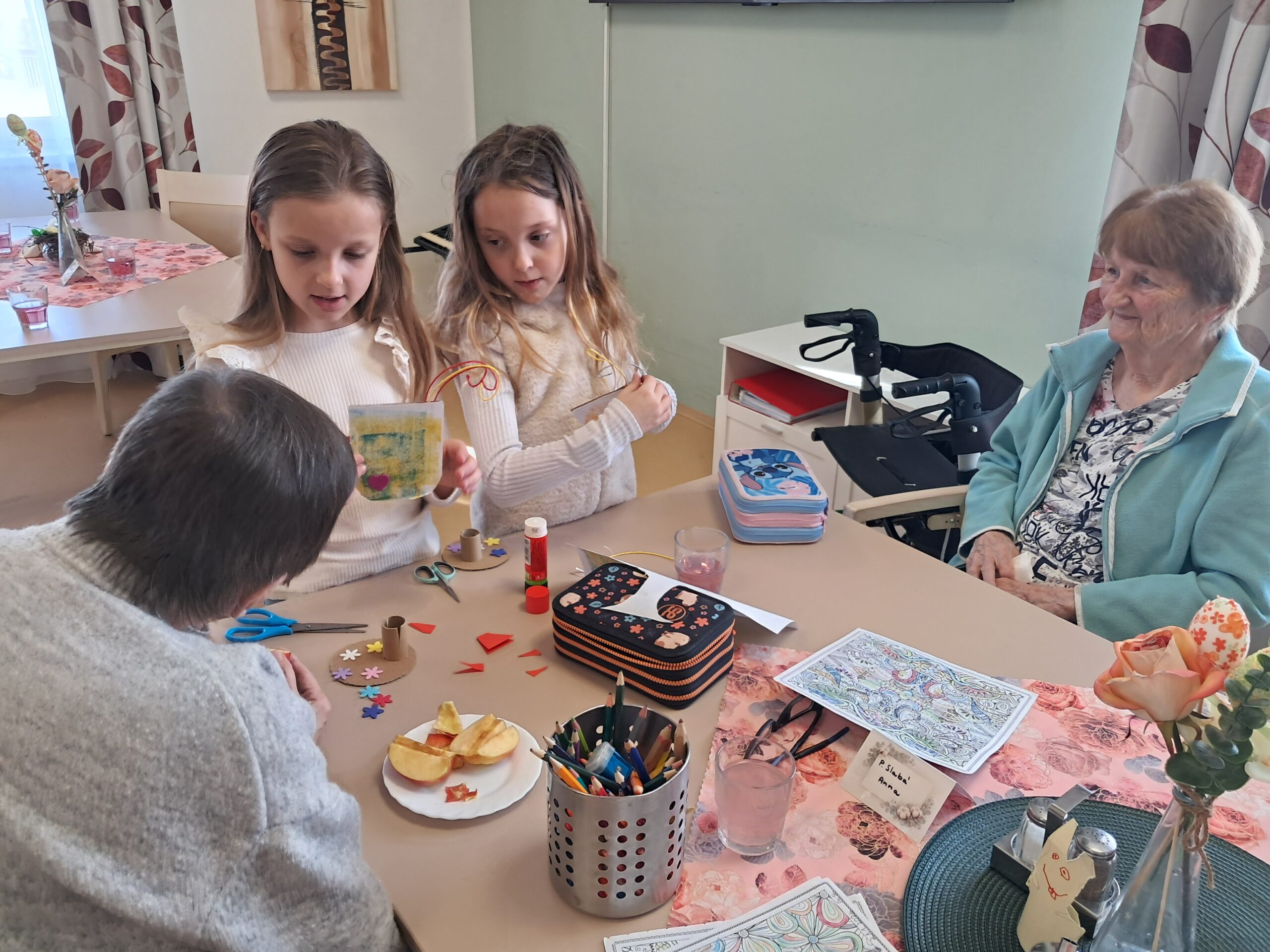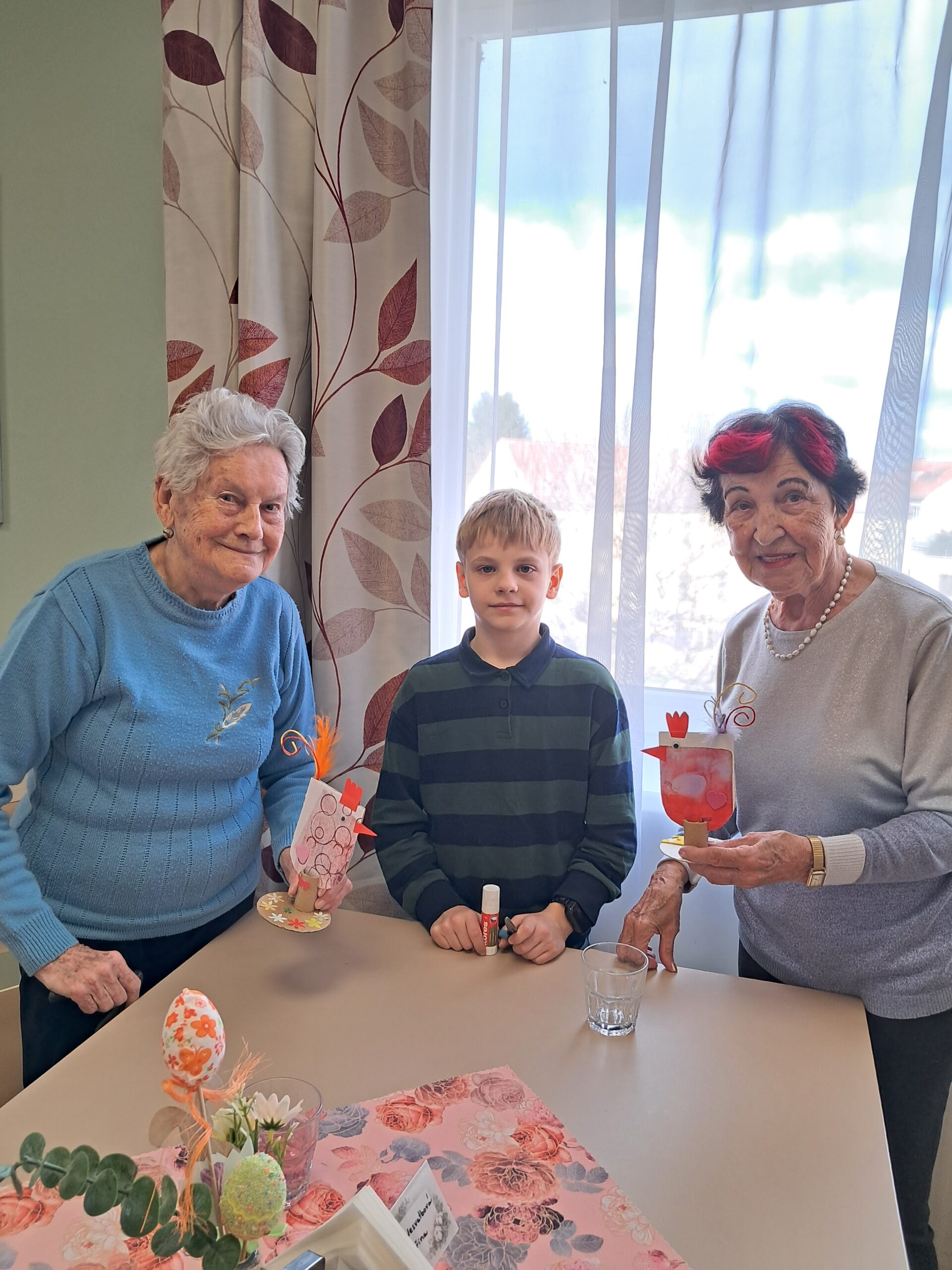 V našem domově jsme zažili krásné mezigenerační odpoledne, kdy nás navštívily děti ze Základní školy Bednářova. Společně jsme tvořili veselé velikonoční dekorace – roztomilé slepičky, které nyní zdobí naše prostory a připomínají všem příchod jara.