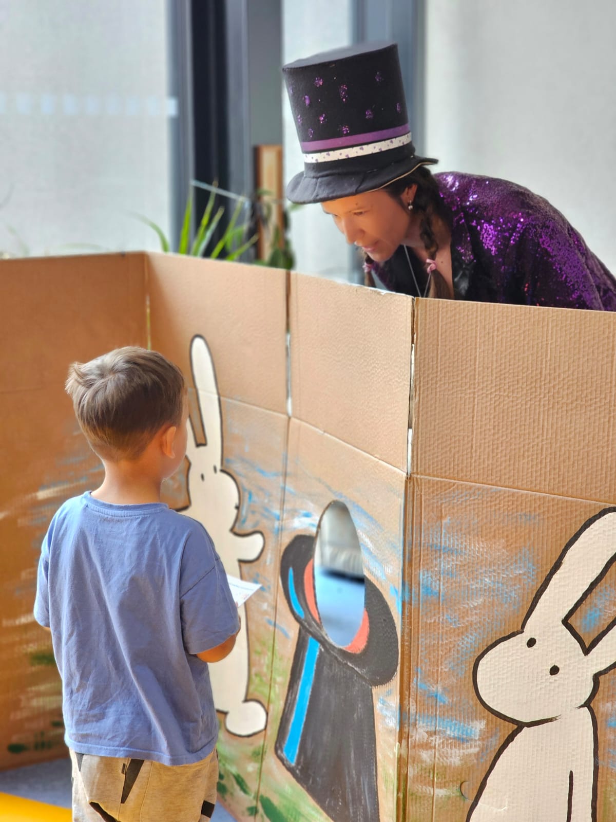 Děti měly své soutěžní kartičky, na které sbíraly razítka od našich klientů, a na závěr jim kouzelník Pokustón vyčaroval odměny z klobouku.