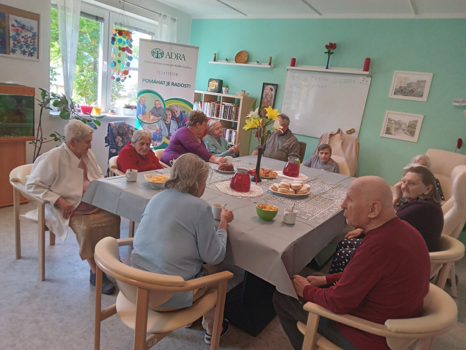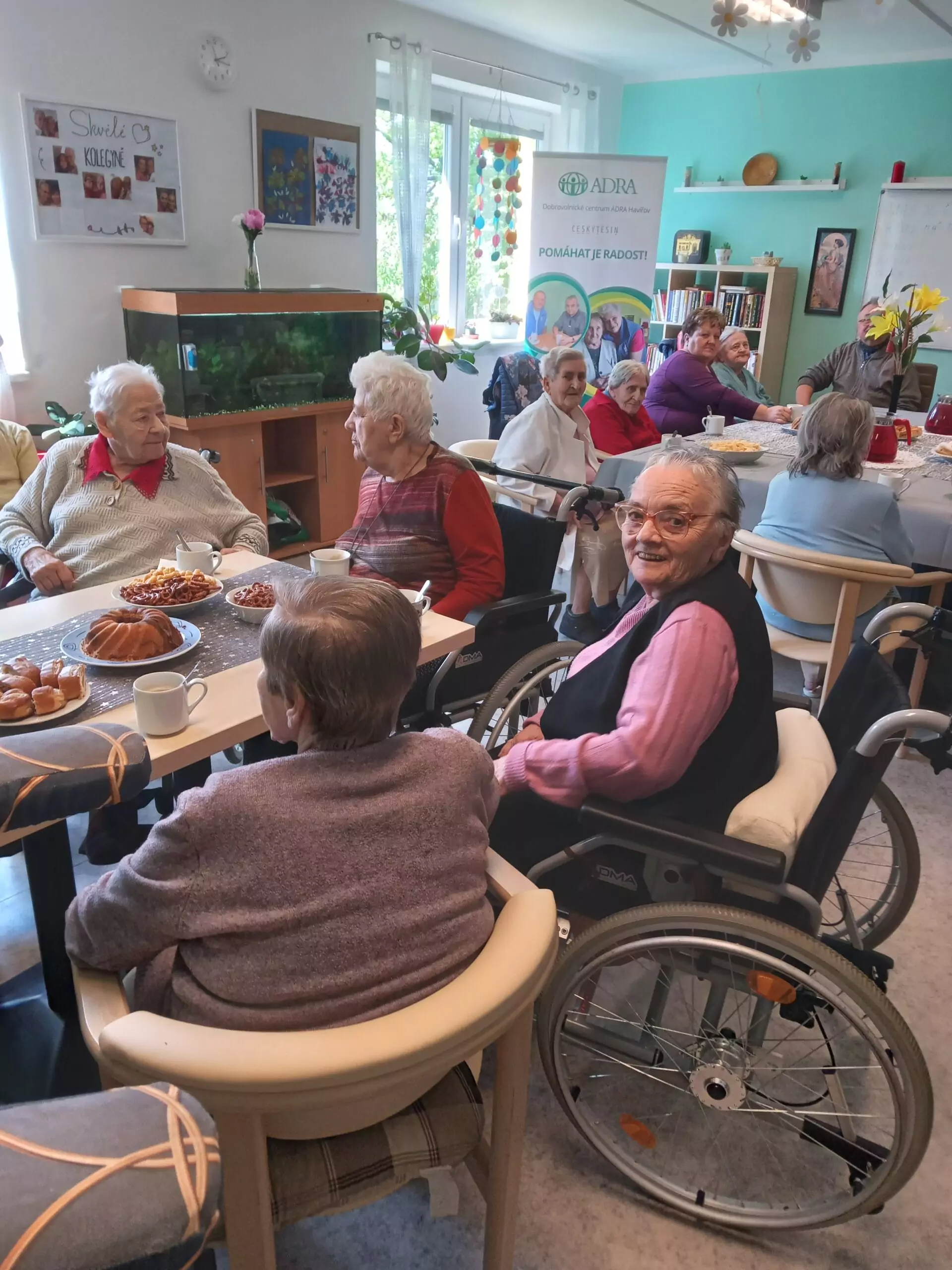 Včera naše klienty Senevida Český Těšín navštívili dobrovolníci z ADRY, kteří u nás strávili Den dobrovolnictví. S klienty si nejen povídali, ale také zpívali, vypili si dobrou kávu či cappuccino a k tomu si vychutnali občerstvení, které jsme jim připravili.