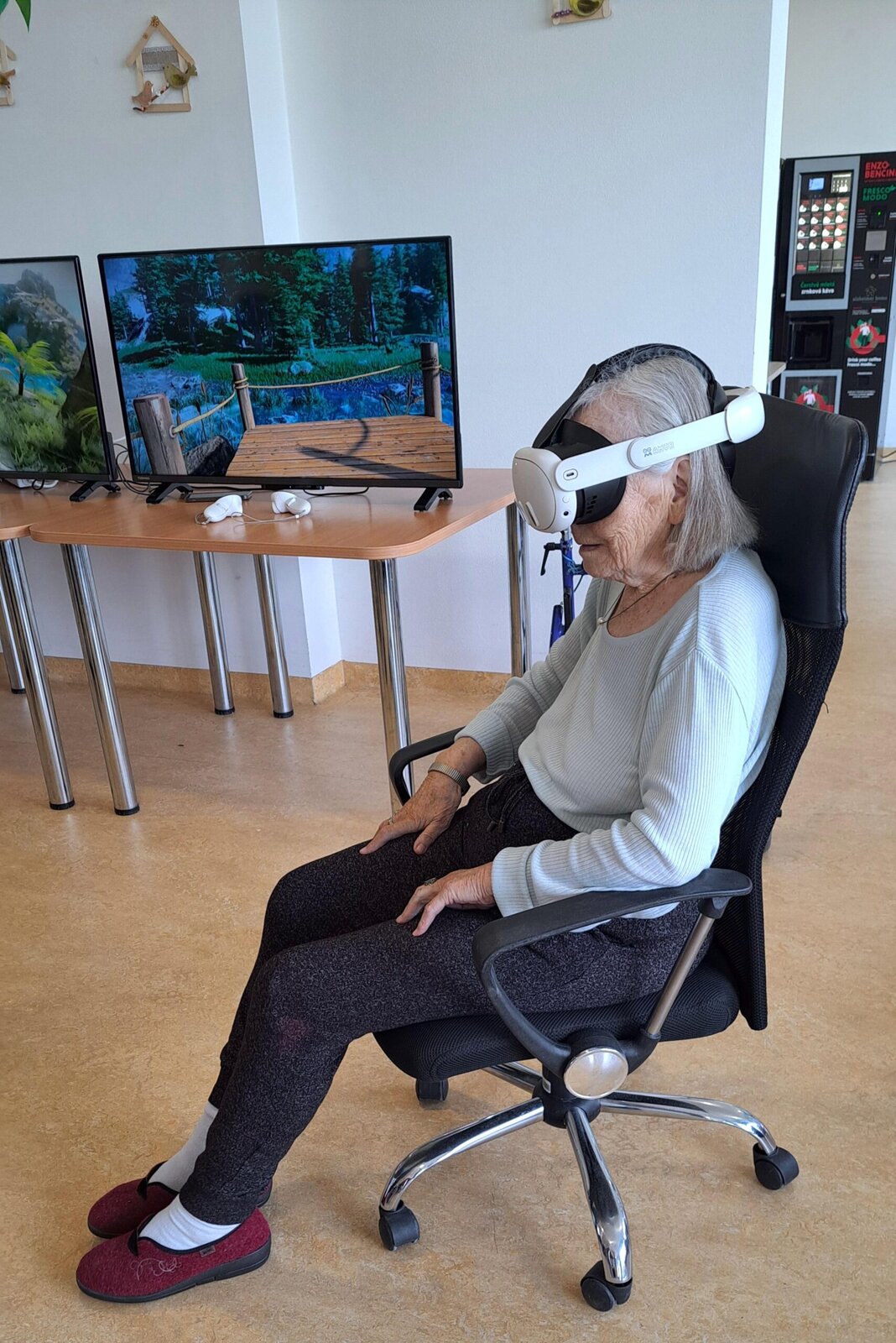 Během ní mohli naši klienti obdivovat krásu horského jezera obklopeného zelení, procházet se po slunečné pláži s šuměním moře v uších, nebo se ocitnout uprostřed rozkvetlé luční louky, kde se proháněla lesní zvířata. Vše působilo neuvěřitelně realisticky a mnozí klienti byli nadšení, jak silně na ně tento zážitek působil – někteří se i spontánně