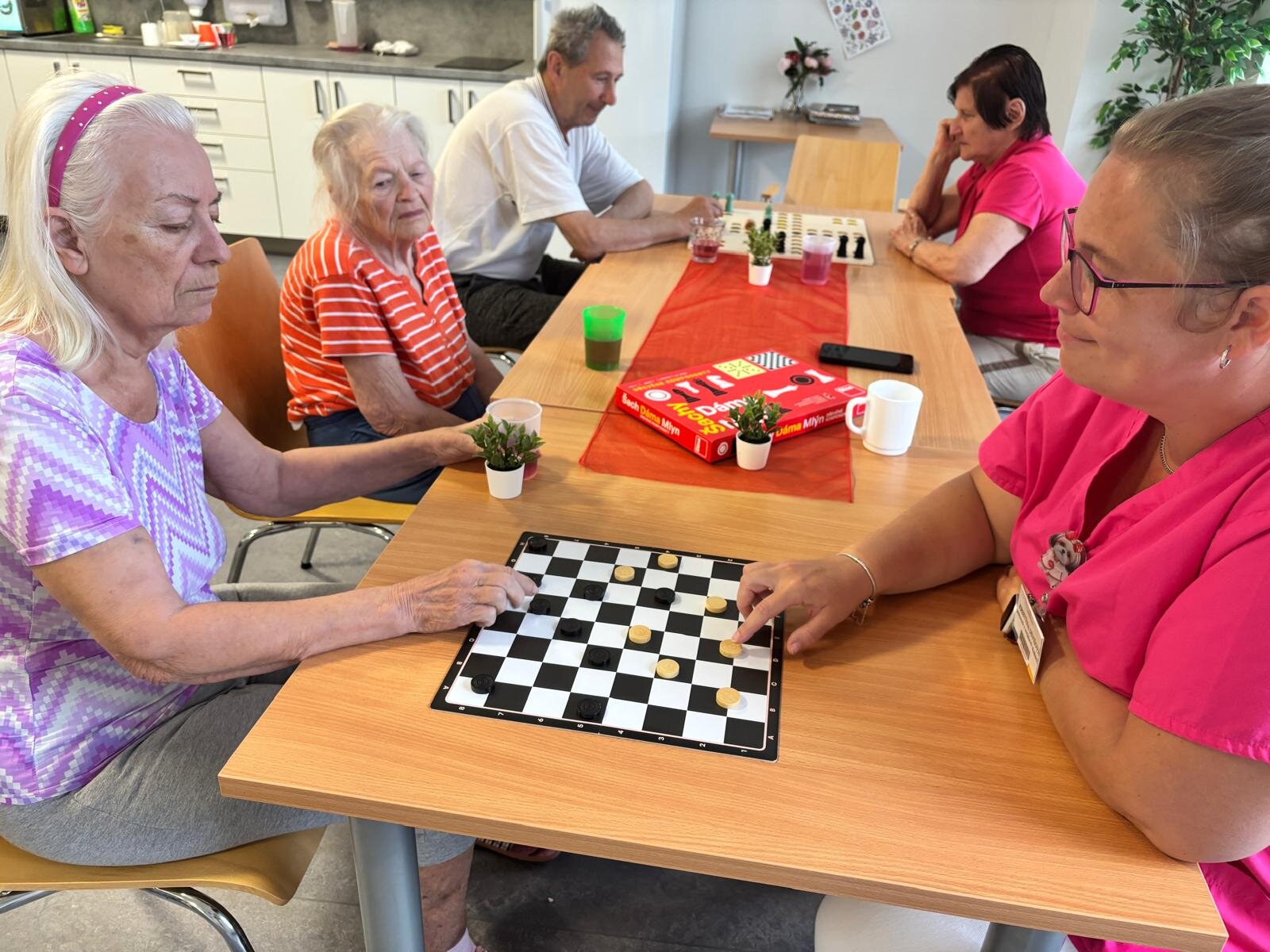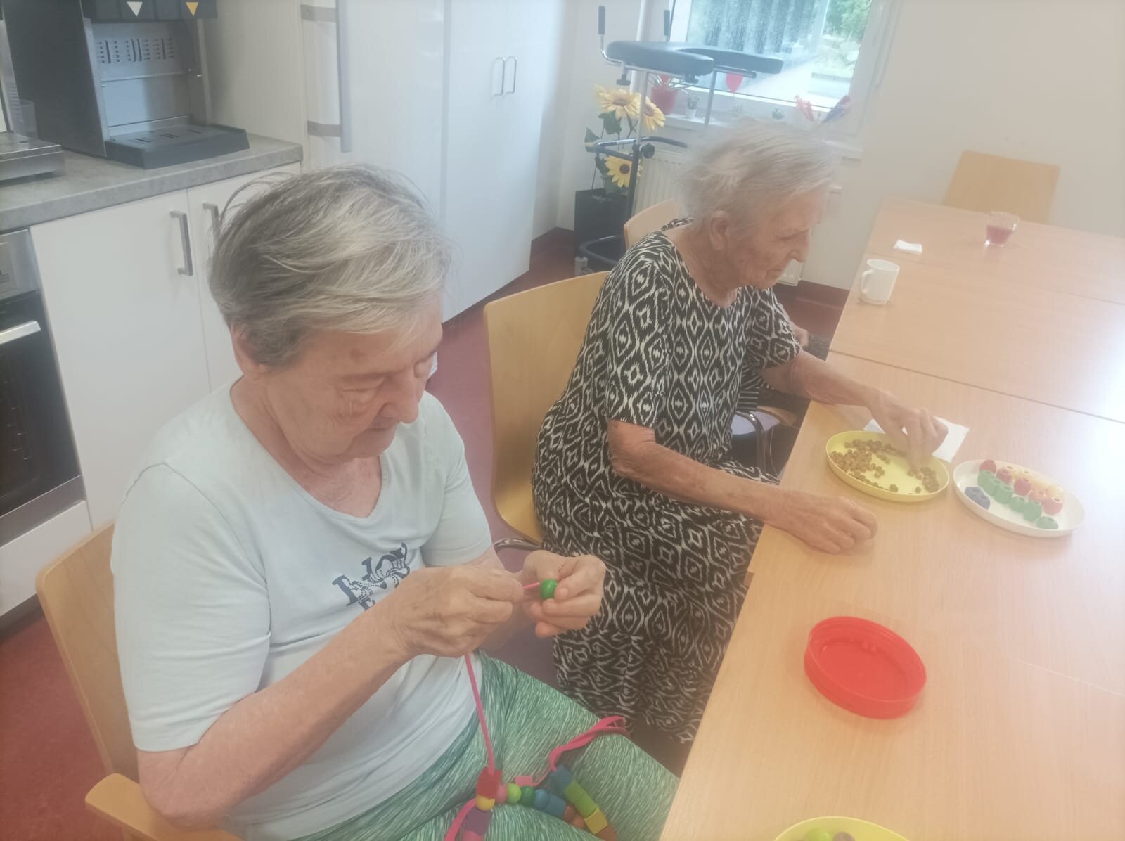 Dnes si klienti v Senevida Nepomuk procvičovali své dovednosti s úsměvem! 😊 Někteří se soustředili na rozvoj jemné motoriky navlékáním barevných korálků, ale také obtahováním tvarů, provlékáním nití a dalšími aktivitami, které skvěle procvičují ruku a koordinaci oko-ruka. Jiní si užívali zábavu a strategické myšlení u deskových her, které zase stimulují paměť a kognitivní funkce. Je krásné vidět, jak se každý zapojuje a nachází radost v aktivitách, které ho baví!♟️🪡