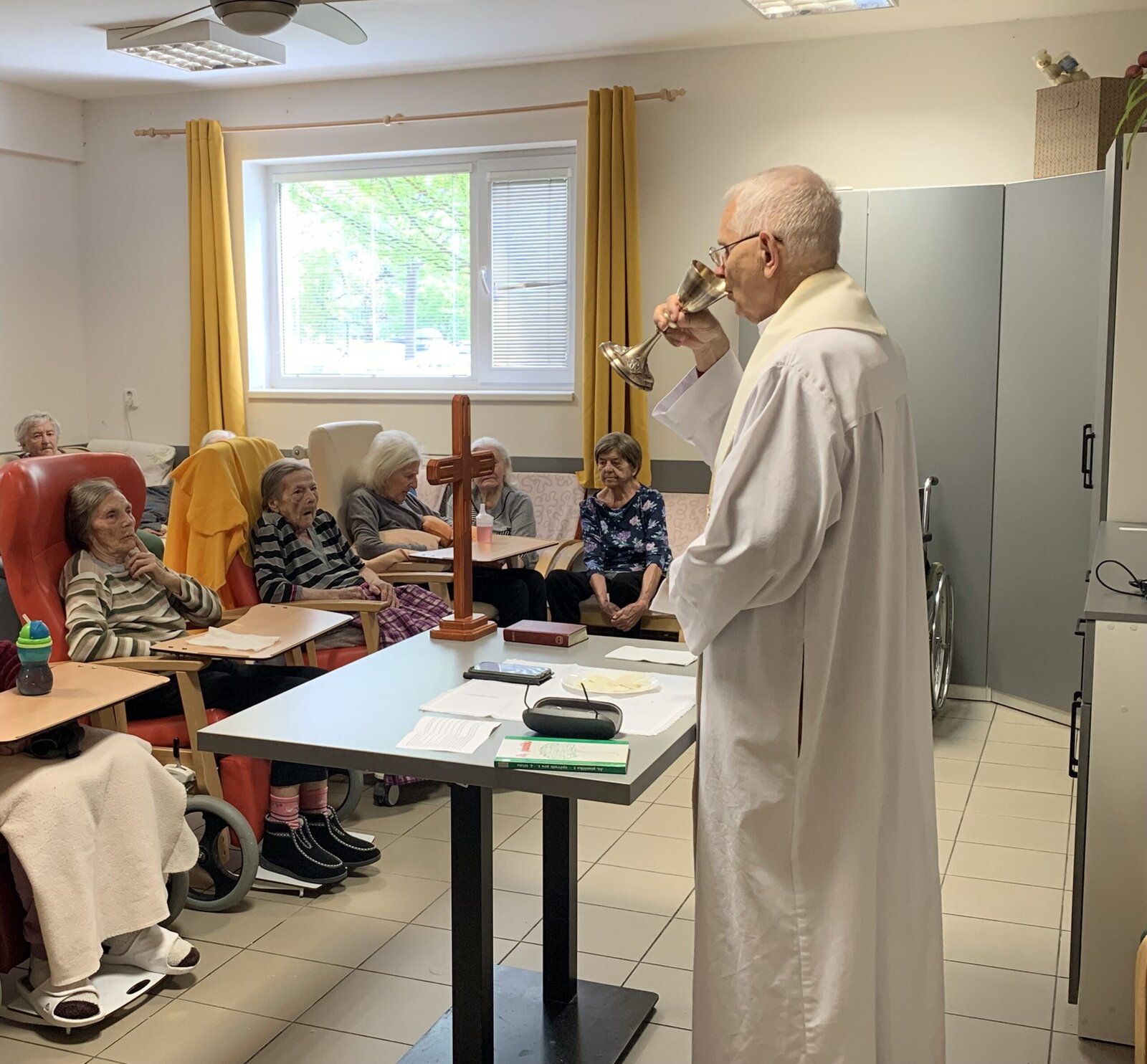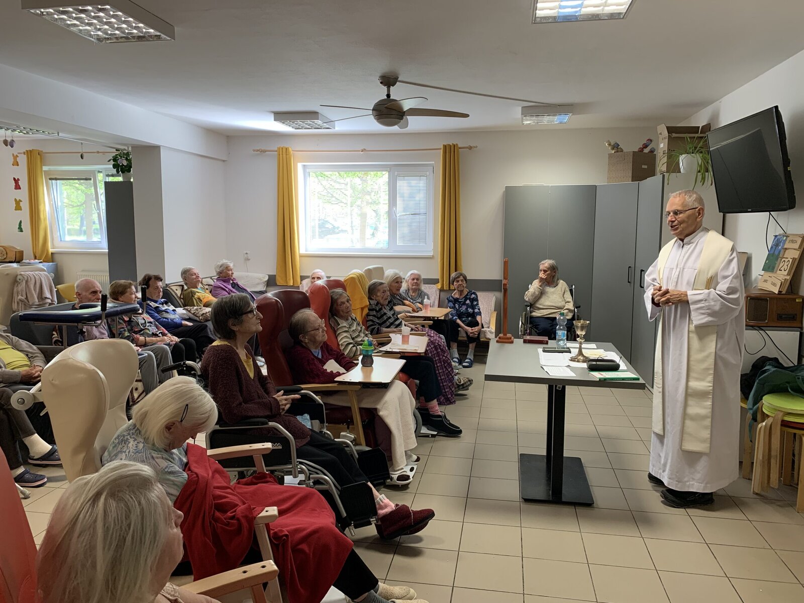 I v dubnu jsme přivítali pana faráře. A jako vždy jsme naši společnou Bohoslužbu zakončili lidovými písněmi.