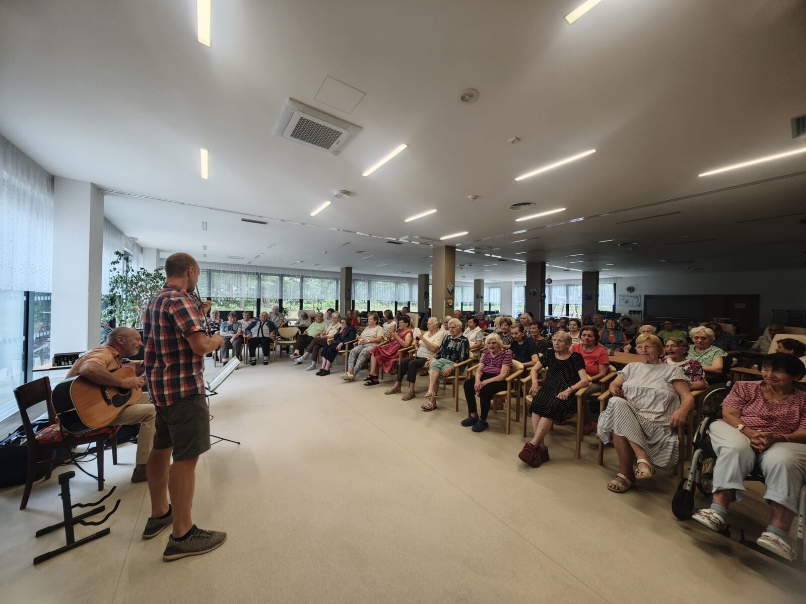 Na začátku července nás v Senevida Pardubice potěšilo hudební duo Šálkovi, tedy pan Pavel a pan Pavel 🙂. Jejich folkové písně vytvořily příjemnou atmosféru, která rozzářila tváře našich klientů i personálu.