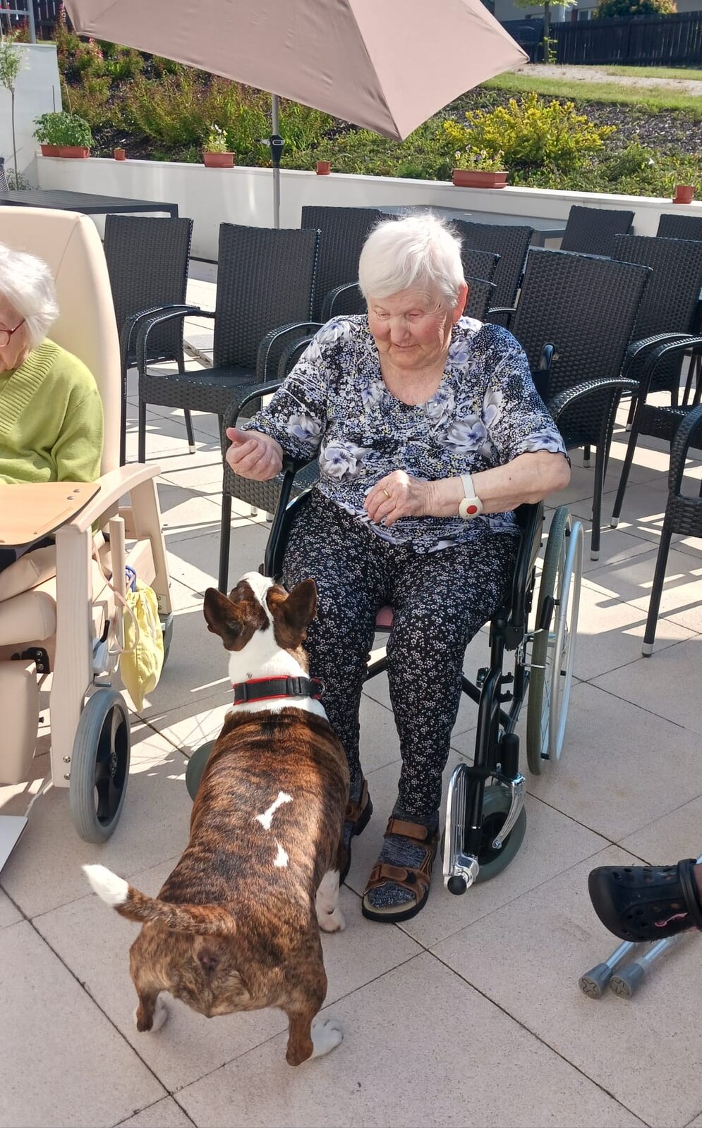 Klienti si užili nejen hlazení a kontakt se Zairou, ale také příjemný čas venku na čerstvém vzduchu. Zaira je oblíbenou návštěvou – její přítomnost dokáže zklidnit, rozveselit i navodit pocit bezpečí.