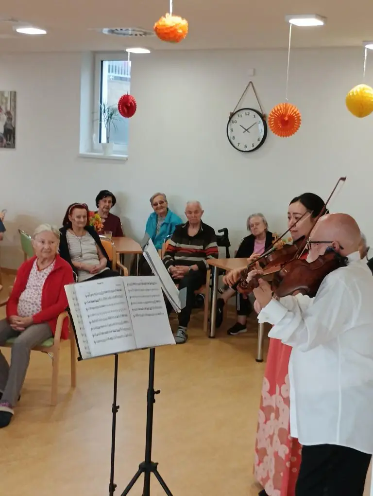 V předvánočním čase navštívili naše klienty ze Senevida Boskovice , hudebníci z Filharmonie Brno, kteří našim klientům připravili krásné a klidné odpoledne plné hudby, povídání a poznávání jiných kultur. V podání Brňenské Filharmonie zazněly známé vánoční koledy i krátké klasické skladby, které navodily sváteční náladu a vykouzlily úsměvy na tvářích všech přítomných.