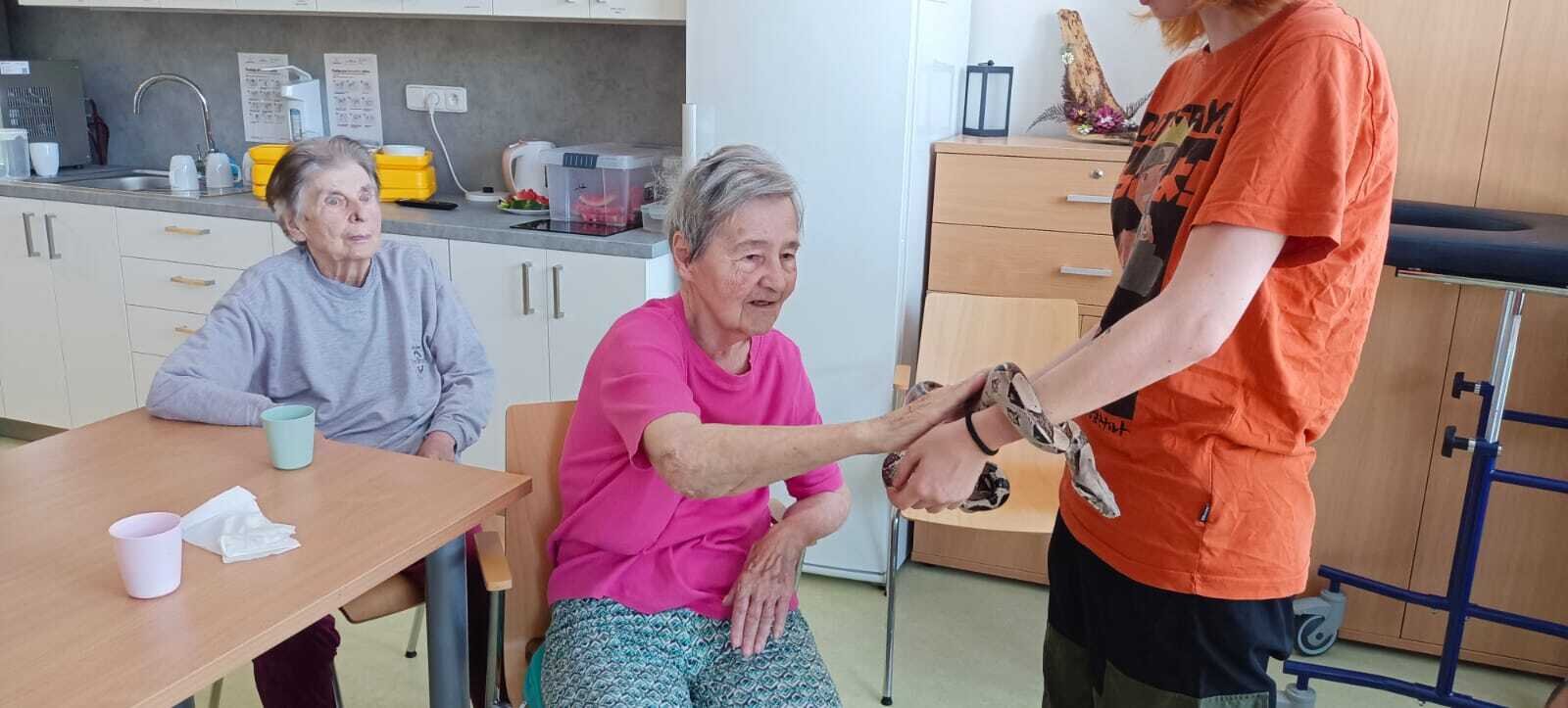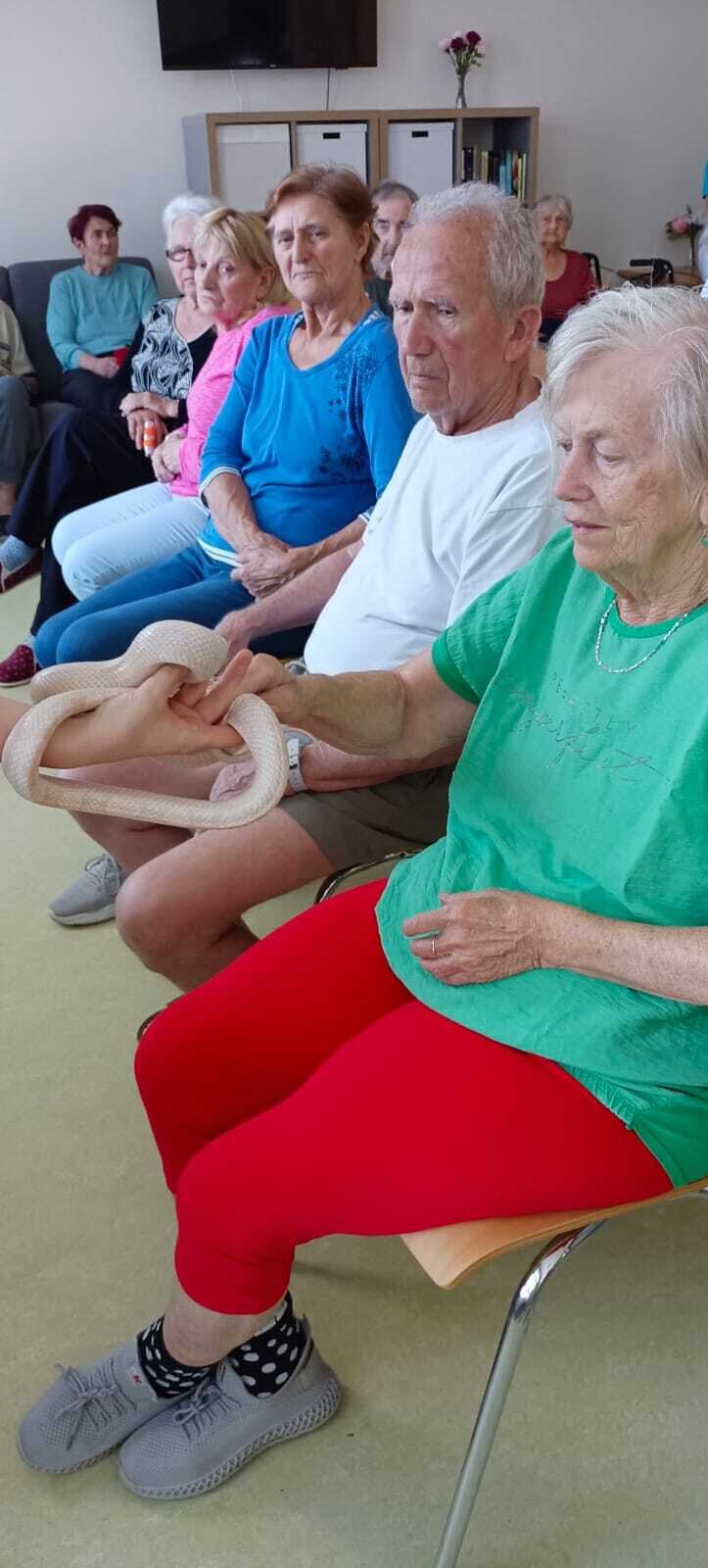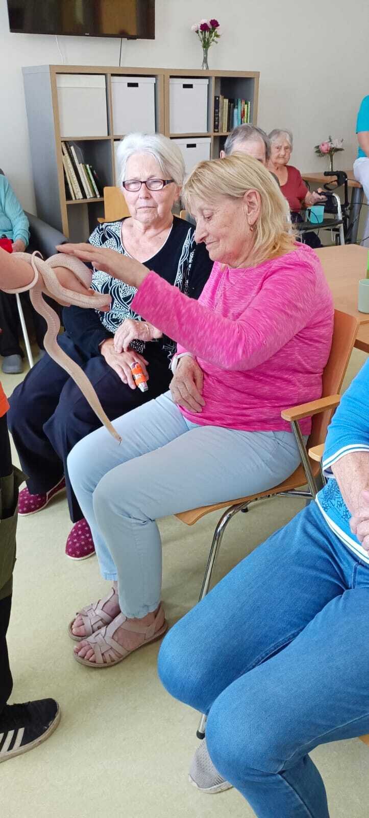 Již podruhé nás navštívila Smith animals. Naši klienti v Senevida Nepomuk měli možnost pohladit si želvu, ještěrku, ale i velkého hada. 🐍🦎 Měli jsme k tomu i výklad s informacemi čím se taková zvířata živý a jak žijí. Naše klienty návštěva vždy potěší 👍🍀.