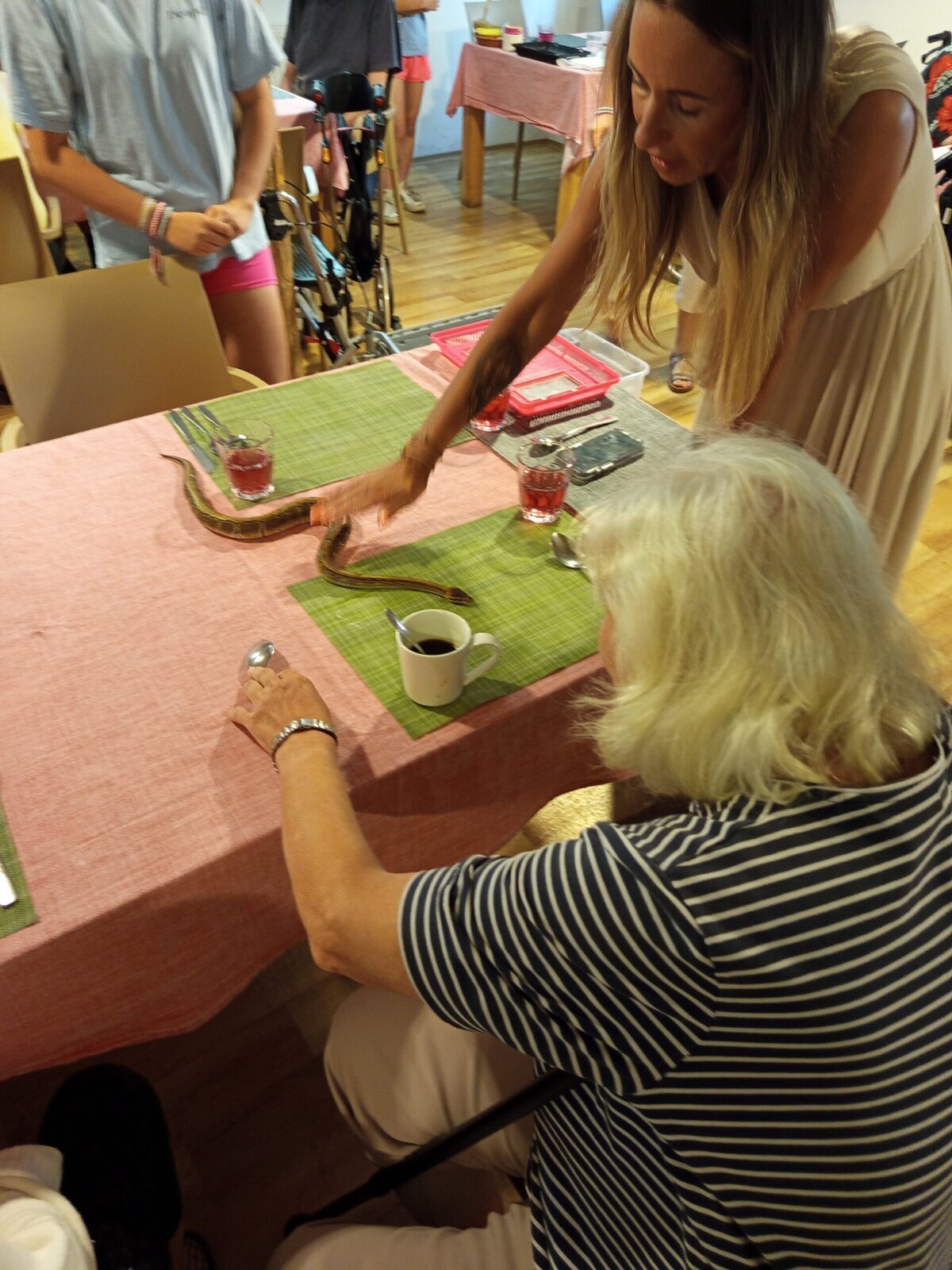 V Pyšelech máme odvahu. Ze setkání s exotickými zvířaty si odnášíme, kromě krásného zážitku i spoustu zajímavých informací. V Pyšelech se nám platili hadi, skákaly žáby a lezly želvy. Ti statečnější z nás si nechali dát hada za krk :)