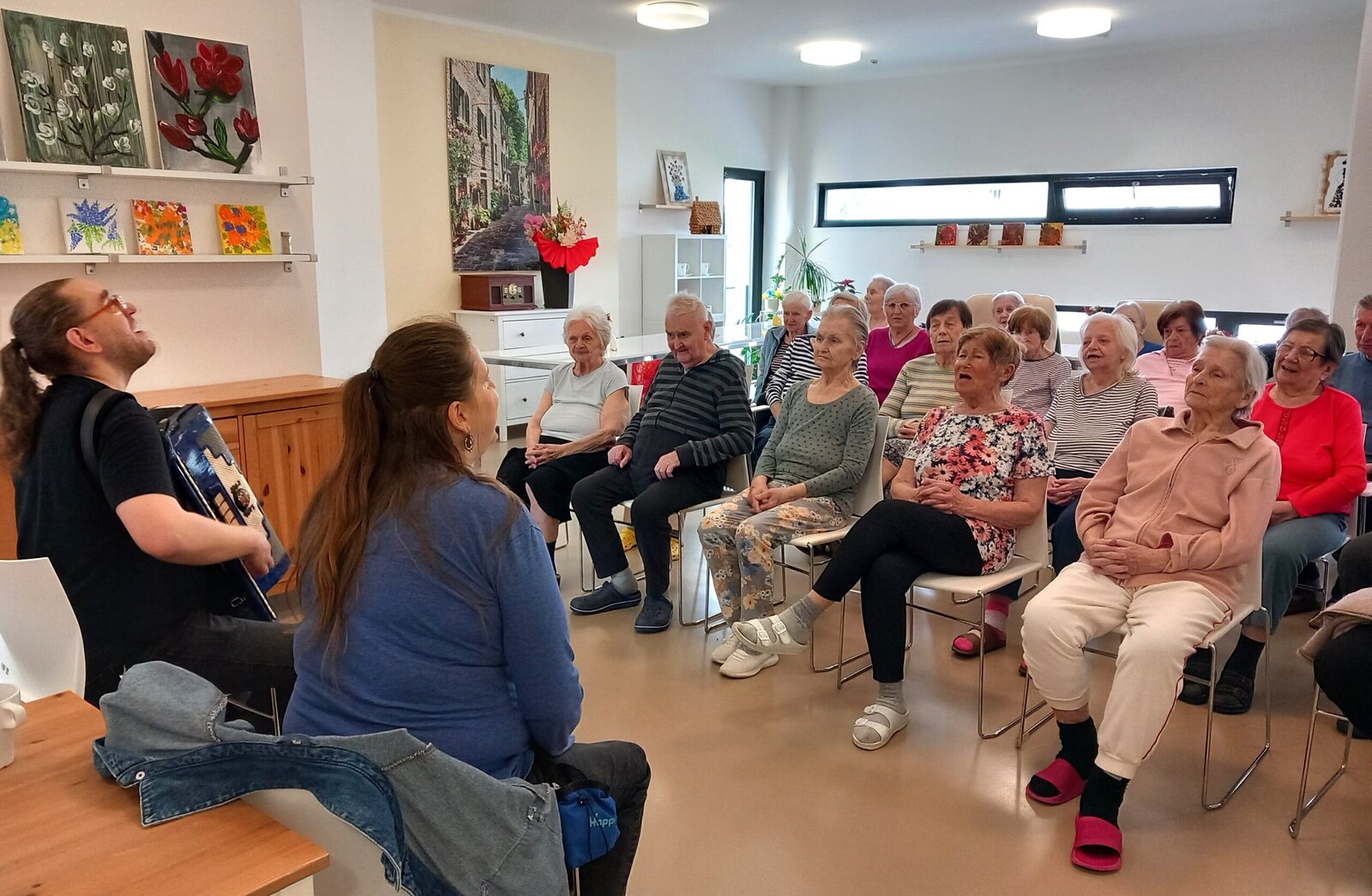 V Senevida Zátiší jsme opět rádi přivítali oblíbeného harmonikáře Míru. Tentokrát si pro nás připravil milé překvapení – dorazil se svou partnerkou a roztomilou psí společnicí. Jeho vystoupení obohatily krásné melodie, které navodily příjemnou atmosféru. Společně jsme zpívali známé písně, smáli se a prožili pohodové odpoledne plné radosti, hudby a přátelské pohody, na které budeme rádi vzpomínat.