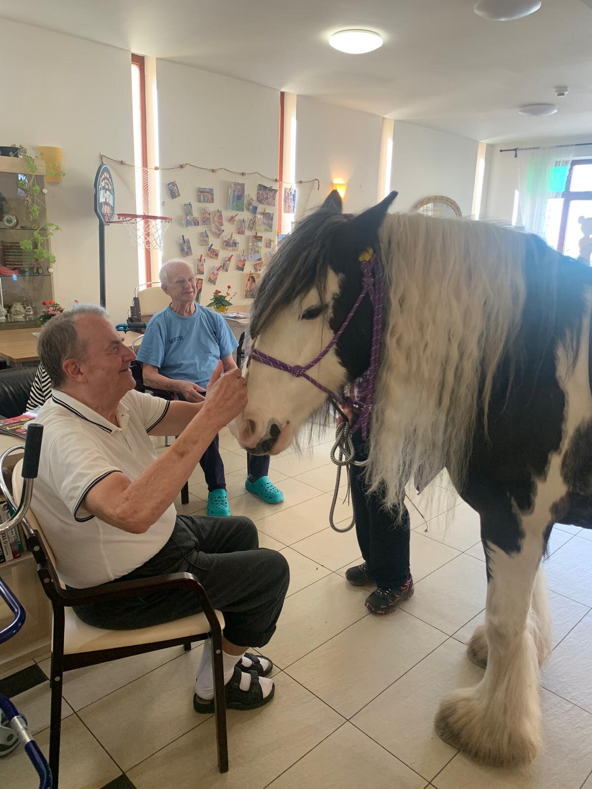 O víkendu nás v Senevida Sychrov již podruhé navštívila paní Soňa Trsková s kobylkou Nevadou. Hipoterapie se zúčastnilo 15 klientů. Klienti měli možnost si kobylku pohladit, zaplést copánek a užít si chvilku jen pro sebe. Děkujeme za krásný zážitek a těšíme se na příští návštěvu.