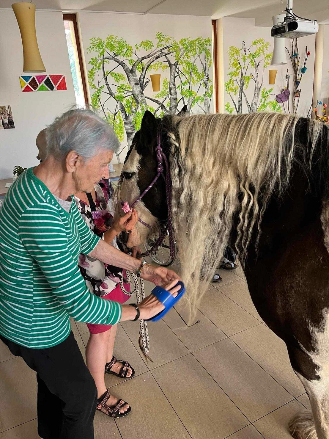Klienty v Senevida Sychrov znovu navštívila paní Soňa Trsková s kobylkou Nevadou. Návštěva probíhala formou individuální hipoterapie, kdy každý ze zúčastněných klientů měl Nevadu na pár minut jen sám pro sebe. Paní Trskové moc děkujeme, že k nám pravidelně dochází a klienti mají možnost prožívat tento skvělý zážitek opakovaně.