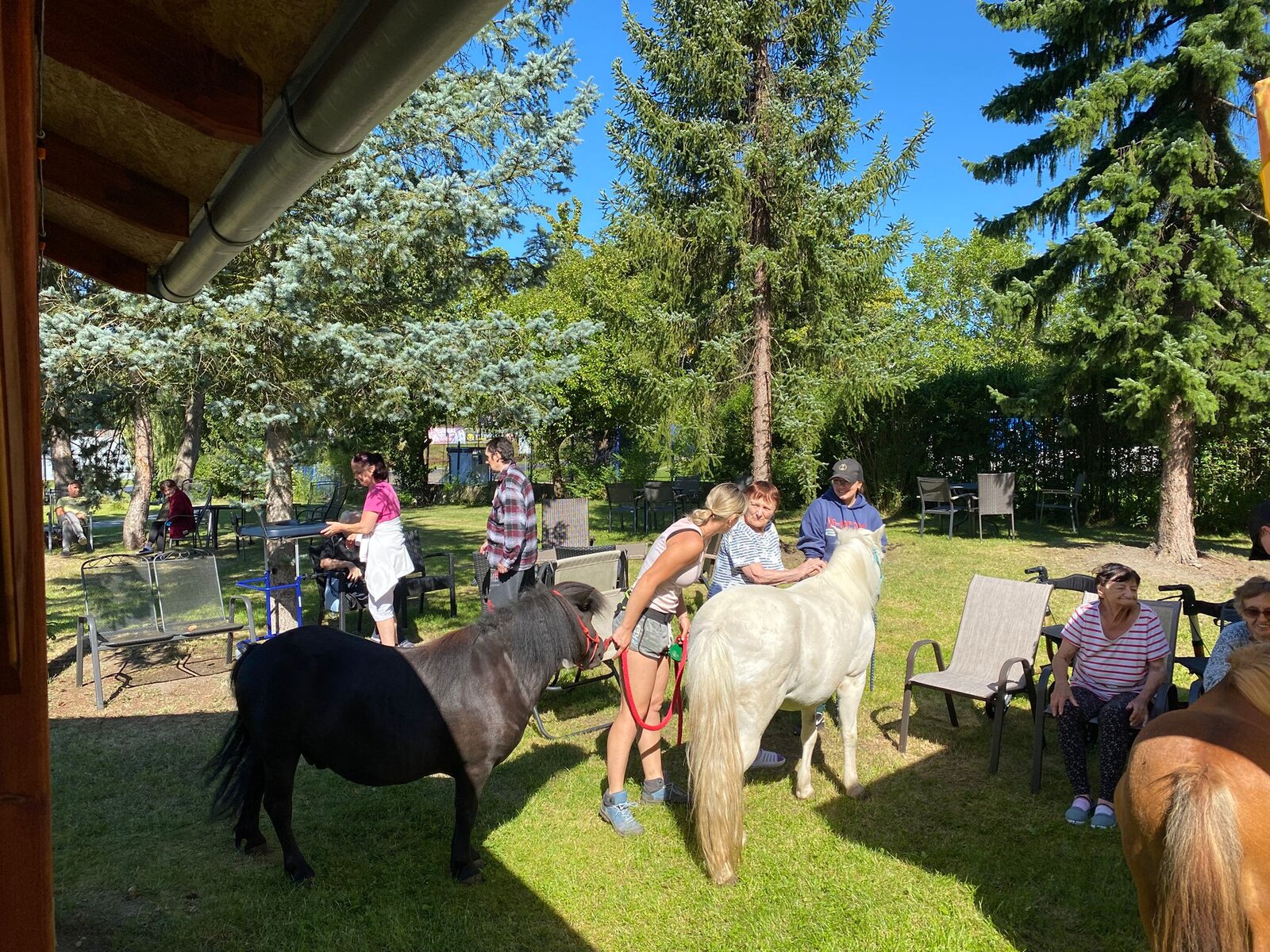 Úterní dopoledne klienti Senevida Česká Lípa strávili na zahradě se svými čtyřnohými kamarády z Českého Ranče. Ke Slávince a Diance se přidal další kamarád Sparty.😊