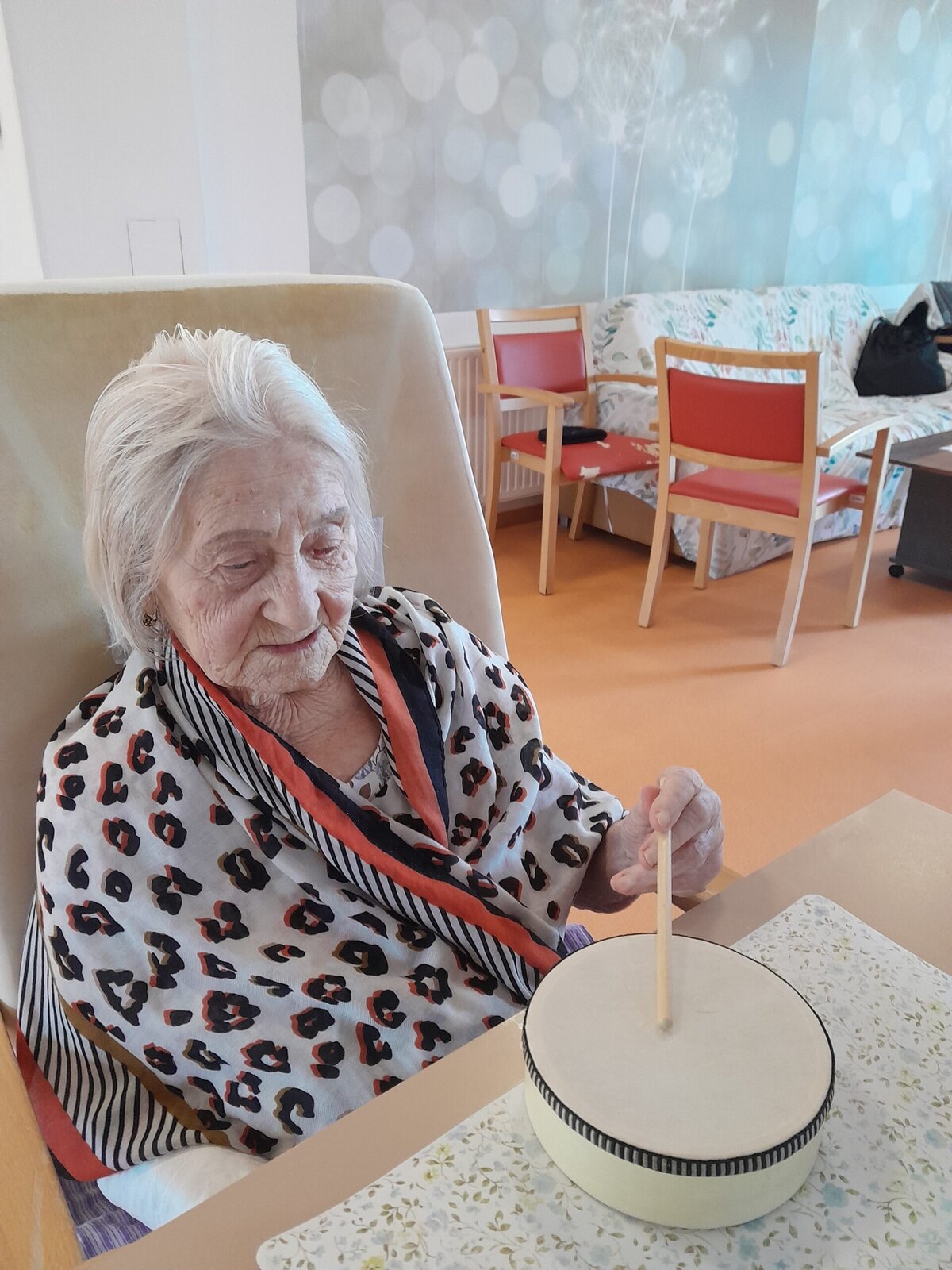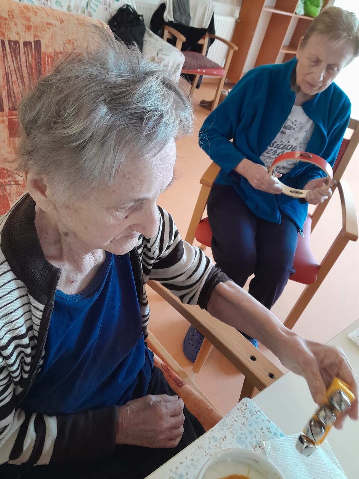 Zahrály jsme si s klientkami Senevida Zlín na hudební nástroje do různých rytmů. Kreativně jsme vymýšlely nové rytmy. V průběhu jsme si k tomu zpívaly.