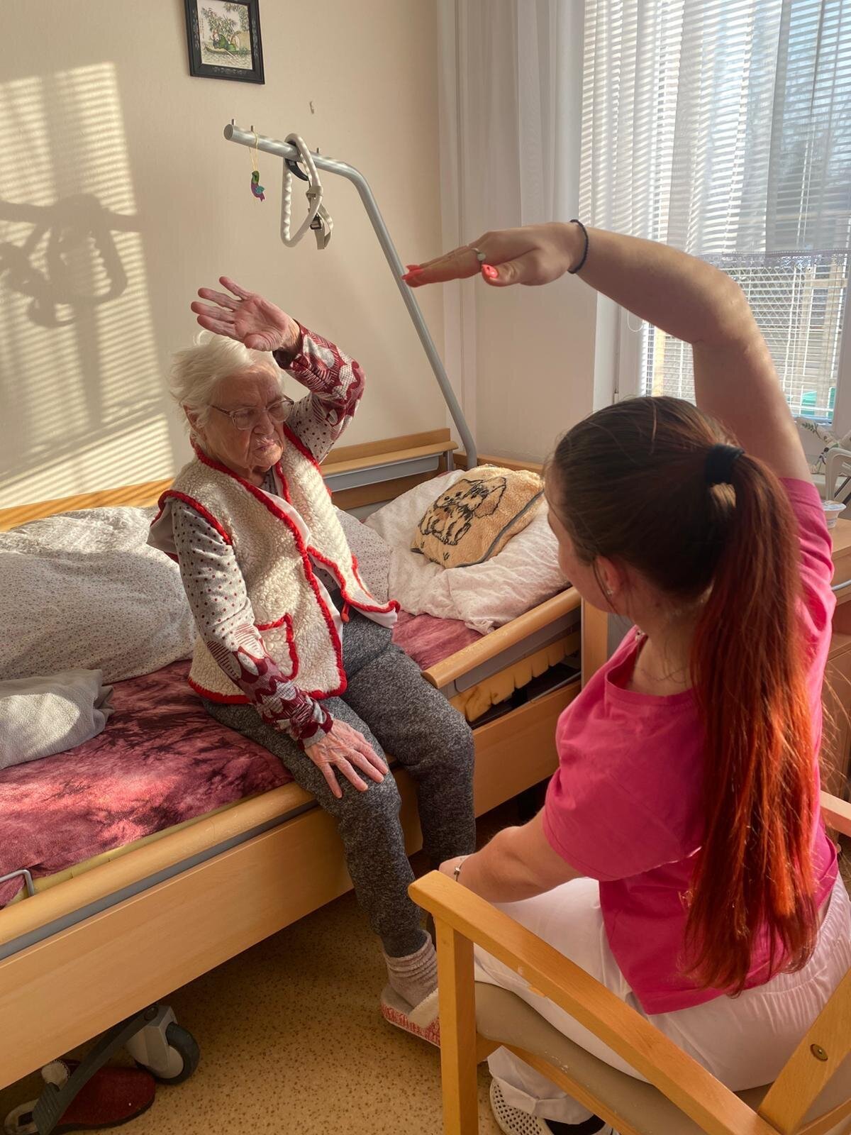 Náš volný čas v Senevida Prácheň, trávíme individuální aktivizací. 🙂 Někdo trénuje chůzi, jiný jemnou motoriku a protahování svalů a další, dle svého přání, vyrazí na procházku. 😊💙