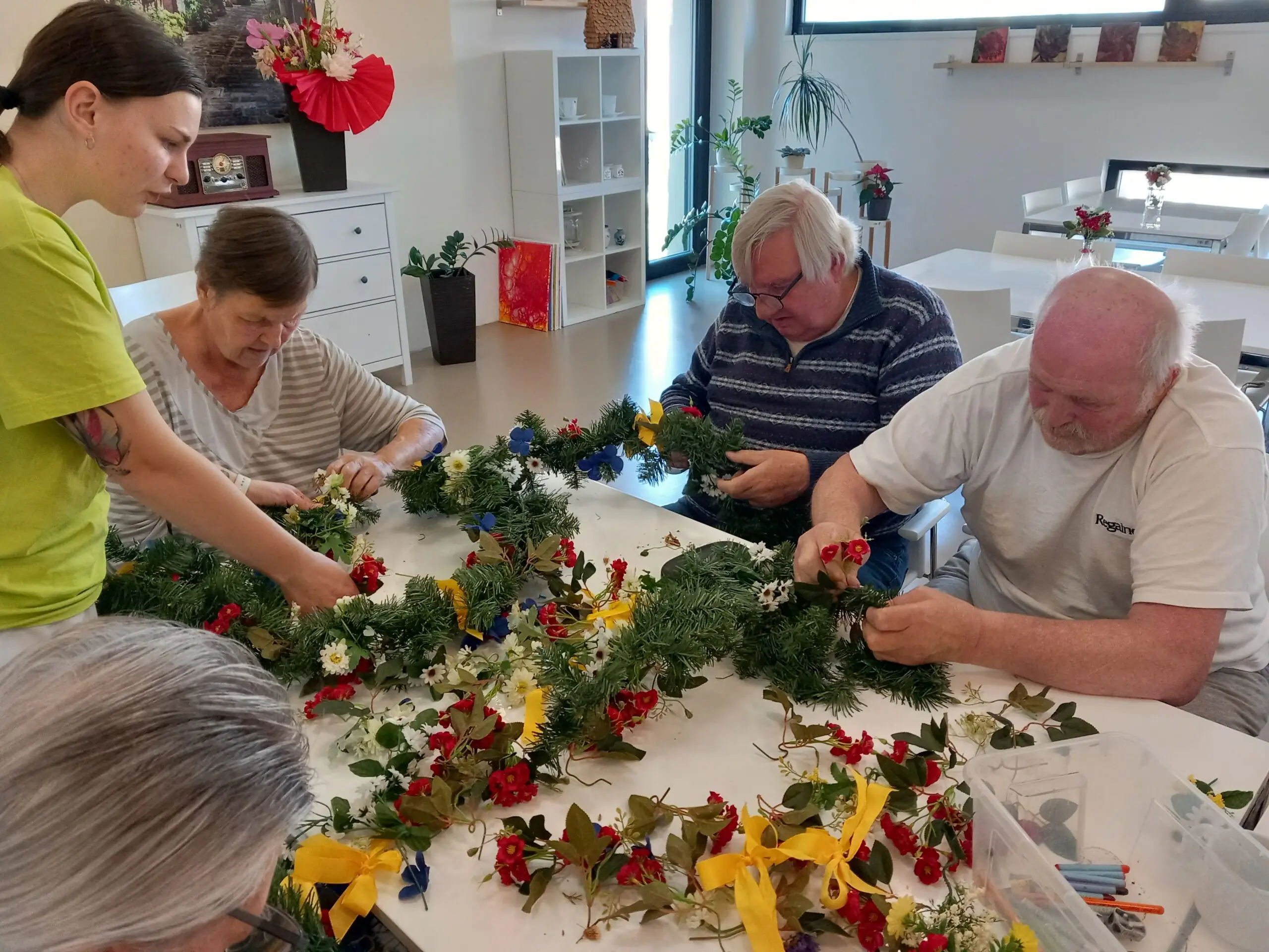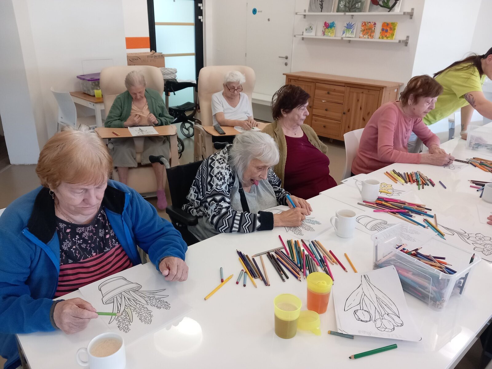 V našem zařízení Senevida Zátiší se připravujeme na jarní výzdobu. S klienty jsme společně zdobili věnce, které zdobily pestré jarní květiny. Někteří klienti se pustili do malování jarních květin, čímž vznikaly nádherné, barevné obrázky. Pestré barvy naplnily místnosti, a celková atmosféra byla plná radosti a svěžesti, která přináší jaro.