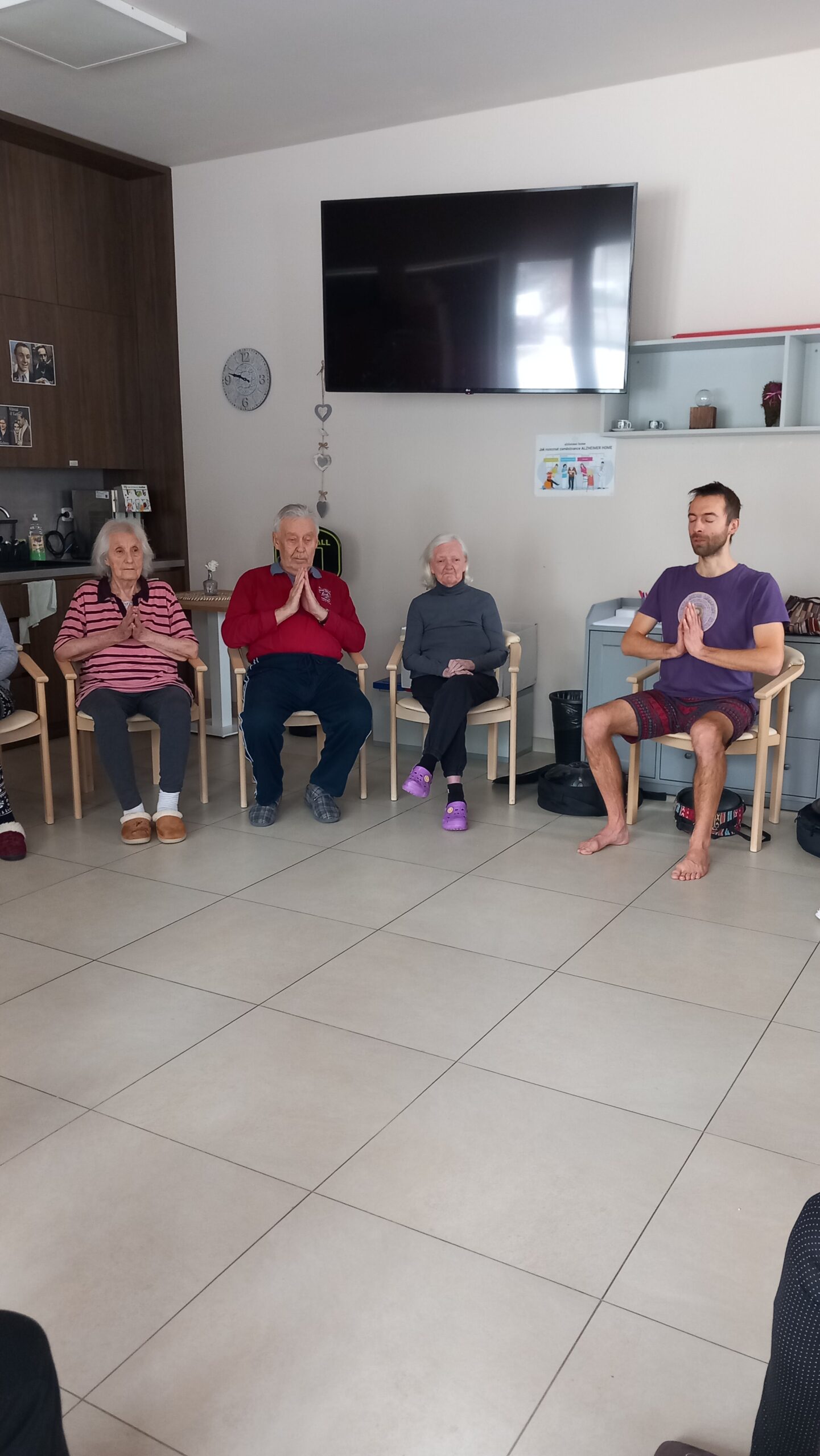 V SENEVIDA Lázně Bohdaneč pořádáme lekce Jógy pro seniory. 😊Tyto hodiny jsou oblíbenou činností našich klientů a velmi vyhledávanou aktivitou. Propojení relaxace, pohybu a hudby je vítanou činností.🪘 Již nyní se těšíme na opětovně shledání s panem lektorem na dalších lekcích v našem domově.💞🌼