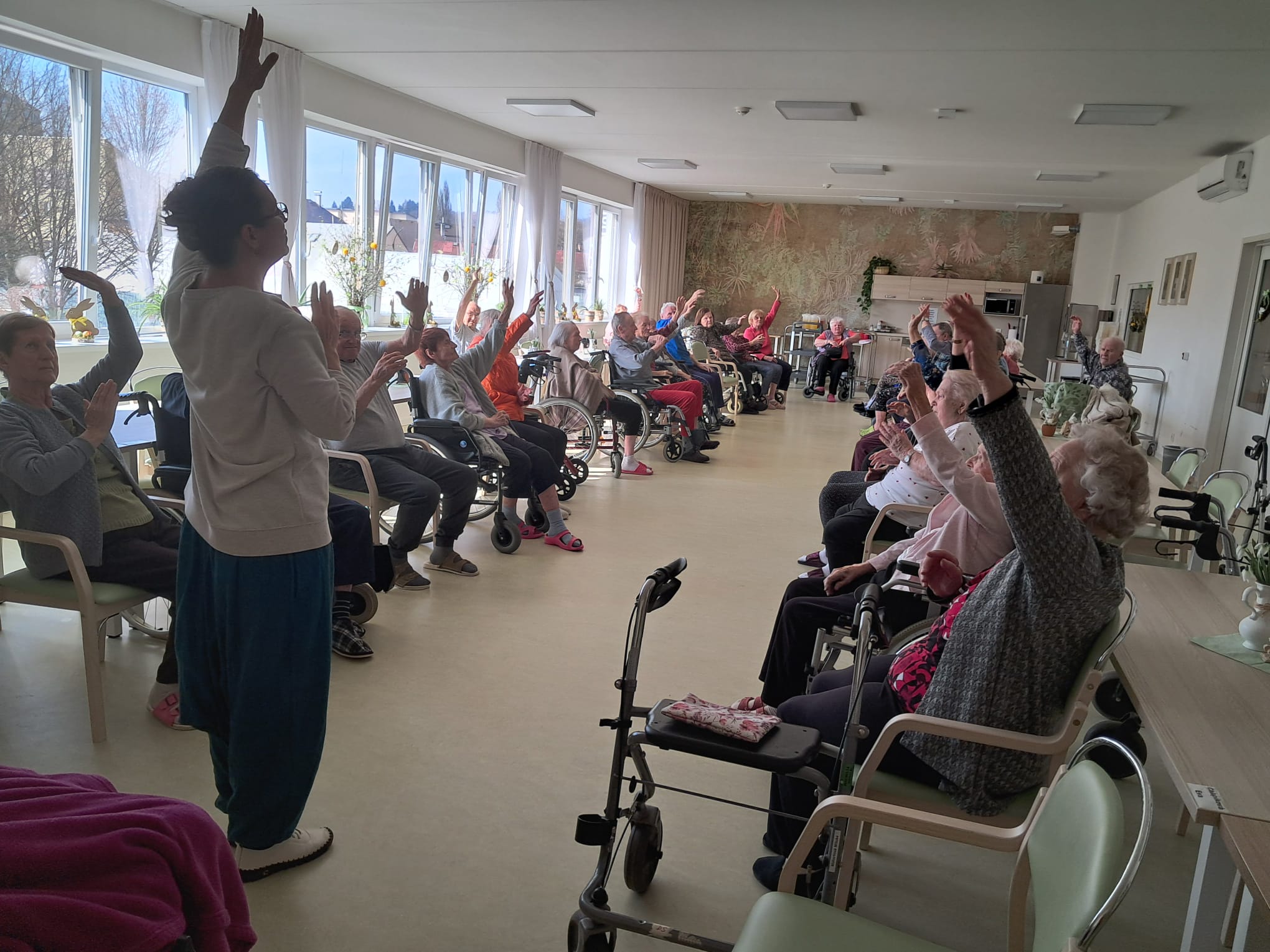 V našem Domově se každých čtrnáct dnů koná oblíbená lekce jógy, při které si klienti příjemně protáhnou svaly a zlepší svou pohyblivost.