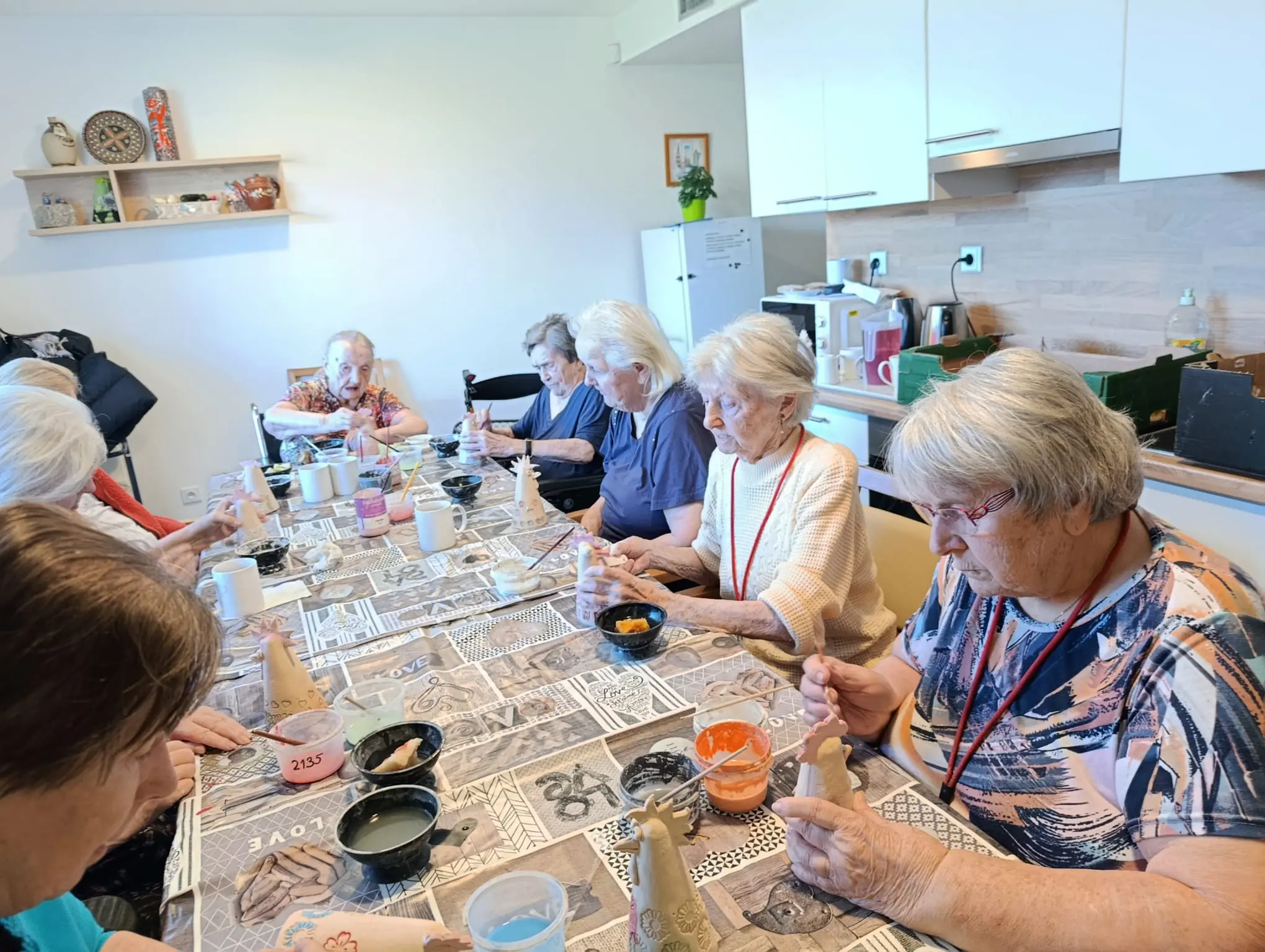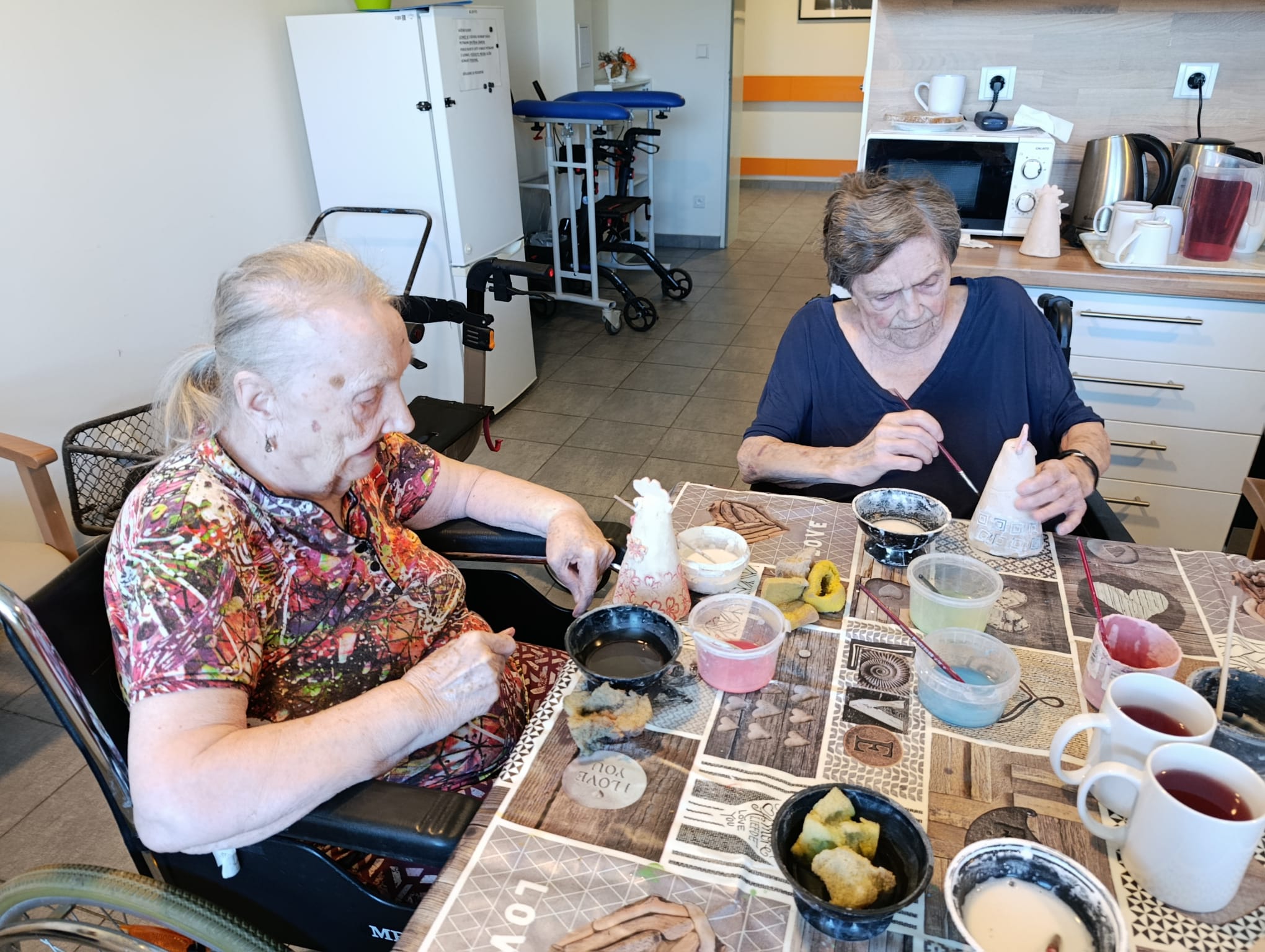 Ve středu si klientky dodělaly své keramické výrobky a každému kohoutovi či slepičce dodaly barvu dle svého gusta.