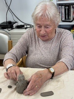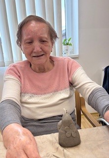 U nás v domově se veliké oblibě těší keramika. Milá paní, která pravidelně přichází s nápady a dopomocí klientům vytvořit vkusné výrobky, tyto výrobky v peci také vypálí a při příštím sezení je klienti obdrží a vystavují nebo darují rodině.