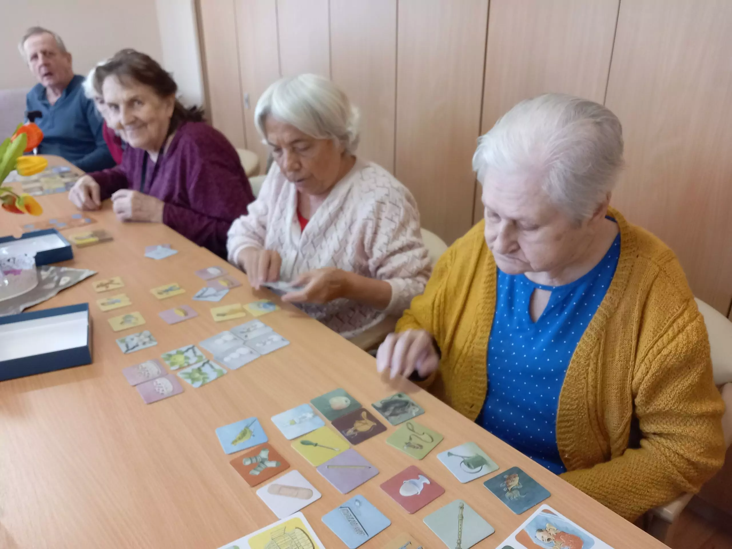 Trénování paměti je jednou z pravidelných aktivit, které se v Alzheimer Home Frýdek-Místek konají. Tentokrát jsme si jej zpestřily speciálními kartami, díky kterým jsme procvičovali nejen kognitivní funkce, ale také týmovou spolupráci.
