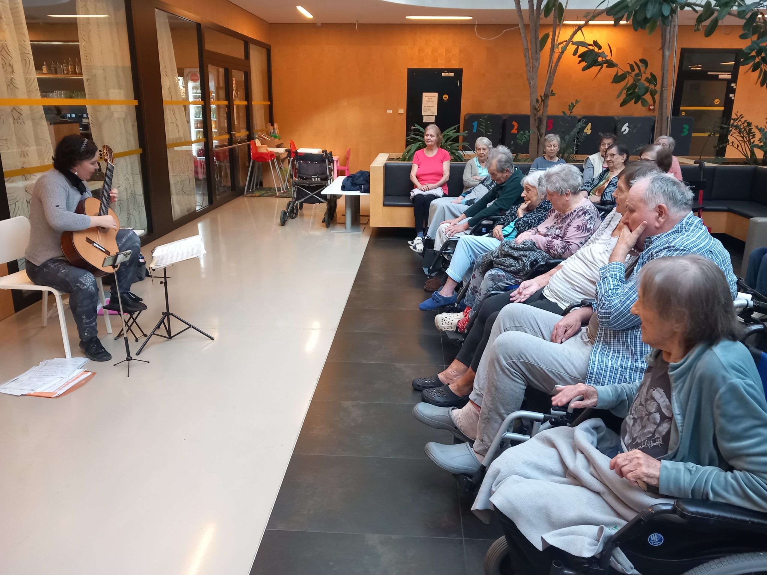 V Senevida Zátiší se v atriu uskutečnil kytarový koncert Lucie Šťavíkové. Klienti si mohli vychutnat známé lidové písně, do kterých se s radostí zapojili zpěvem i potleskem. Program doplnily i krásné klasické skladby, které navodily příjemnou a klidnou atmosféru. Hudební vystoupení přineslo radost a oživilo den všem přítomným. Děkujeme Lucii za krásný kulturní zážitek.