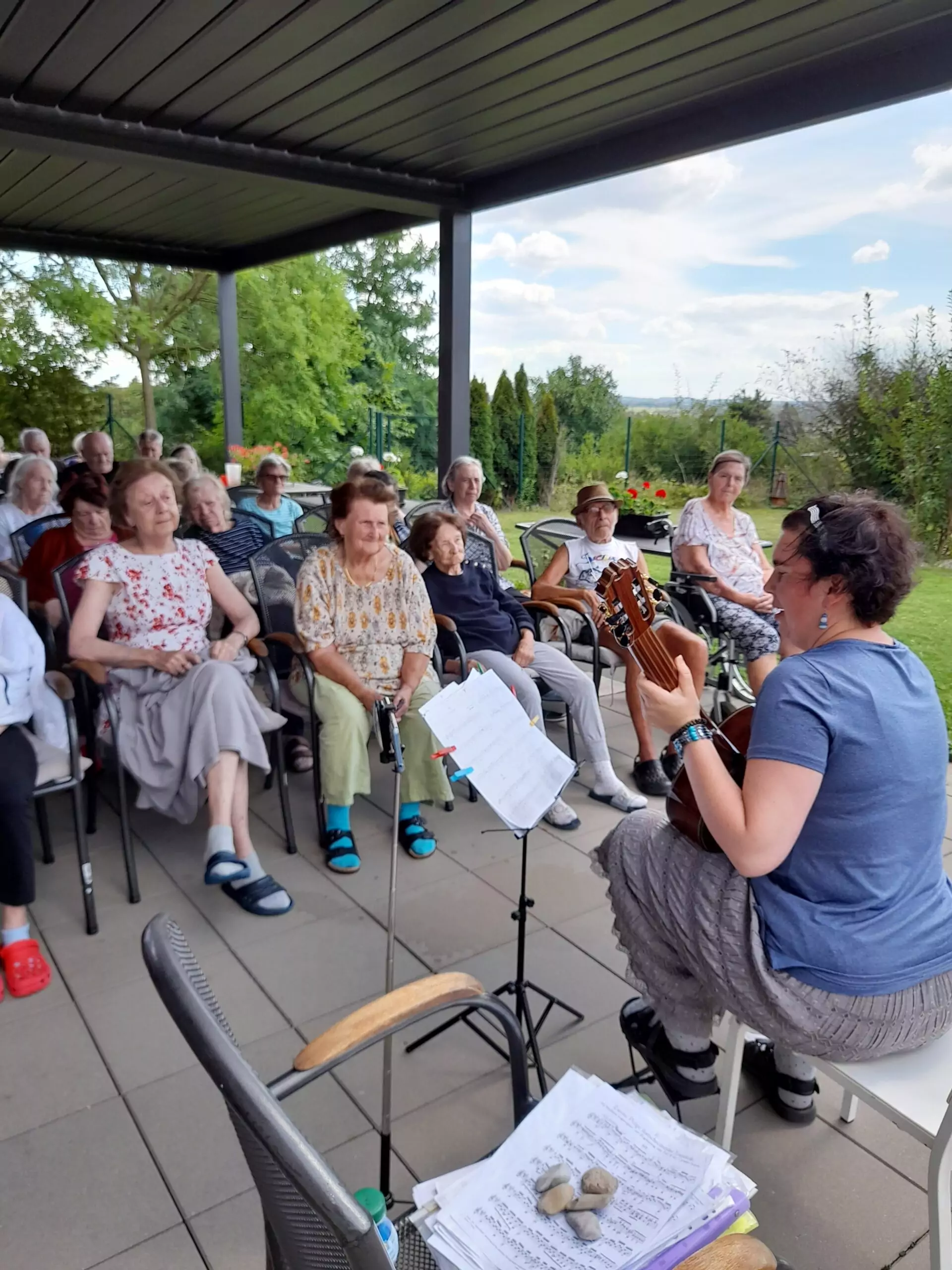 Na naší krásné zahradě v Senevida Zátiší se konal nádherný koncert klasické kytary v podání paní Lucie. Příjemné melodie zaplnily prostor a vytvořily uklidňující atmosféru. Během akce zazněly i oblíbené lidovky, do kterých se s radostí zapojili naši klienti, kteří si společně zazpívali. Byl to krásně strávený čas pod širým nebem.