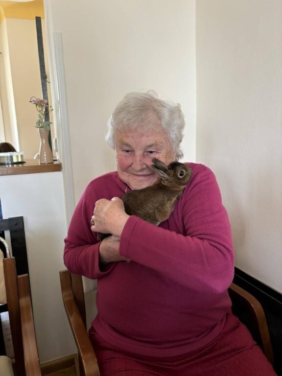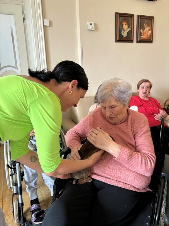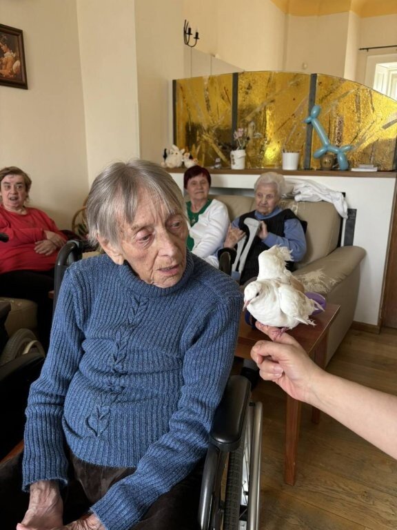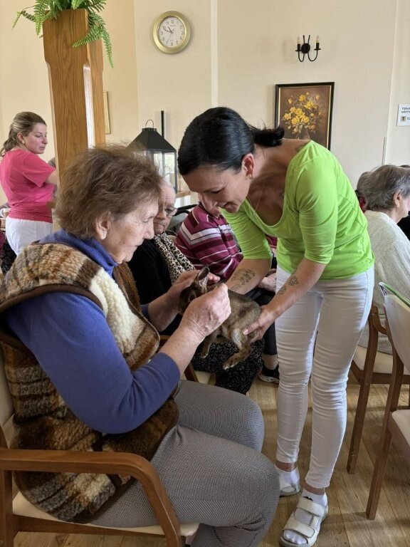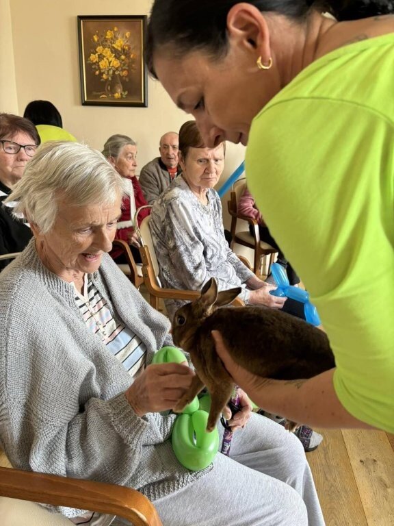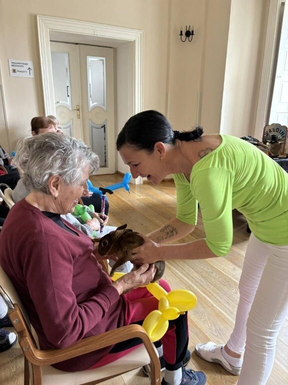 Na závěr vystoupení si naši klienti mohli pohladit, ale i třeba pochovat králíčka Honzu a holubičku Natálku, kteří byli součástí představení.
