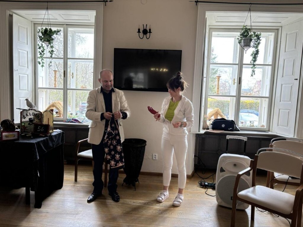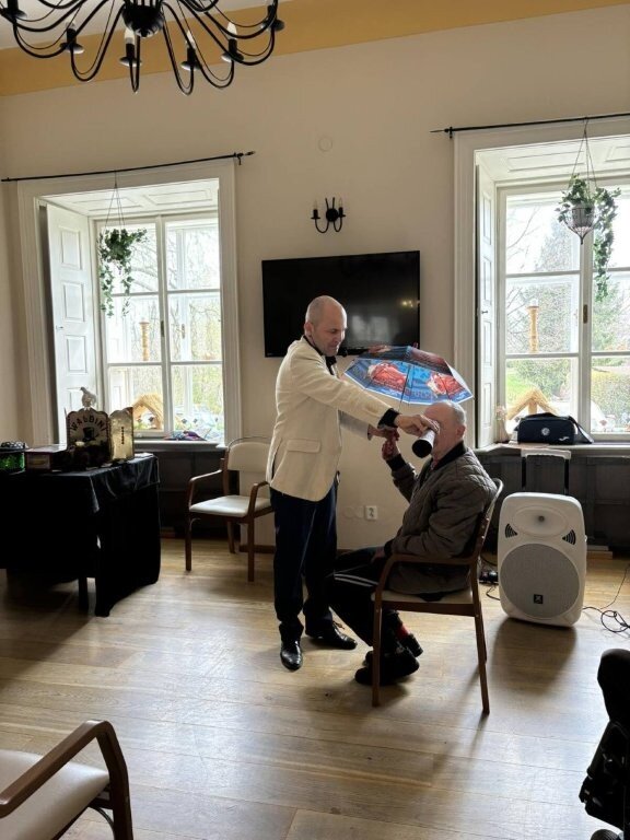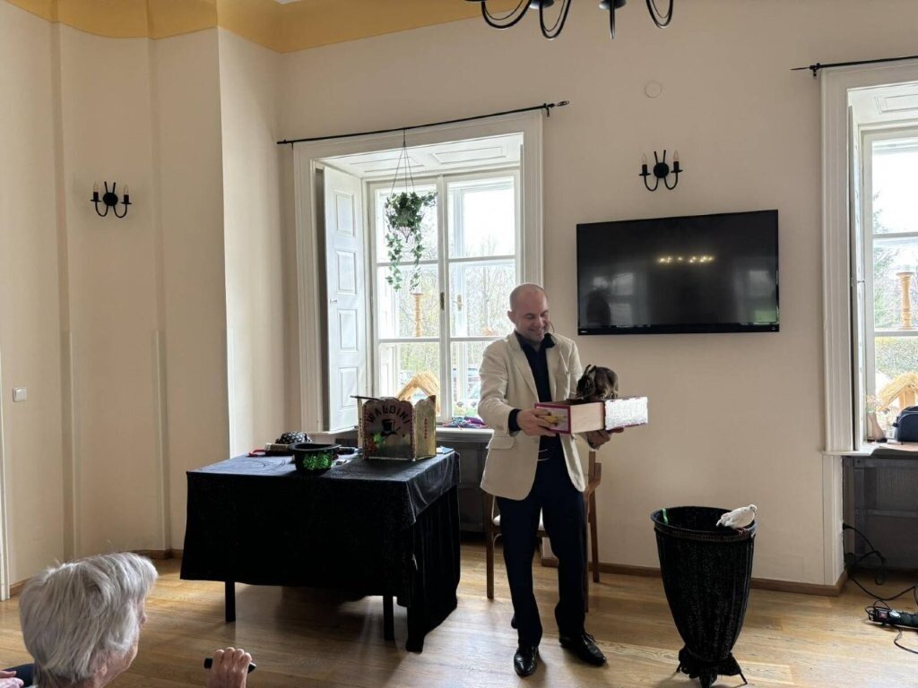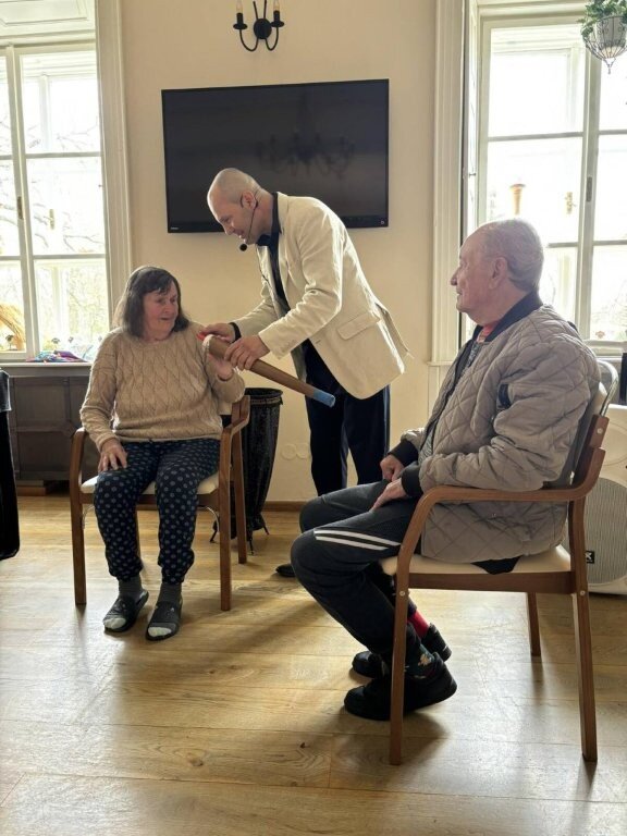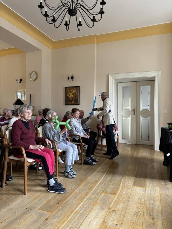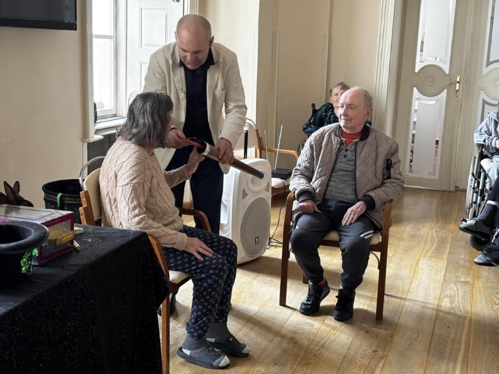 Na chvíli jsme se přenesli do světa kouzel, ruční manipulace, a sugesce. Mohli jsme obdivovat například kouzla s kartami, s kloboukem, či mizení předmětů.🃏 Do kouzlení se jako asistenti zapojili nejen klienti, ale i naše aktivizační pracovnice.