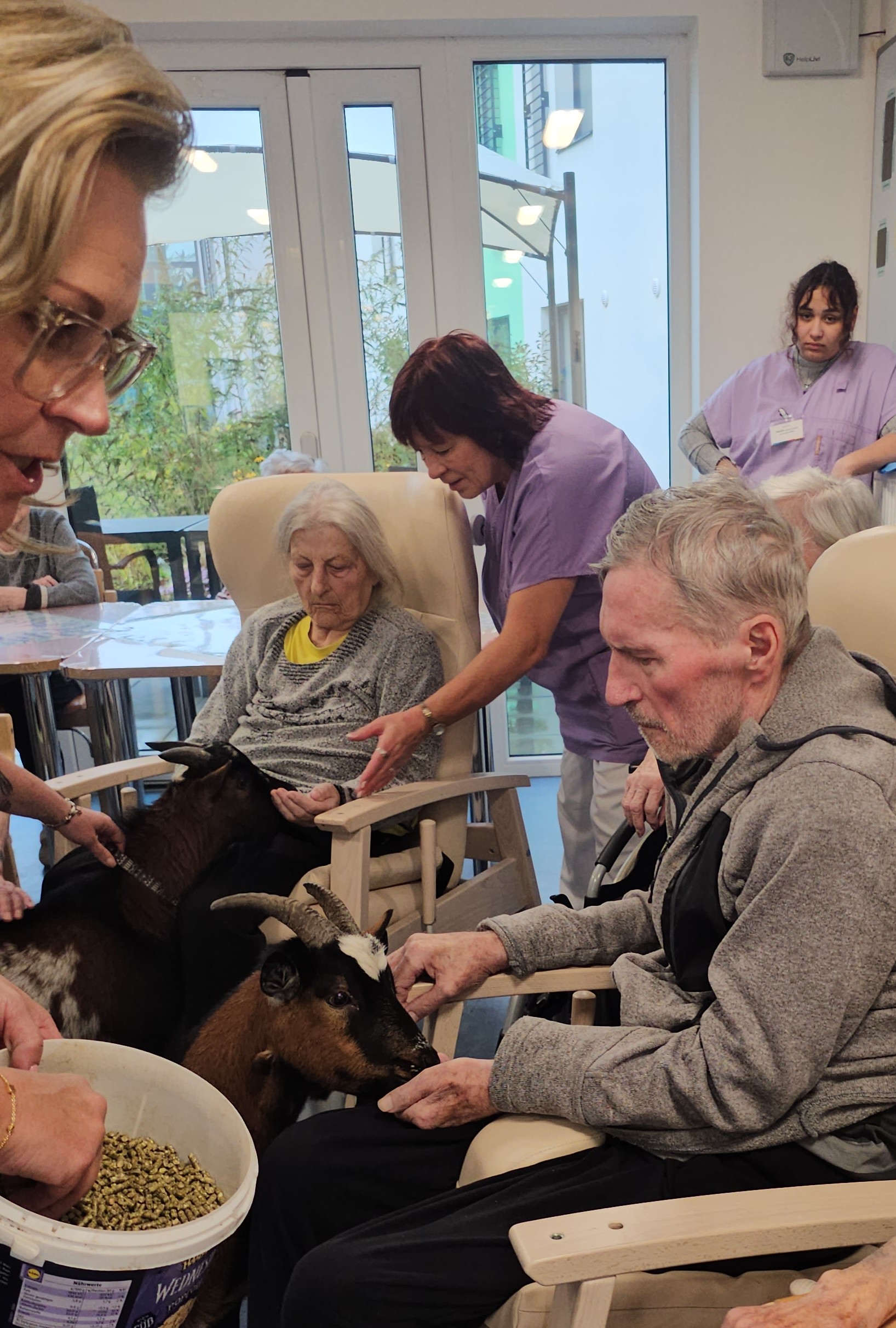 Klienty z Senevida Minkovice navštívila paní Lucie Cachová se svými milými čtyřnohými kamarády – kozlíkem Vildou a kozí slečnou Julčou. Naši klienti měli z návštěvy obrovskou radost – bylo to milé, veselé a nezapomenutelné setkání.