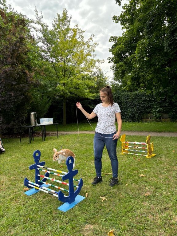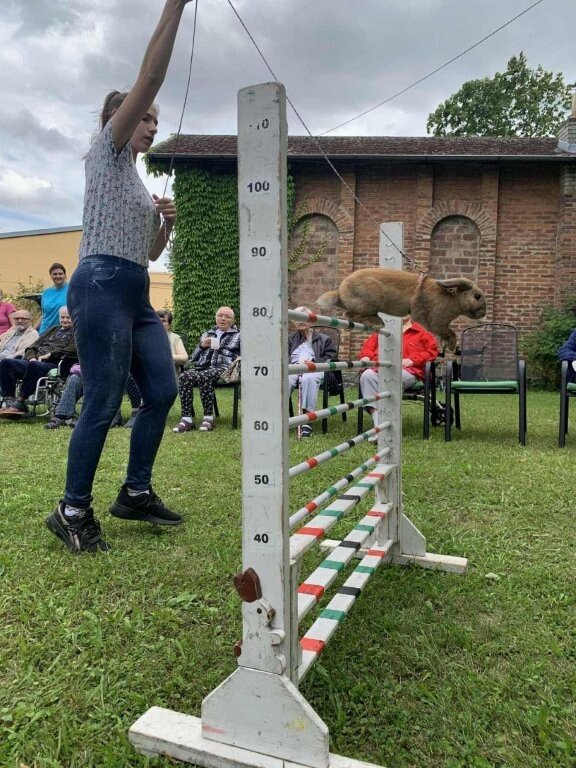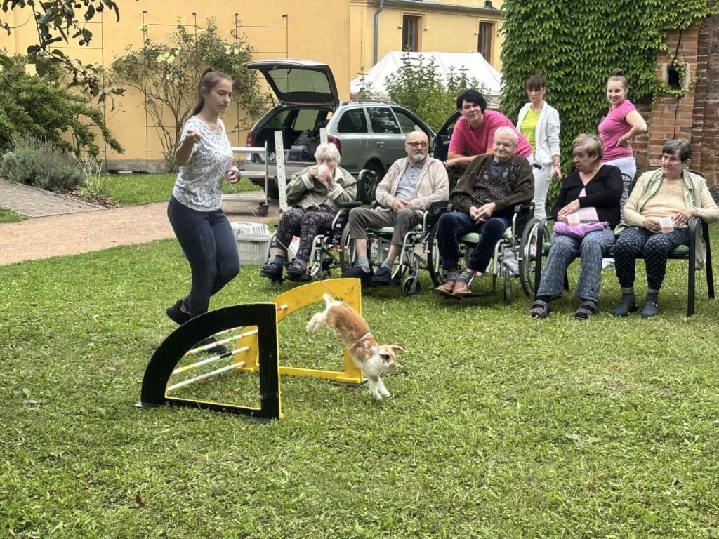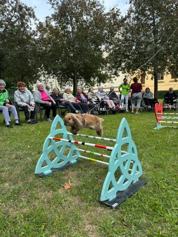 Ve středu se naše zámecká zahrada proměnila v dostihovou dráhu, protože k nám zavítali kouzelní a šikovní králíčci, kteří předvedli své dovednosti v "Králičím hopu"- skákání přes překážky. 🐇🐇🐇