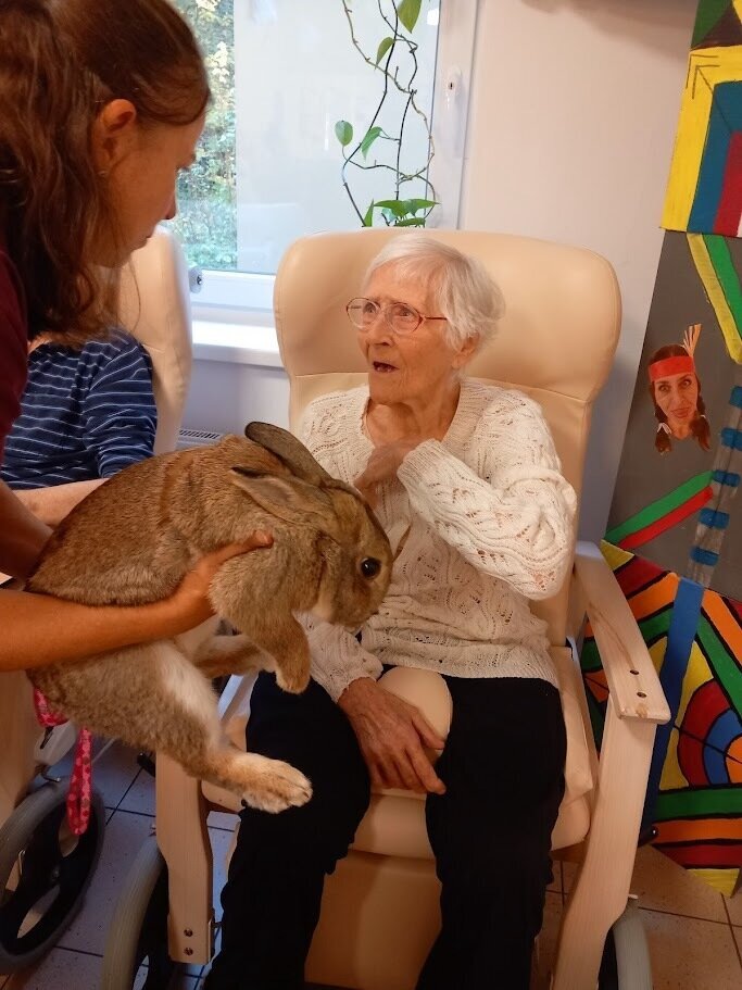 V Senevida ve Svobodě nad Úpou jsme zažili nádherné dopoledne díky paní Evě Beránkové, která nás navštívila s roztomilými králíčky.🐰🐇 Všichni jsme měli možnost se s nimi pomazlit a někteří z králíčků nám ukázali své skokanské umění. Nenašel se mezi námi nikdo, komu by ti králičí sportovci nevykouzlili úsměv na líci.😊Děkujeme, moc jsme si to užili!🥰💗