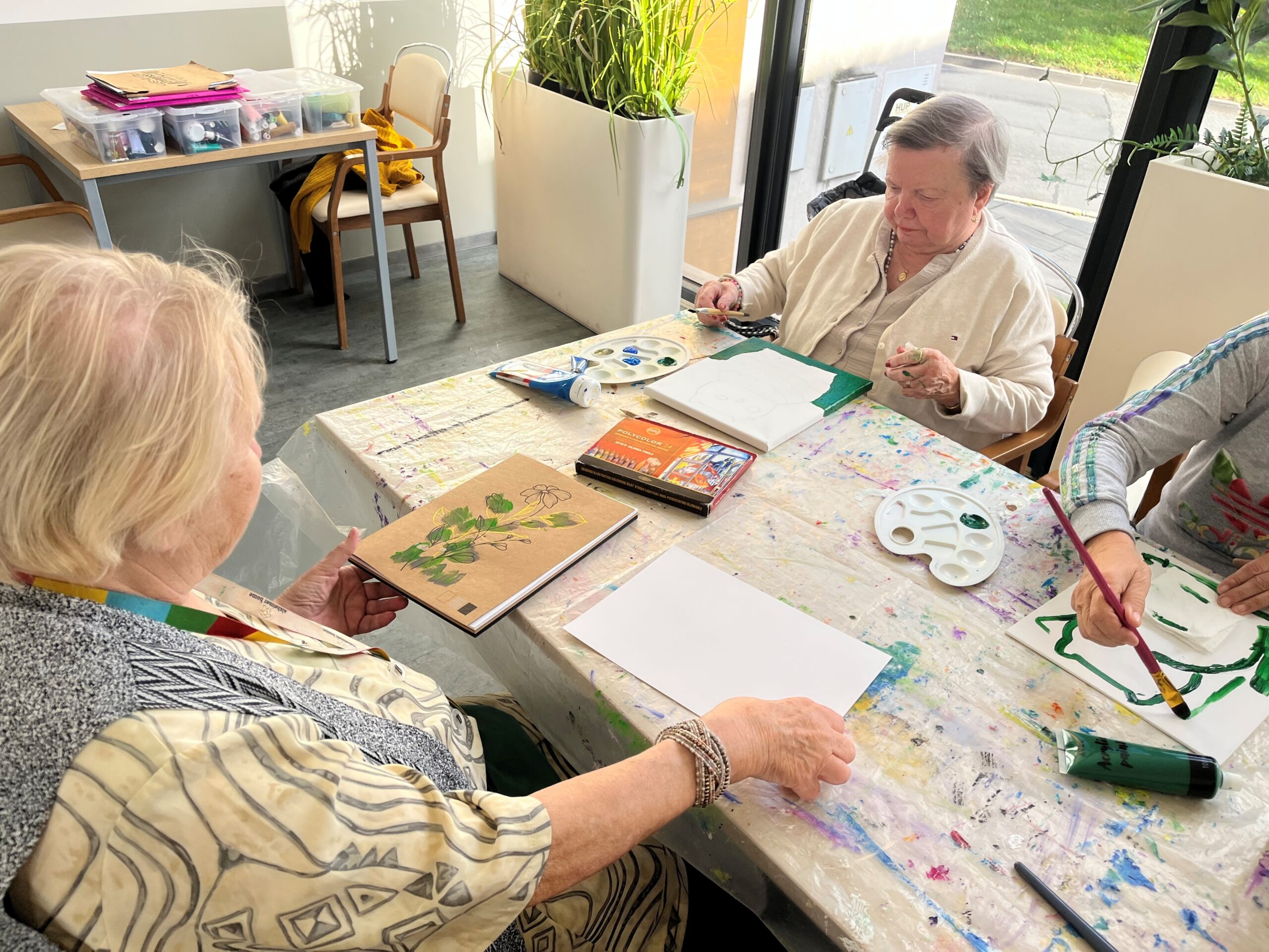 Dnešní dopoledne se neslo v duchu barev, kreativity a radosti. Naši klienti měli možnost malovat na plátno a vznikla tak nádherná díla plná fantazie, osobitosti a pozitivní energie. Tvoření nabízí nejen příjemné vyžití, ale také prostor k uvolnění a možnost vyjádřit své pocity beze slov. Děkujeme všem, kteří se do malování zapojili. Vaše obrazy nám rozzářily den a přinesly inspiraci i úsměv.