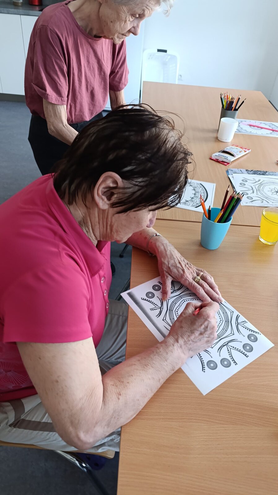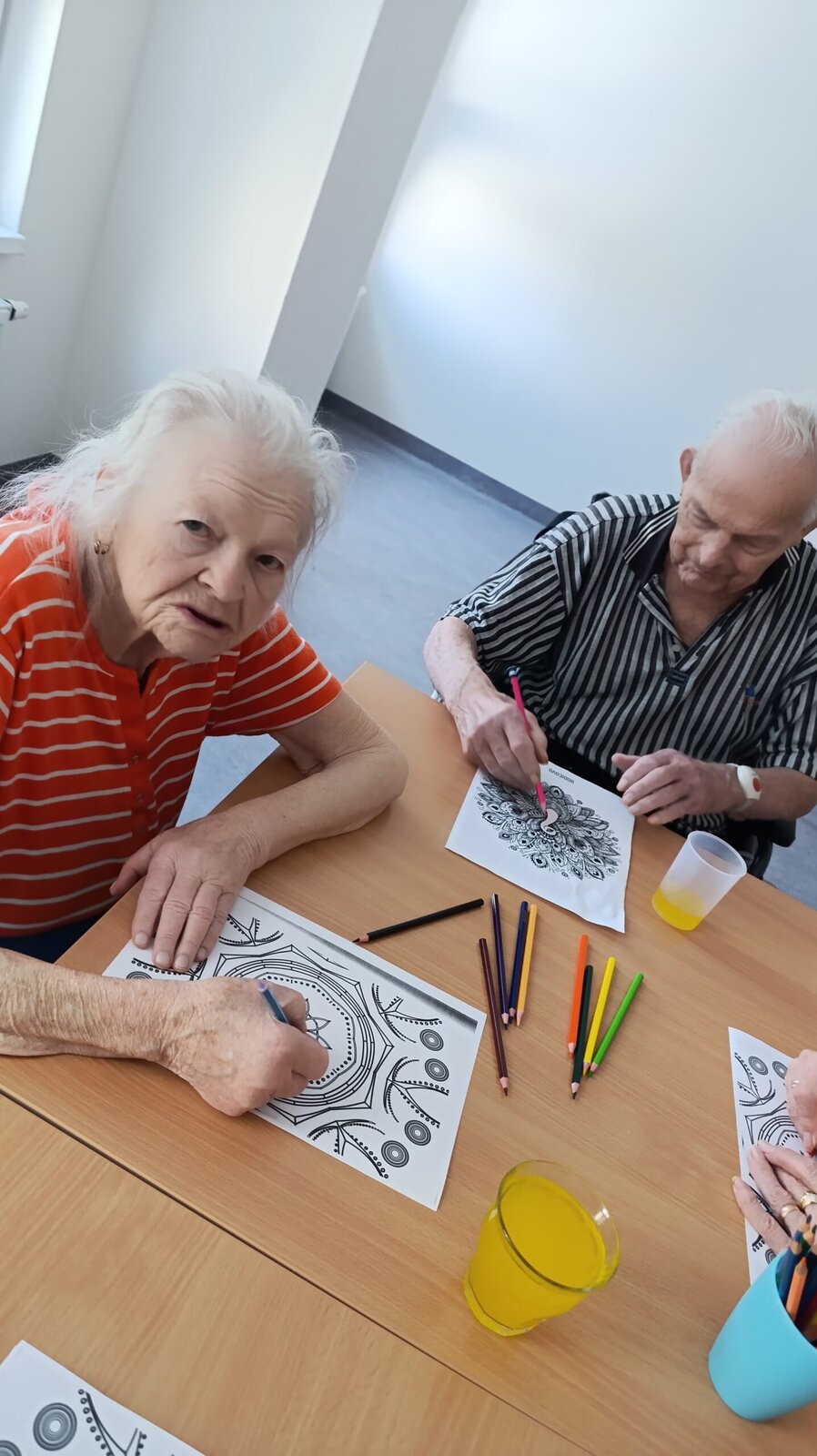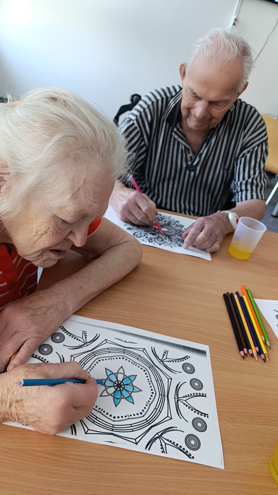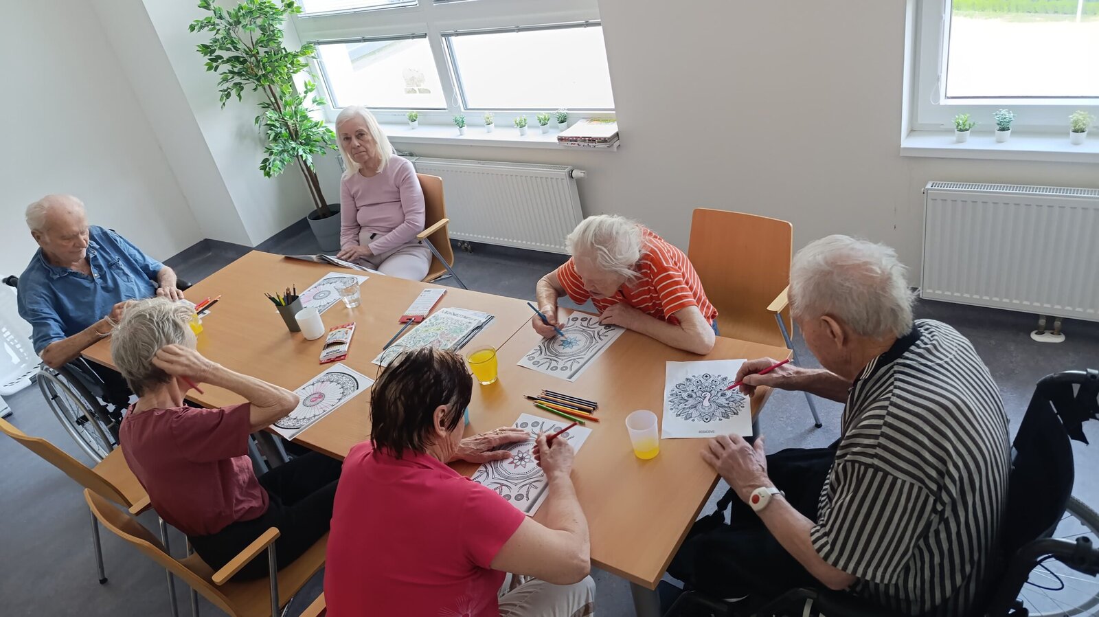 Dnes měli klienti v Senevida Nepomuk na výběr z několika kreativních aktivit! 🎨 Vybírali si mezi malováním detailních mandal, které podporuje soustředění a relaxaci, nebo výrobou krásných papírových věnců s květinami, což procvičuje jemnou motoriku a fantazii. Je skvělé vidět, s jakou chutí se pouštějí do tvoření a jak jim práce přináší radost! 🌸