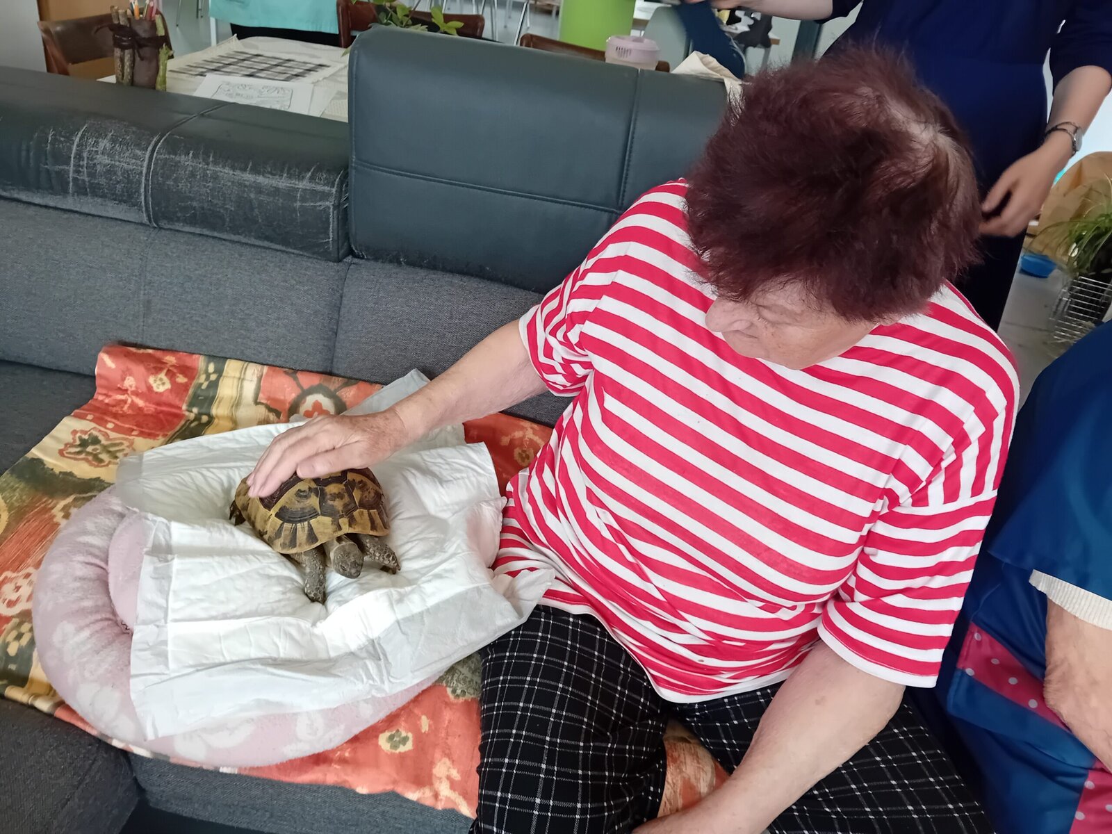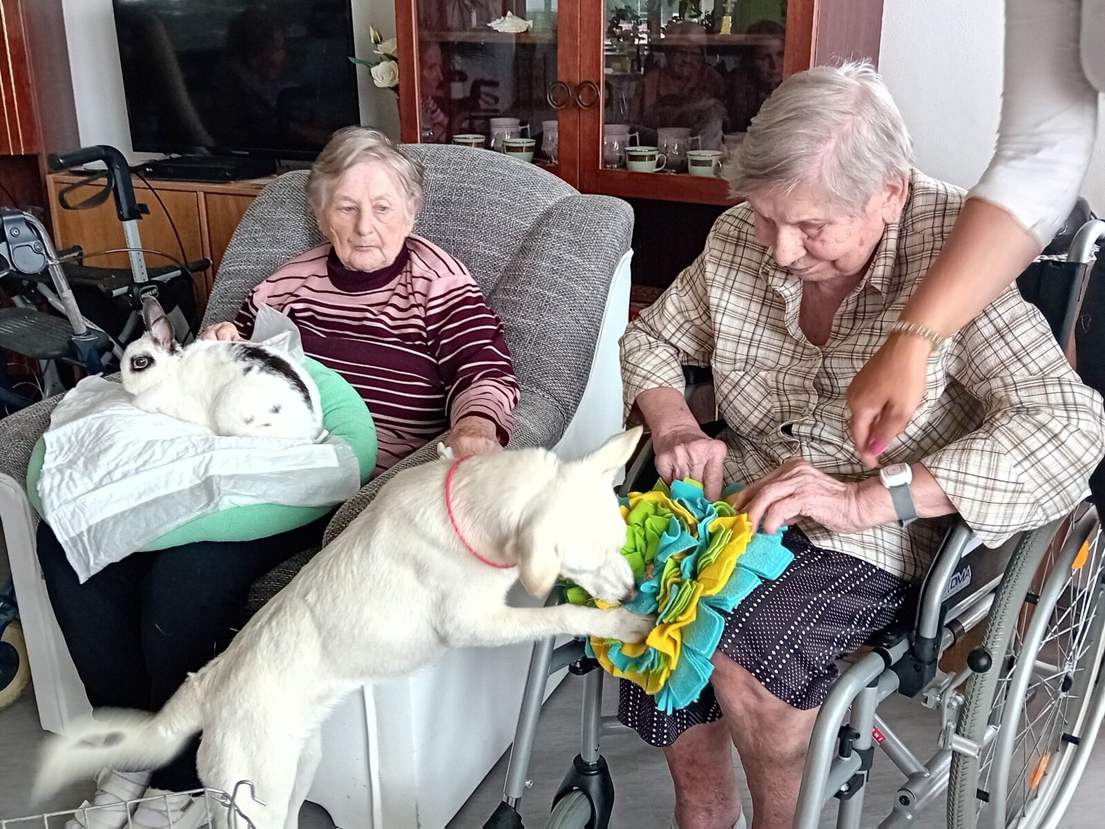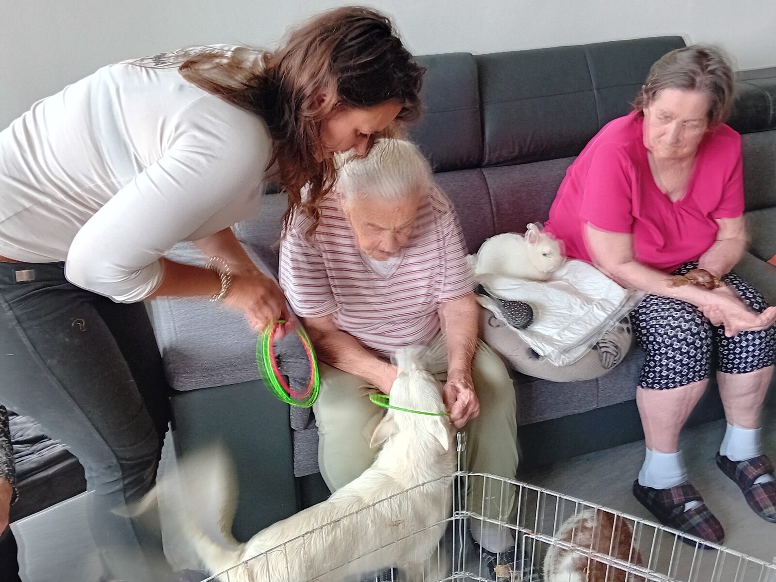 "Kuniterapie (tzv. chlupatý lékař s ušima) neboli králičí terapie, není ještě tak známá, ale má dobré výsledky. Terapeutický králík musí být klidný a dobře socializovaný, když s ním lidé manipulují a mazlí se." Do Senevida Slavkov u Brna zavítali však nejen králíci z Emil pomáhá, ale přivítali jsme zde i fenku Dášu, želvy a také šneky-oblovky.
