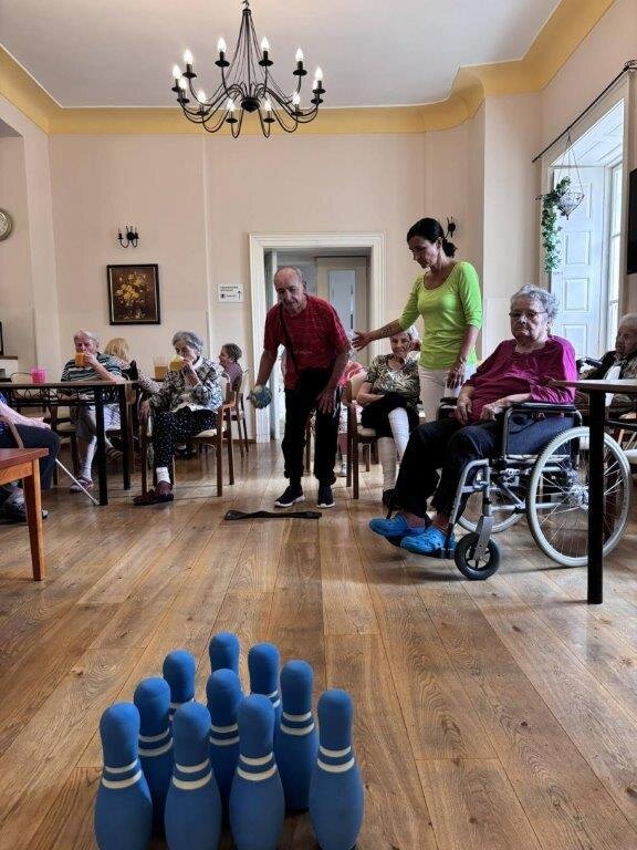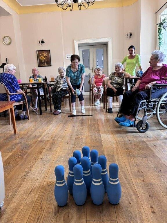 Kuželkové turnaje jsou u nás ve Filipově velmi oblíbenou aktivitou. I tentokrát se klientům mimořádně dařilo a zdravá soutěživost udělala své. Každý se předháněl, kolik shodí kuželek a nad nevydařeným hodem svého soupeře se všichni pousmáli. Pomyslné tři stupínky vítězů jsme tradičně odměnili diplomem. Bylo to velmi veselé a zábavné dopoledne, které si brzy zopakujeme. 😊