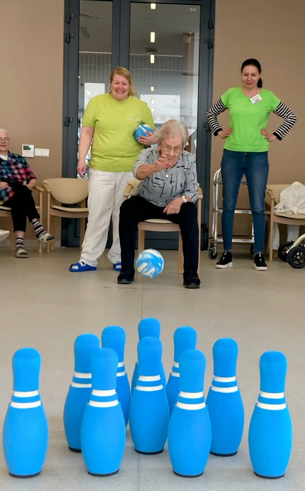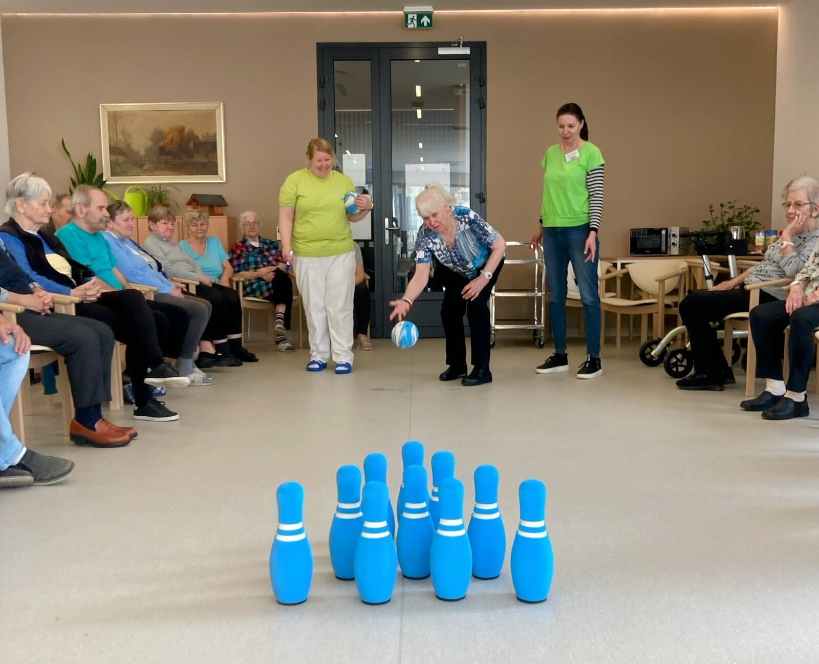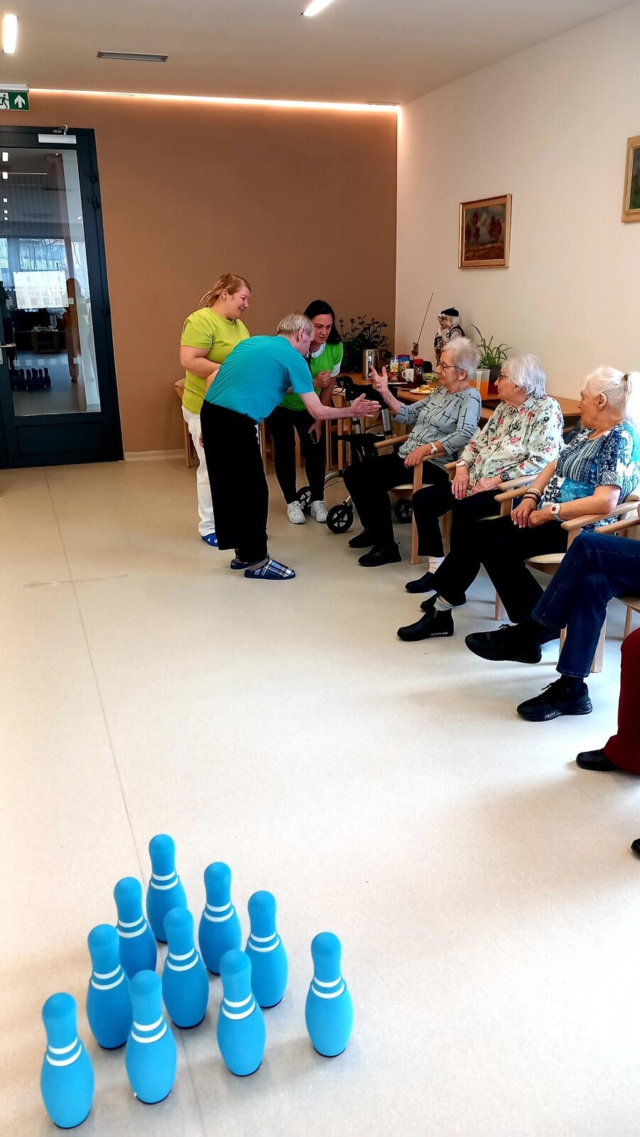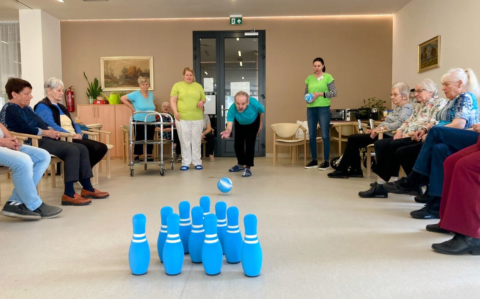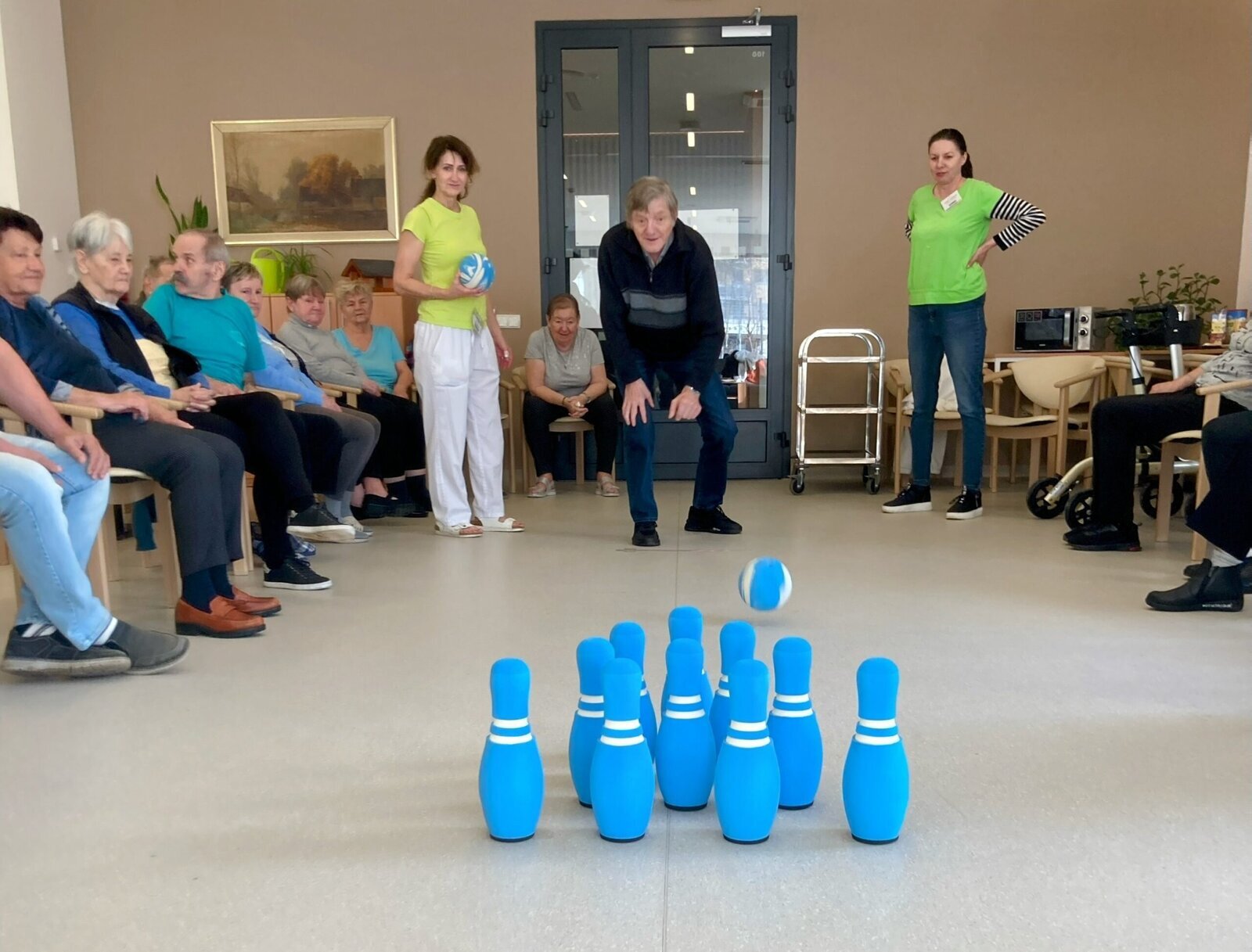 Turnaj se všem velice líbil. Už se těšíme na další odvetu tentokrát u nás v Senevida Lázně Bohdaneč. A jelikož Aktivizační pracovnice mají smysl pro humor, tak na závěr si také zahrály, což se klientům velice líbilo. 🎳☕👍🙂🤩