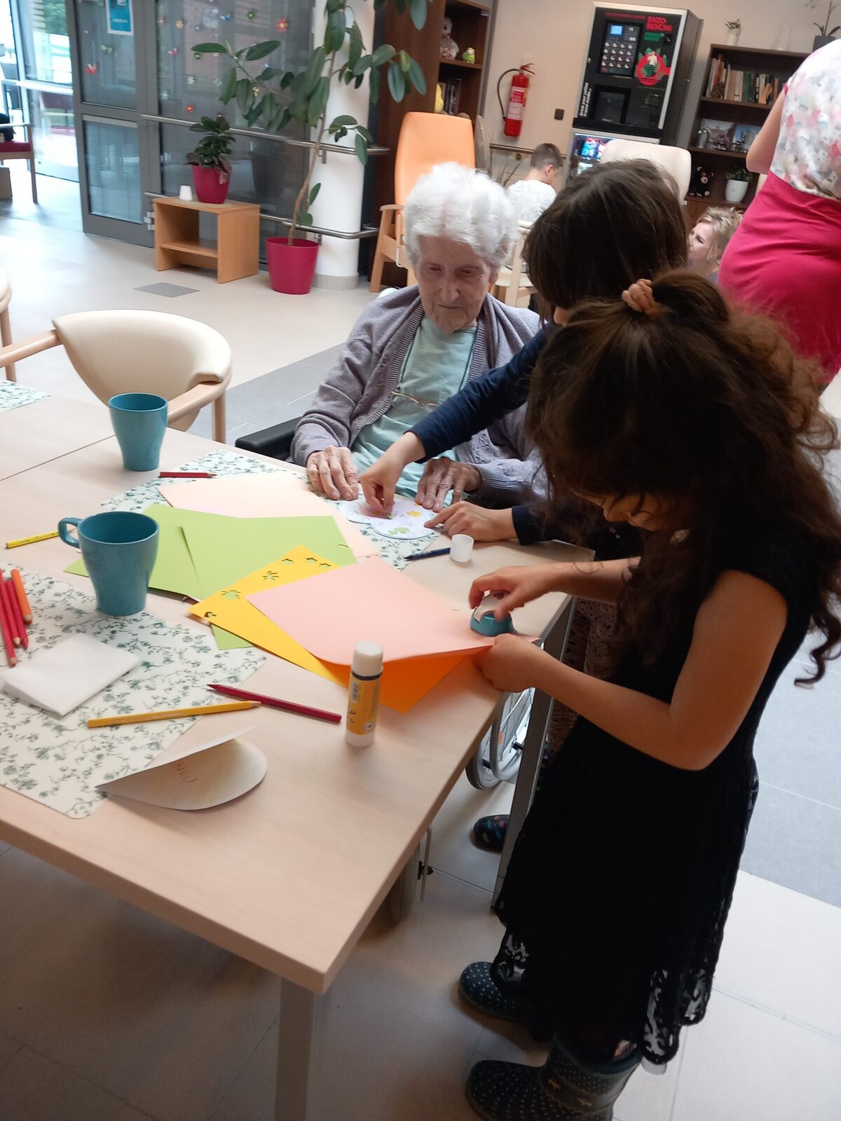 v Senevida Libeň proběhlo mezigenerační setkání, které klientům udělalo radost. Navštívily nás děti z mateřské školky a společně s klienty si vyrobily srdíčka 💙, která věnovaly klientům jako dárečky. Na závěr zarecitovaly a zazpívaly.