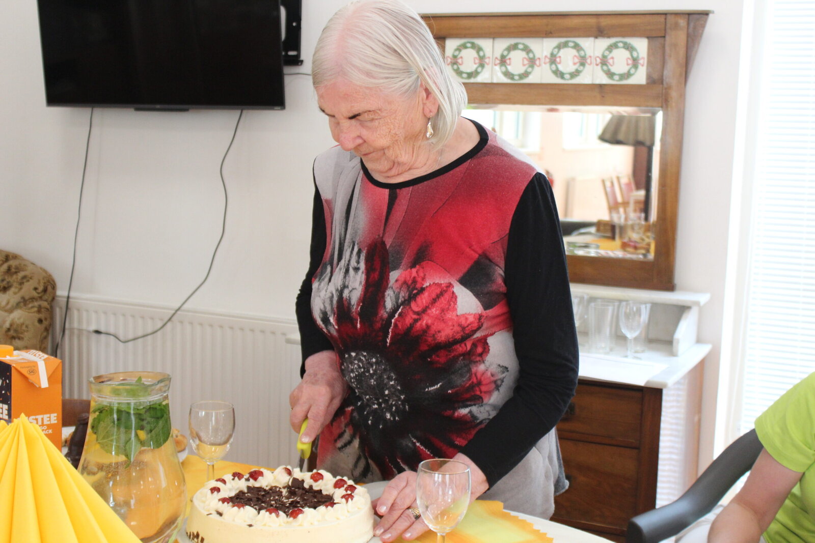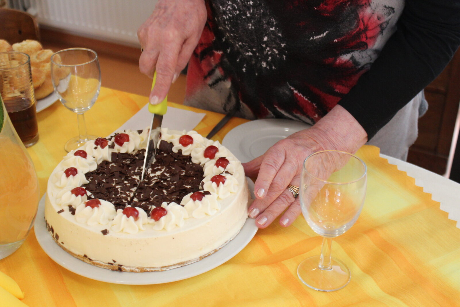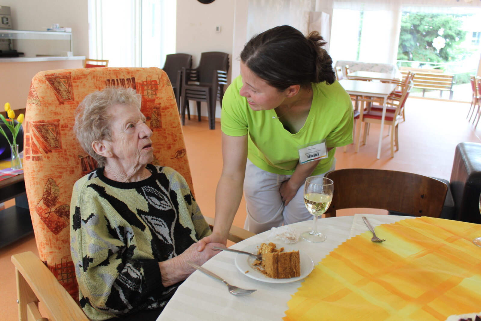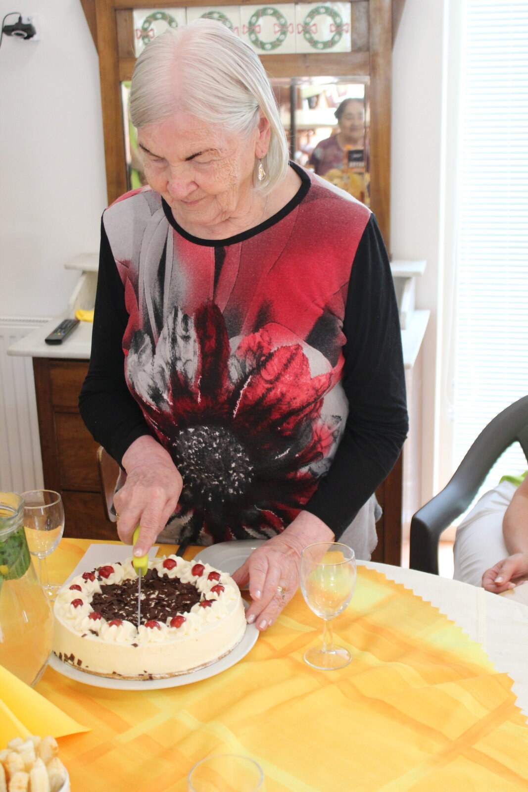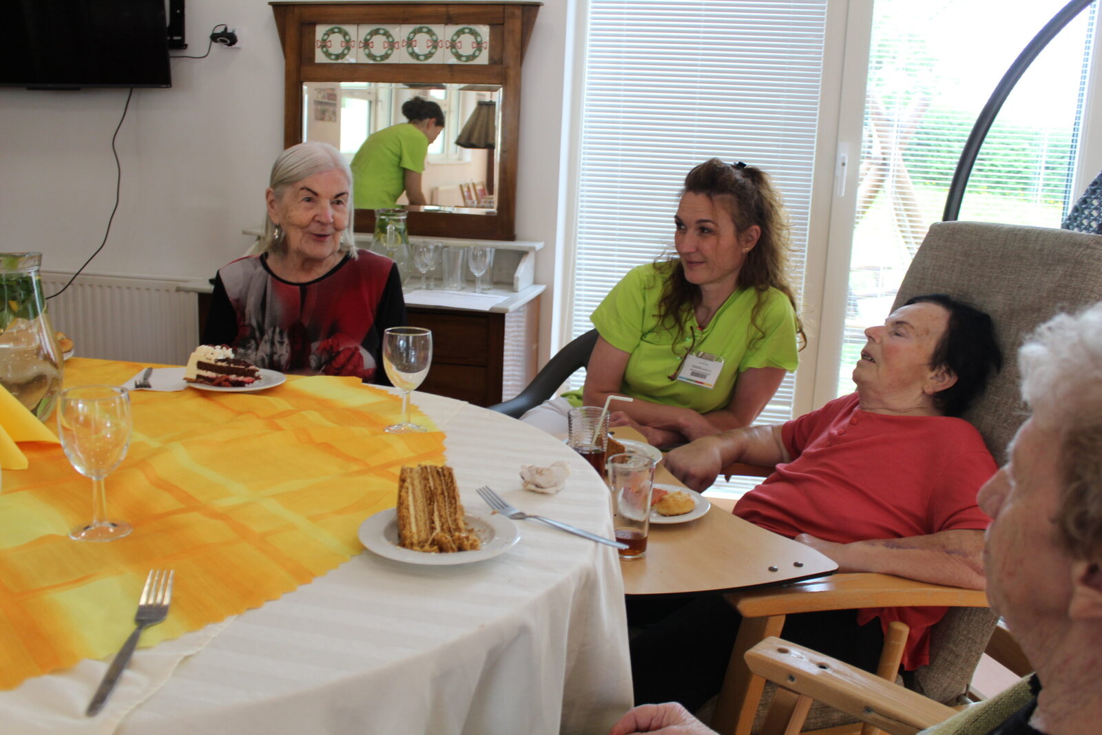 Květnové oslavenkyně se usadily ke společnému stolu a za doprovodu příjemné hudby společně oslavily své narozeniny. Tento měsíc jsme měli dokonce i jedny kulatiny. Po přípitku a krátkém proslovu jedné z klientek, se pustily do krájení dortů a hodování. V průběhu si klientky povídaly a zavzpomínaly na různá období jejich života, vzájemně se doplňovaly a sdělovaly zážitky.