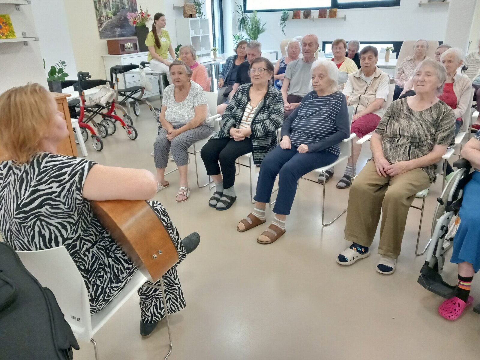 V Senevida Zátiší se uskutečnil kytarový koncert v podání Terezie Vítek. Klienti si akci velmi užili – s chutí se zapojili do zpěvu známých lidových písní, které jim připomněly příjemné vzpomínky. Atmosféra byla radostná a uvolněná. Nechyběl ani hudební kvíz, který podnítil zábavnou soutěživost a rozproudil příjemnou diskusi. Hudba přinesla radost, pohodu a společné zážitky všem zúčastněným.