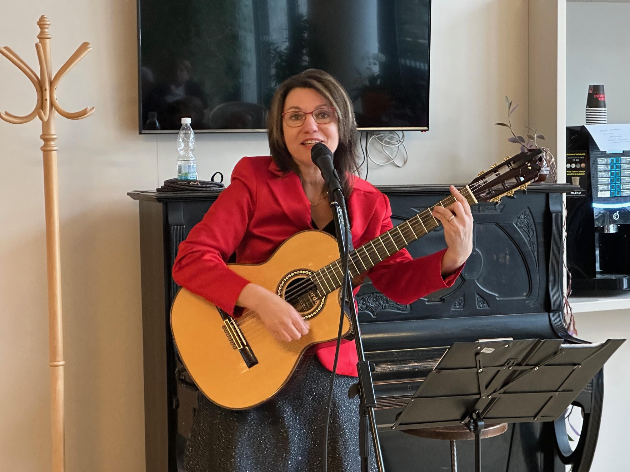 Před obecenstvem z řad klientů vystoupil jako první kytarista Miroslav Čermák. Jeho bravurní hra okouzlila všechny přítomné. Mladý a nadaný Miroslav Čermák byl představen jako ten, kdo hraje stylem, jež se nazývá fingerpicking!