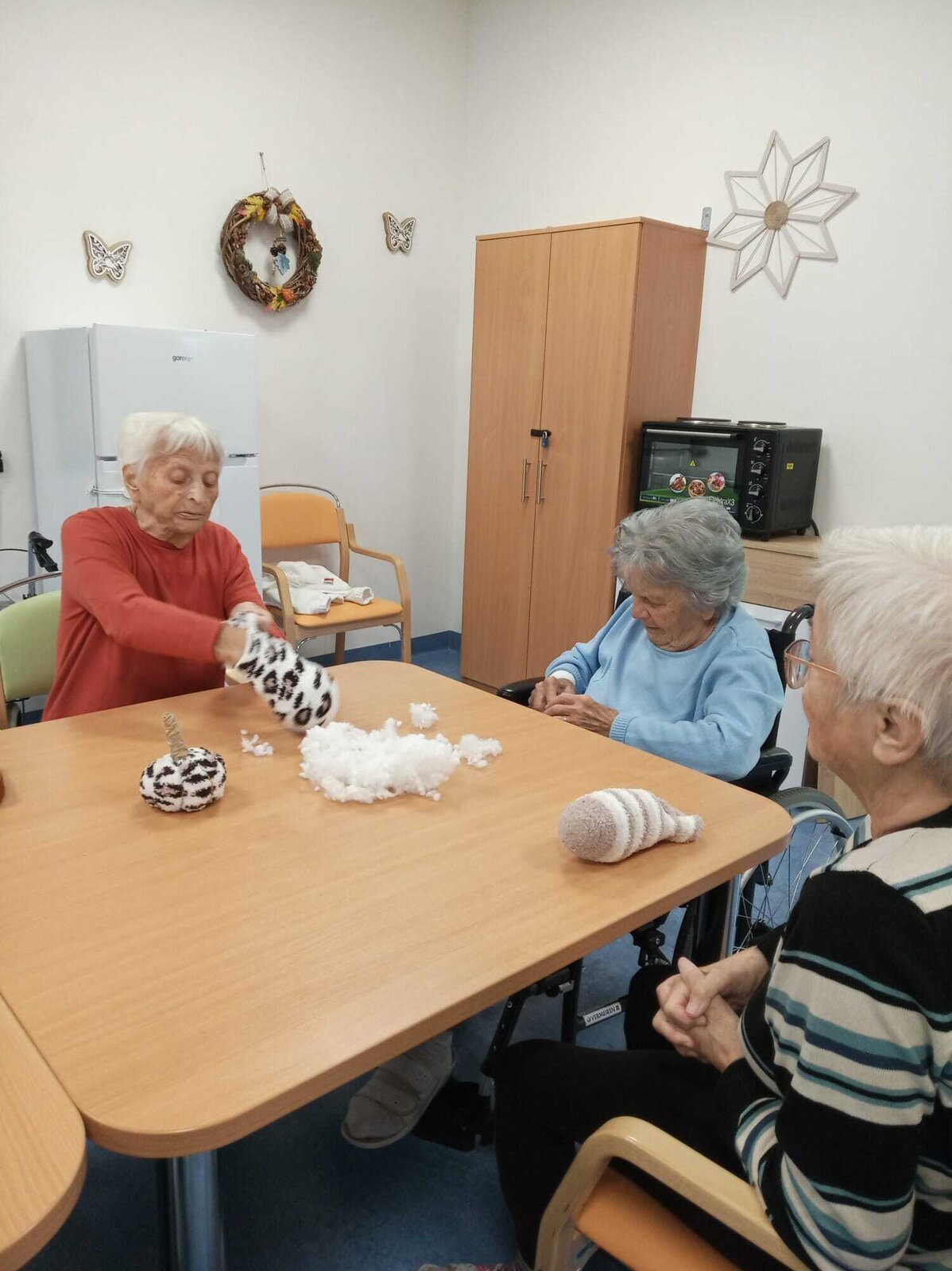 Jistě znáte situaci, kdy máte jenom jednu ponožku a tu druhou ne a ne najít. No a tak naše aktivizační pracovnice z Senevida Kamenice nad Lipou napadlo, že v duchu podzimu by jsme si mohli vyrobit malé dýně, právě z oněch ponožek.