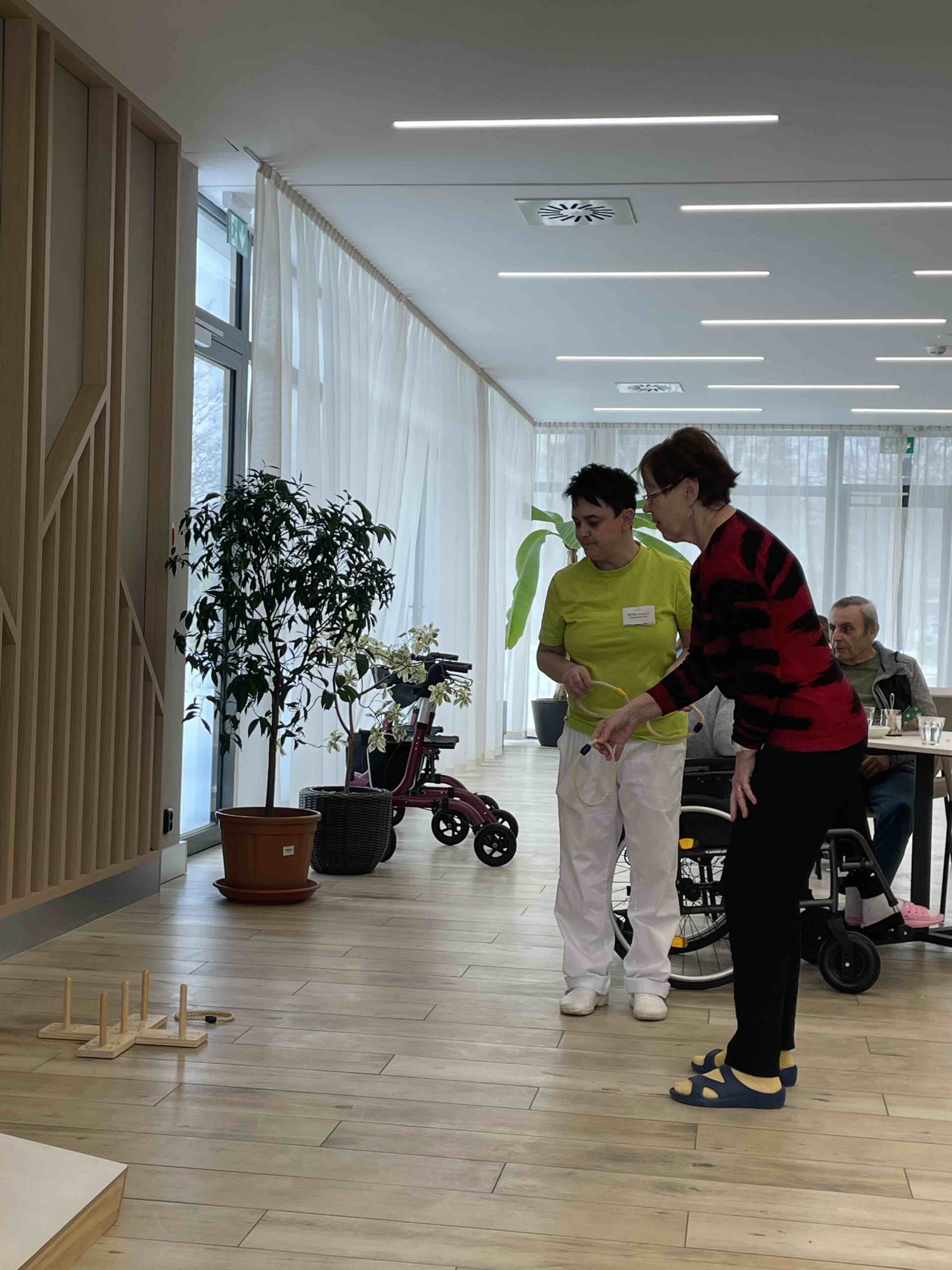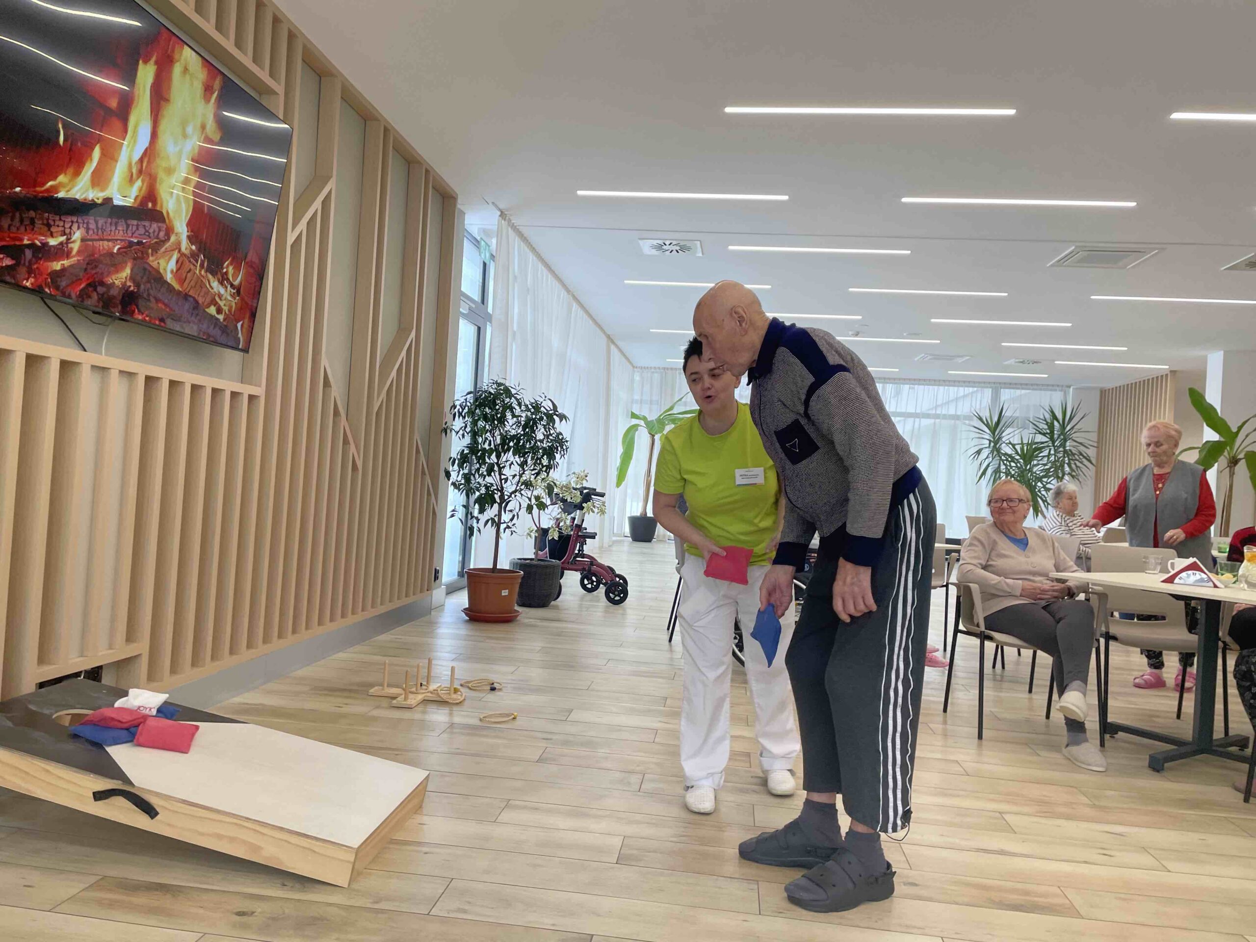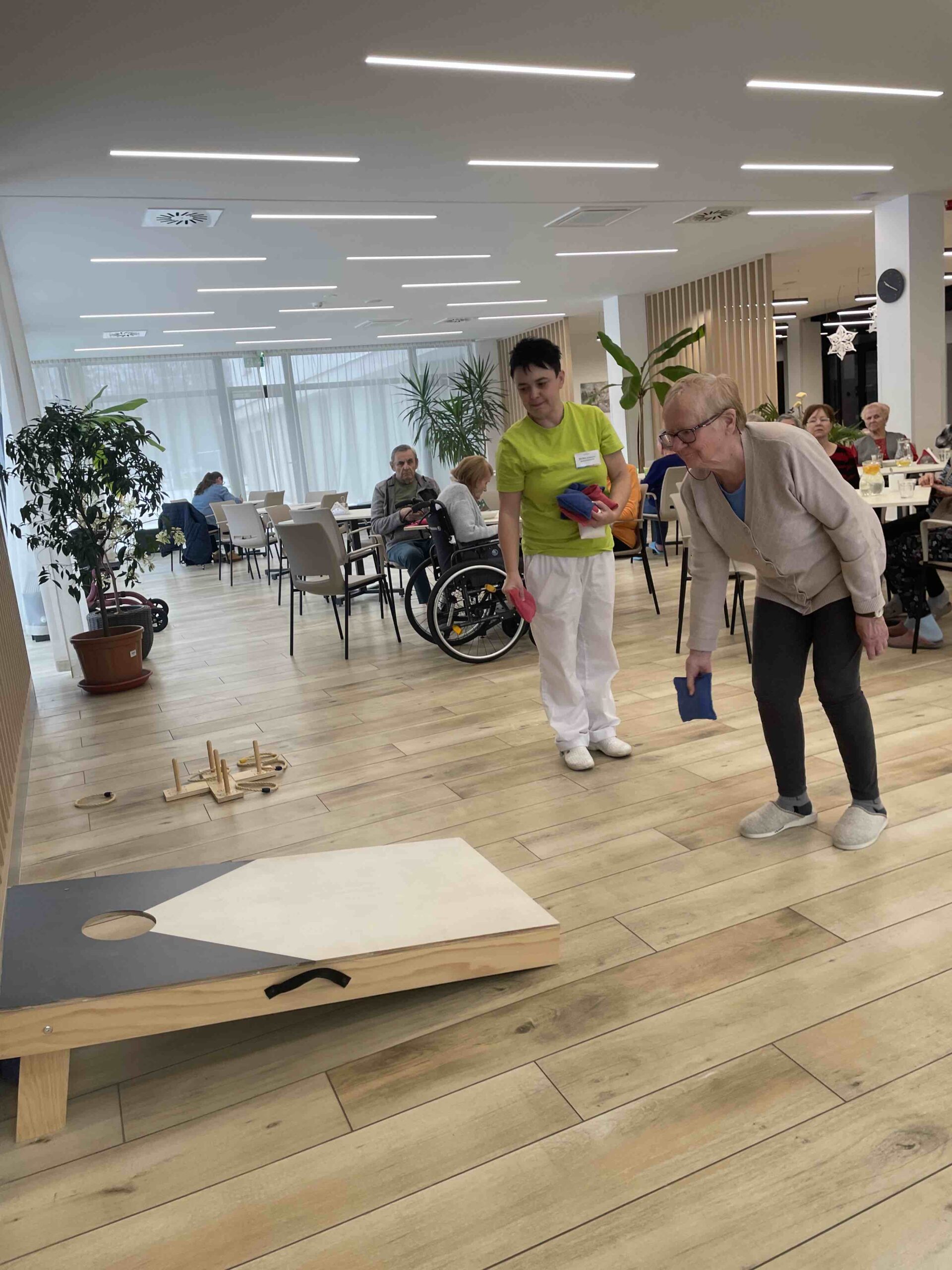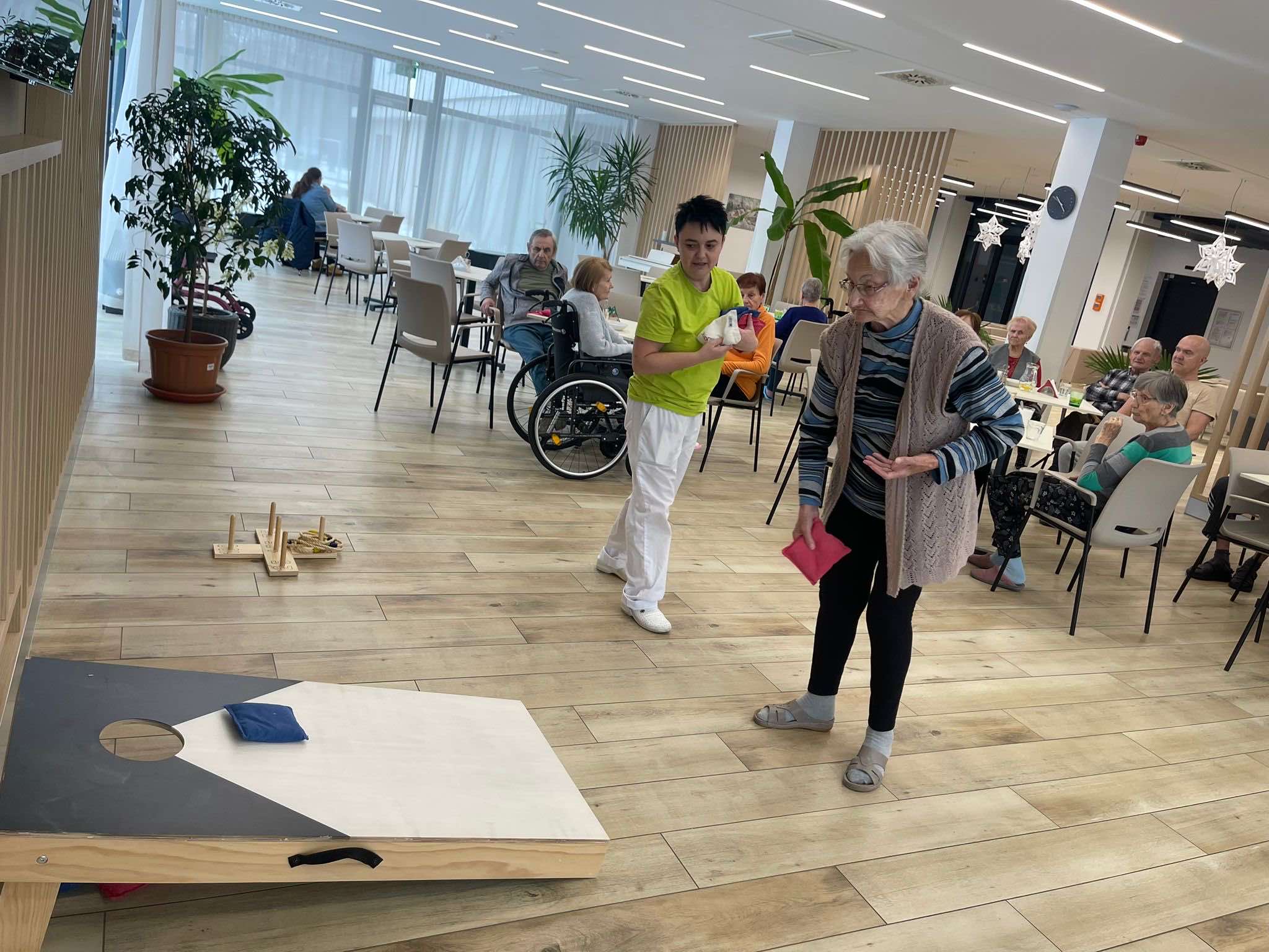 V Senevida Ostrava - Poruba jsme si užili parádní sportovní dopoledne, které bylo plné pohybu, zábavy a dobré nálady. Pro klienty bylo připraveno hned několik stanovišť - slalom, cornhole, házení kroužků, lovení míčků z vody a pexeso na procvičení paměti.