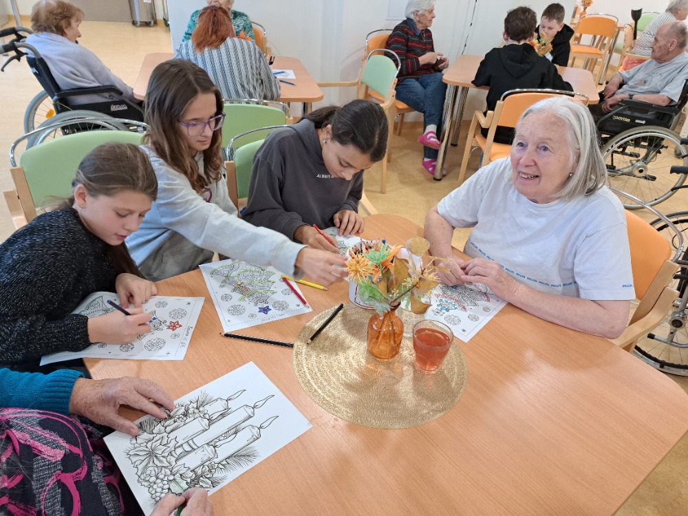 Klienty v Senevida Boskovice navštívily děti ze Základní školy Boskovice, aby společně s našimi klienty strávily příjemný a tvořivý čas. Děti i klienti se společně zapojili do různých aktivit, tvořili a malovali nejrůznější obrázky s vánoční tématikou, nechyběly ani zábavné slovní rébusy, které potrénovaly paměť dětem i klientům. Dívky si pro klienty připravily krátké taneční vystoupení, které se setkalo s velkým ohlasem. 😊