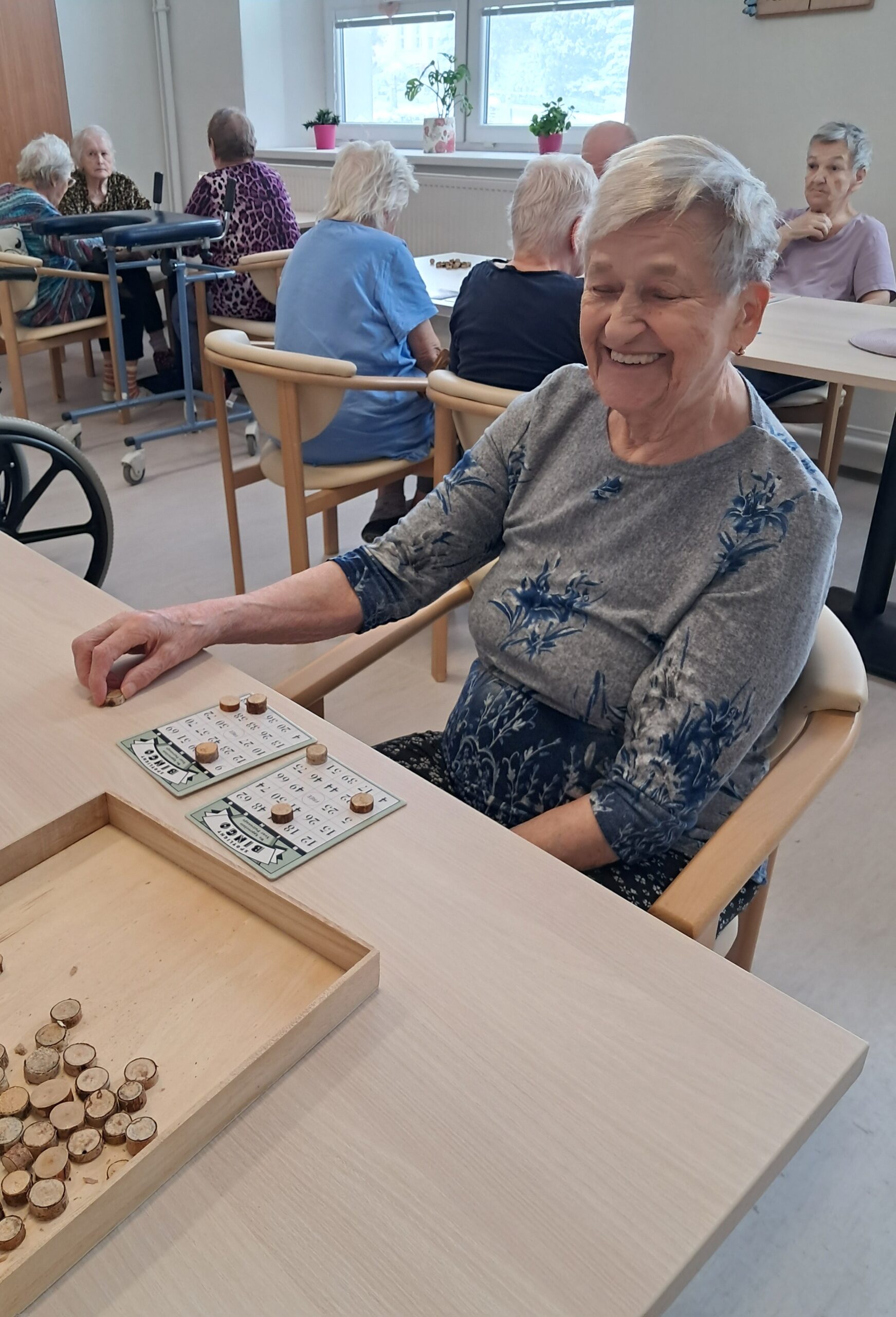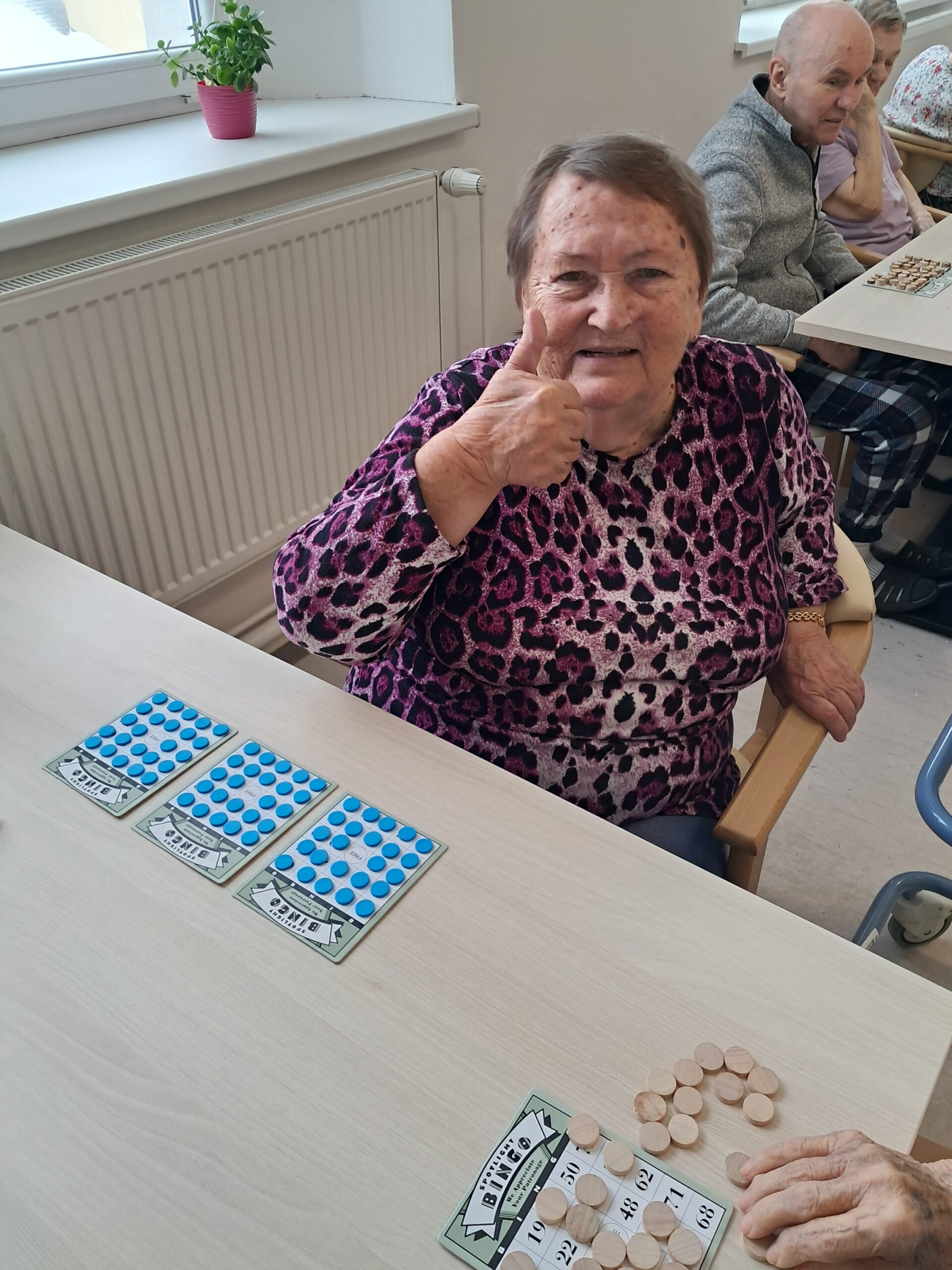 V Senevida Jablunkov bylo nedělní dopoledne s našimi klienty opravdu radostné. Opět jsme si zahráli jejich nejoblíbenější společenskou hru BINGO a místností se nesl smích, milé povzbuzení i nadšení z výher. Každý napjatě sledoval svá políčka a těšil se na další tažené číslo. Celé setkání podpořilo vzájemnou komunikaci i dobrou náladu.