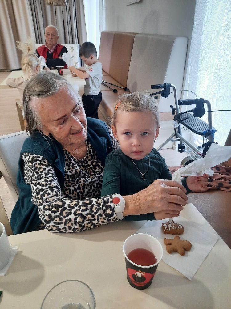 Děti si přinesly vlastní perníčky a společně s klienty je zdobily polevou a sladkými vločkami, kuličkami a barevným pískem.