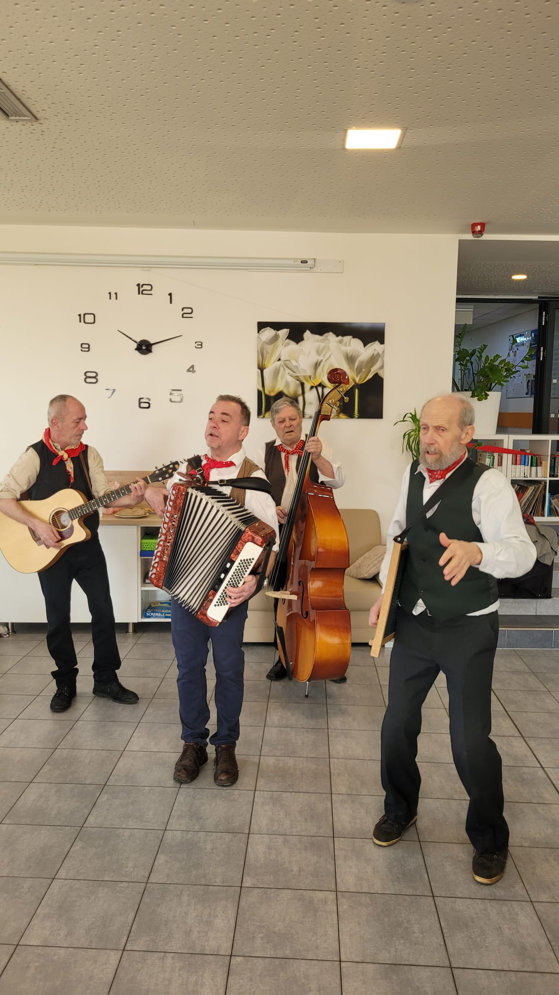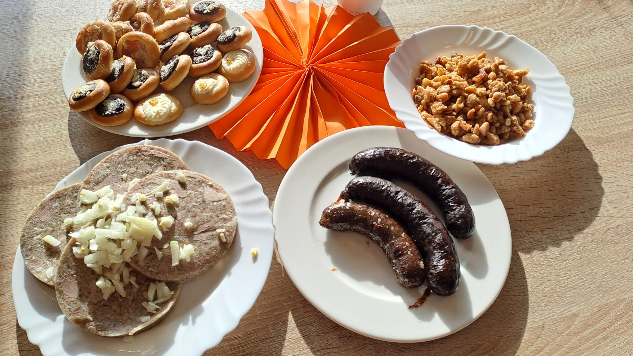 Celé dopoledne se chodbami rozléhala hudba, smích a skvělá nálada. Hudba lákala na parket a pohoštění zase ke stolům. Vůně zabijačkových pochutin, koláčků a dalších dobrot pokoušela chuťové pohárky a ani pivečko nechybělo.