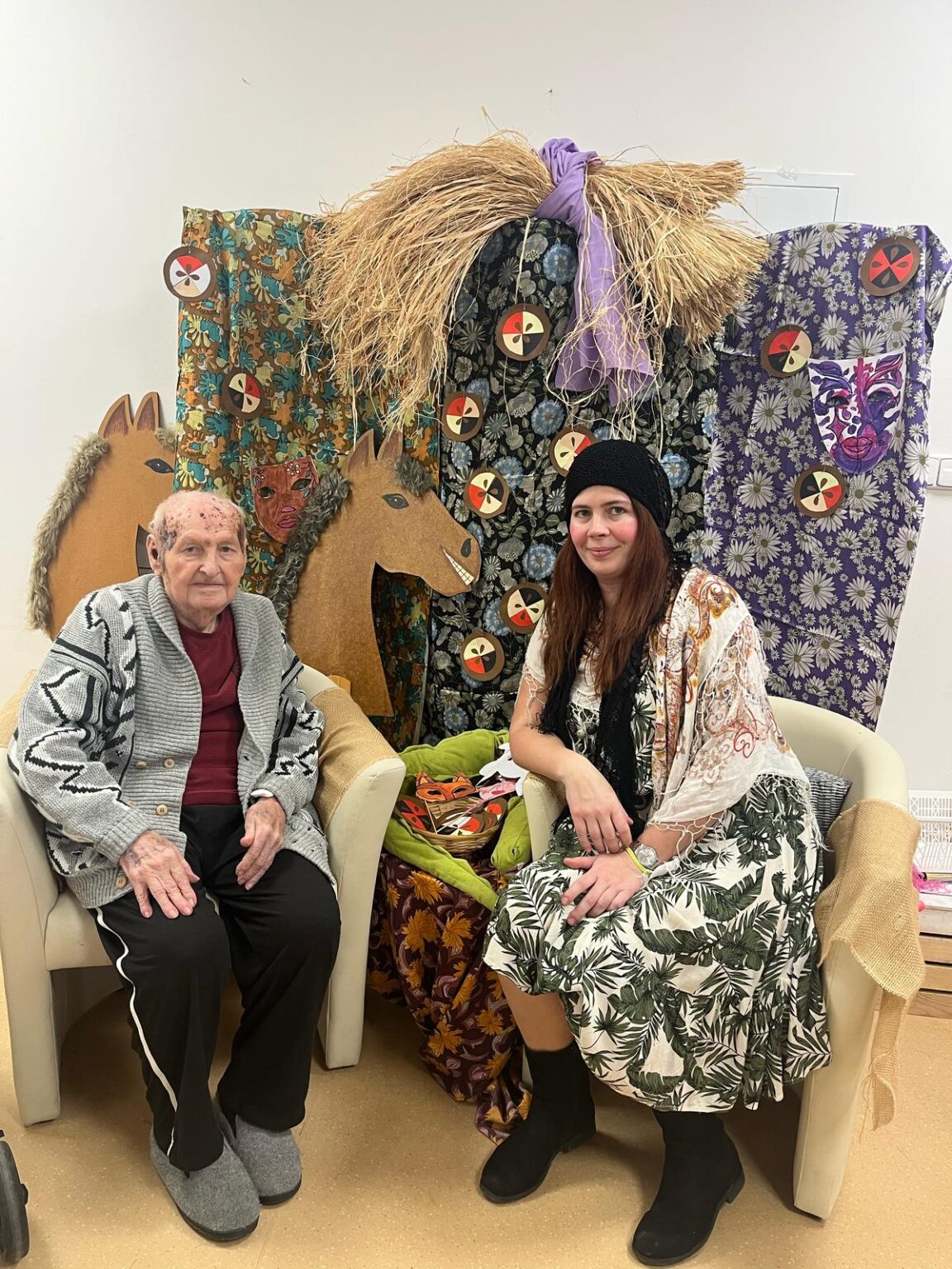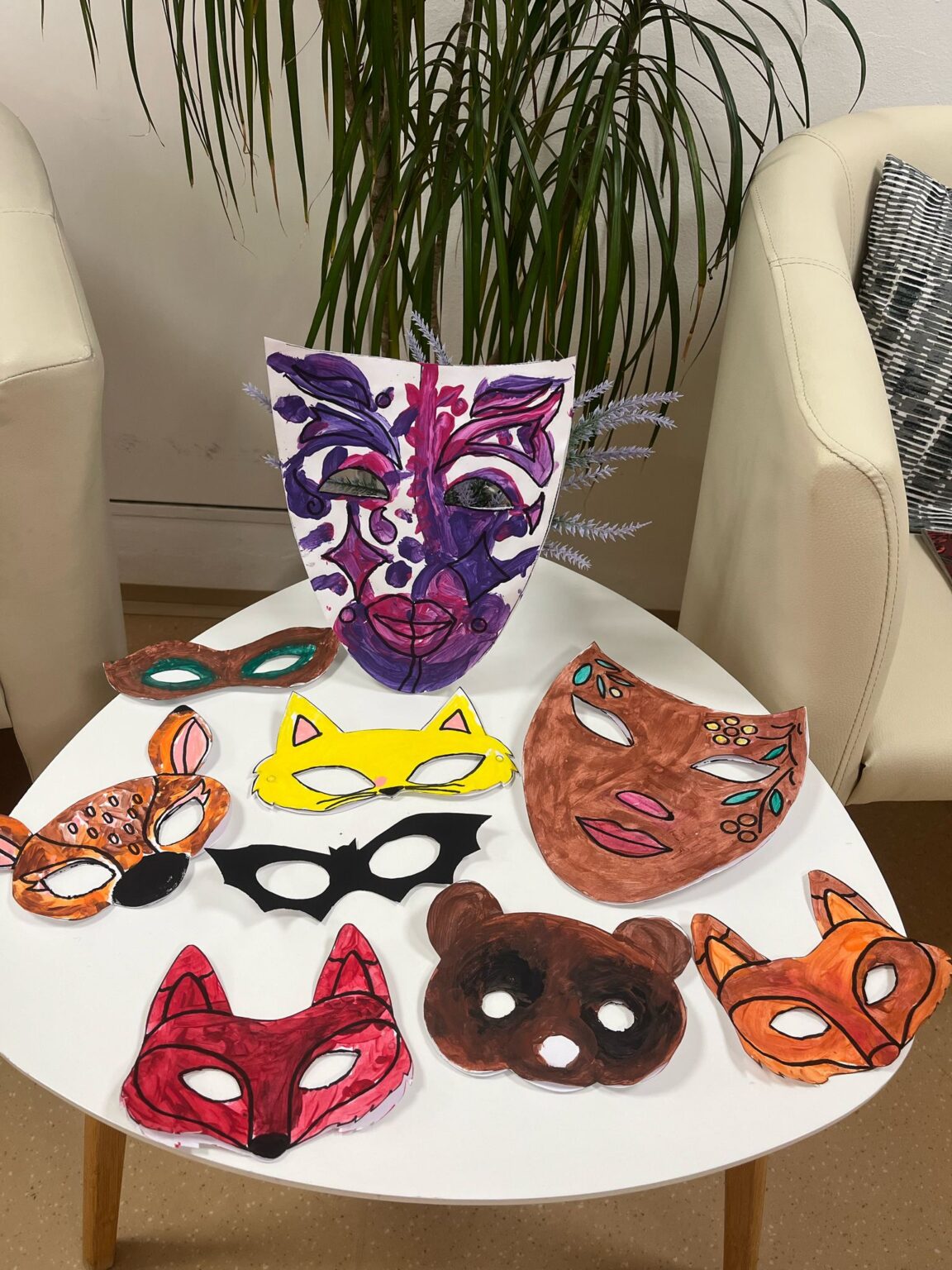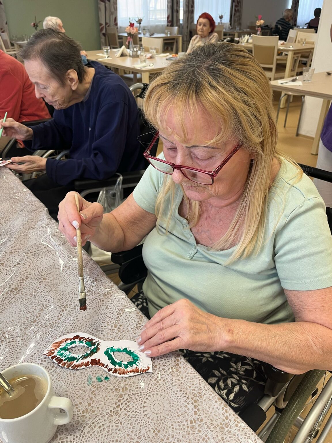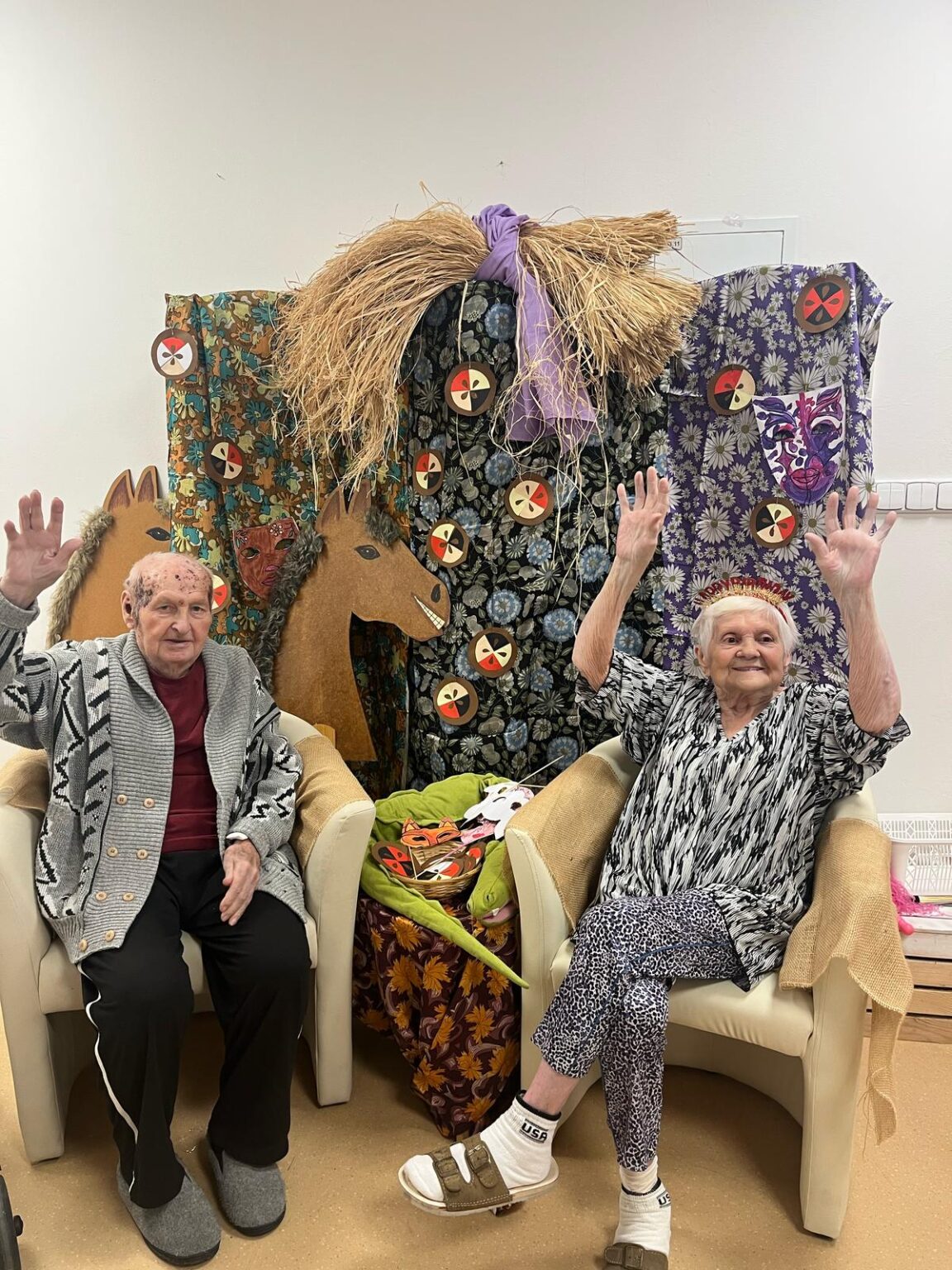 Ve tvořivých aktivitách jsme se pustili do výroby škrabošek a dekorací do fotokoutku, který jsme poté využili při vyvrcholení celého týdne – masopustní narozeninové oslavě. Ta byla opravdu velkolepá! Atmosféru nám zpříjemnil náš oblíbený pan harmonikář, jehož písně vždy rozveselí nejednoho z nás. Nechybělo ani překvapení v podobě masopustního průvodu zaměstnanců, kteří se proměnili v pestré masky a přinesli tak ještě více radosti.