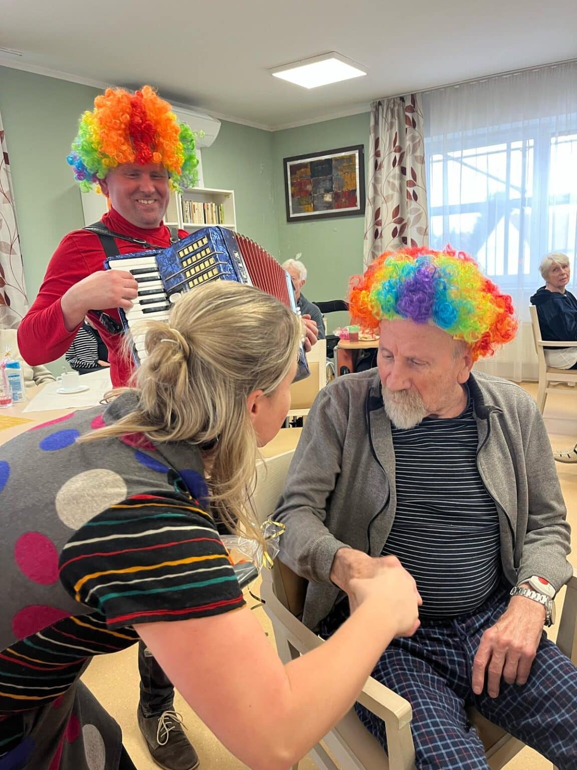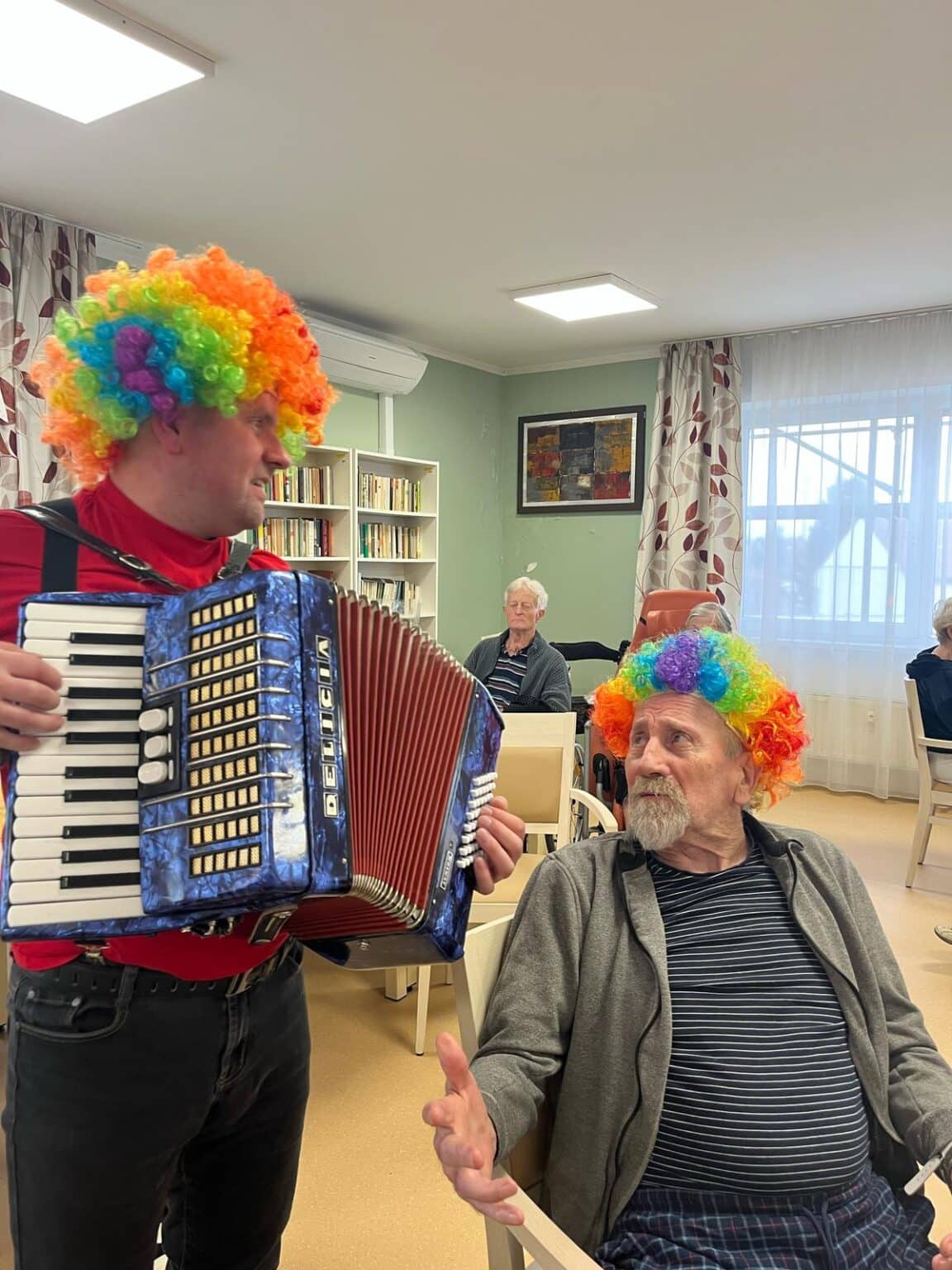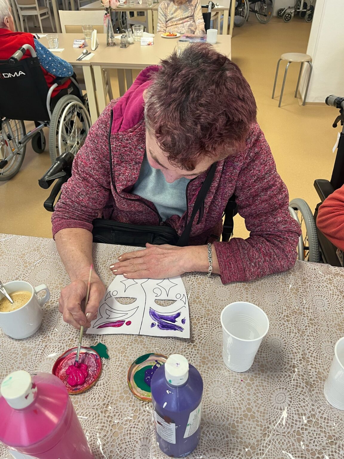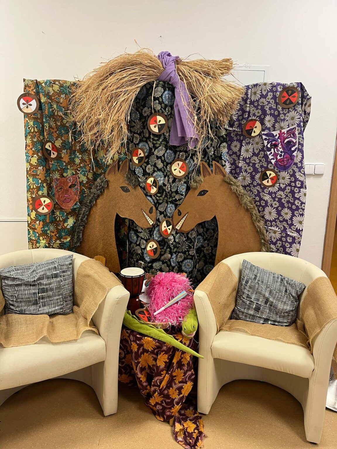 Ve tvořivých aktivitách jsme se pustili do výroby škrabošek a dekorací do fotokoutku, který jsme poté využili při vyvrcholení celého týdne – masopustní narozeninové oslavě. Ta byla opravdu velkolepá! Atmosféru nám zpříjemnil náš oblíbený pan harmonikář, jehož písně vždy rozveselí nejednoho z nás. Nechybělo ani překvapení v podobě masopustního průvodu zaměstnanců, kteří se proměnili v pestré masky a přinesli tak ještě více radosti.