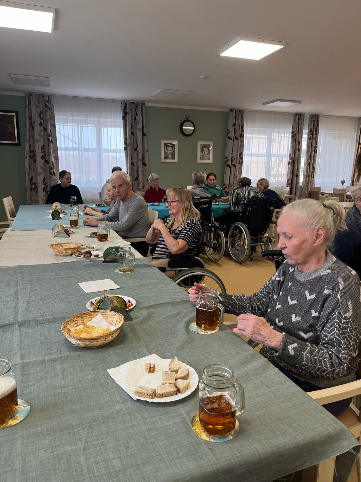 Klienti si mohli pořídit památeční fotografie ve fotokoutku. Narozeninovým oslavencům jsme, jak je u nás zvykem, sborově zazpívali „Živijó, živijó!“, a k tomu všemu samozřejmě patřilo i pohoštění – chlebíčky nebo také narozeninový dort.