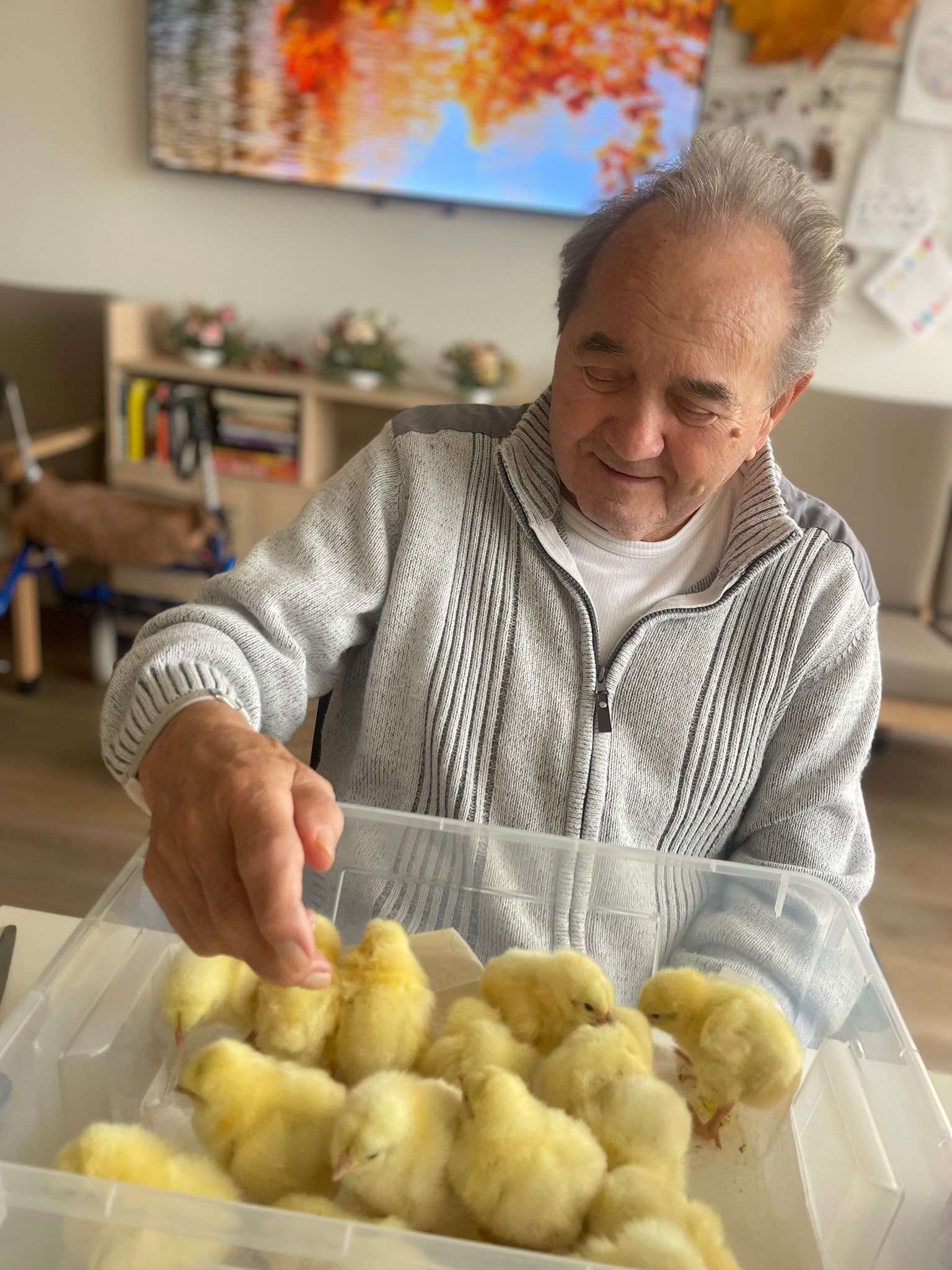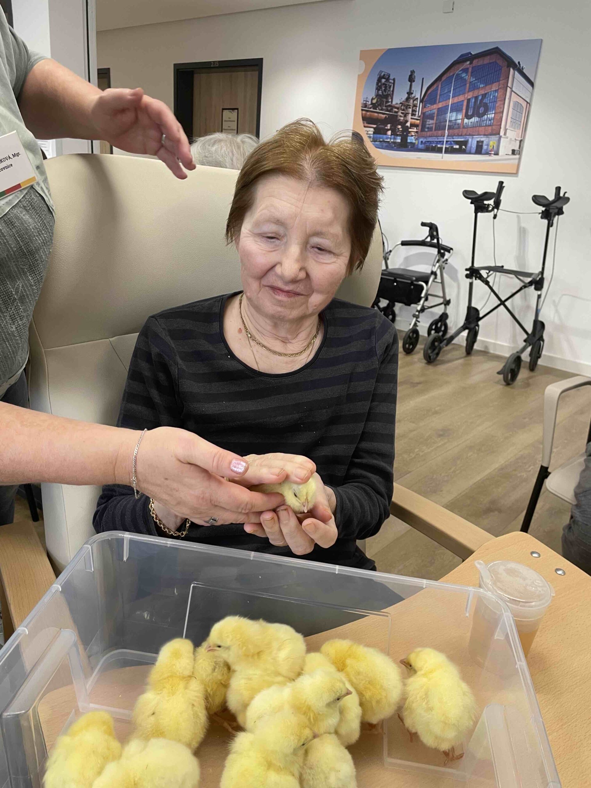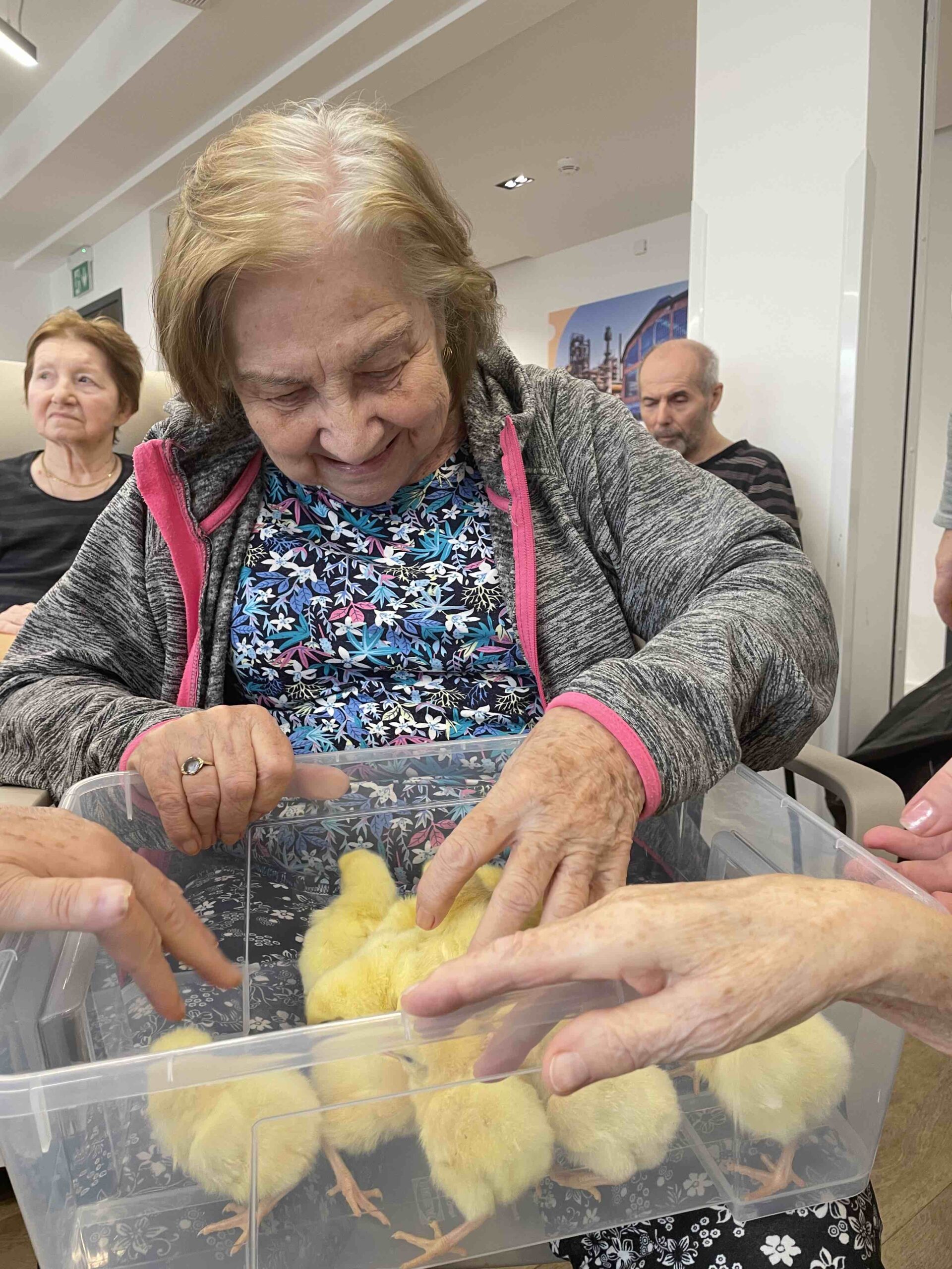 Do našeho domova v Senevida Ostrava - Poruba tentokrát zavítala roztomilá návštěva - malá kuřátka 🐣, která si okamžitě získala srdce všech klientů. Každý si je mohl pohladit, pochovat a užít si ten krásný, hřejivý okamžik. ☀️